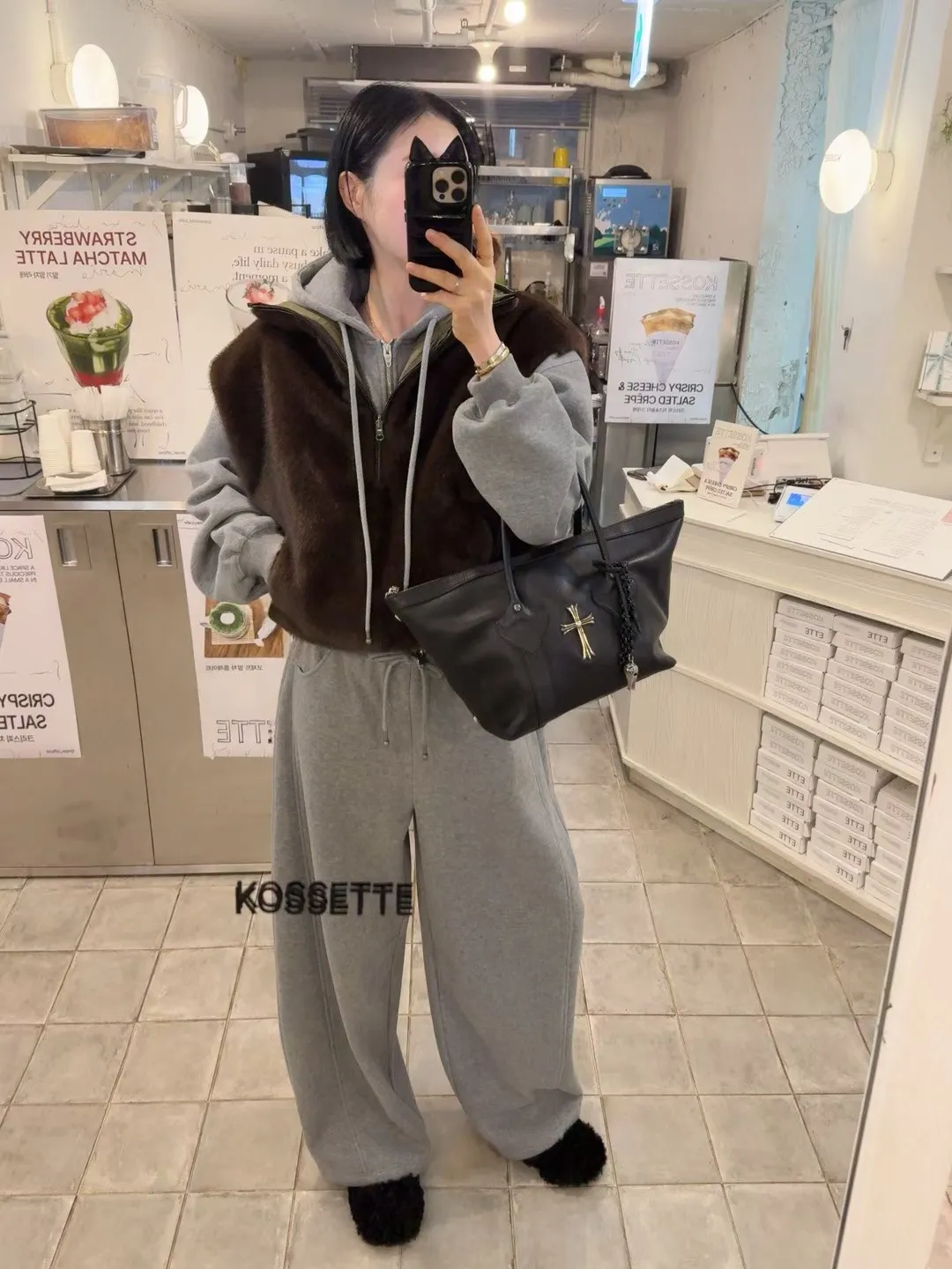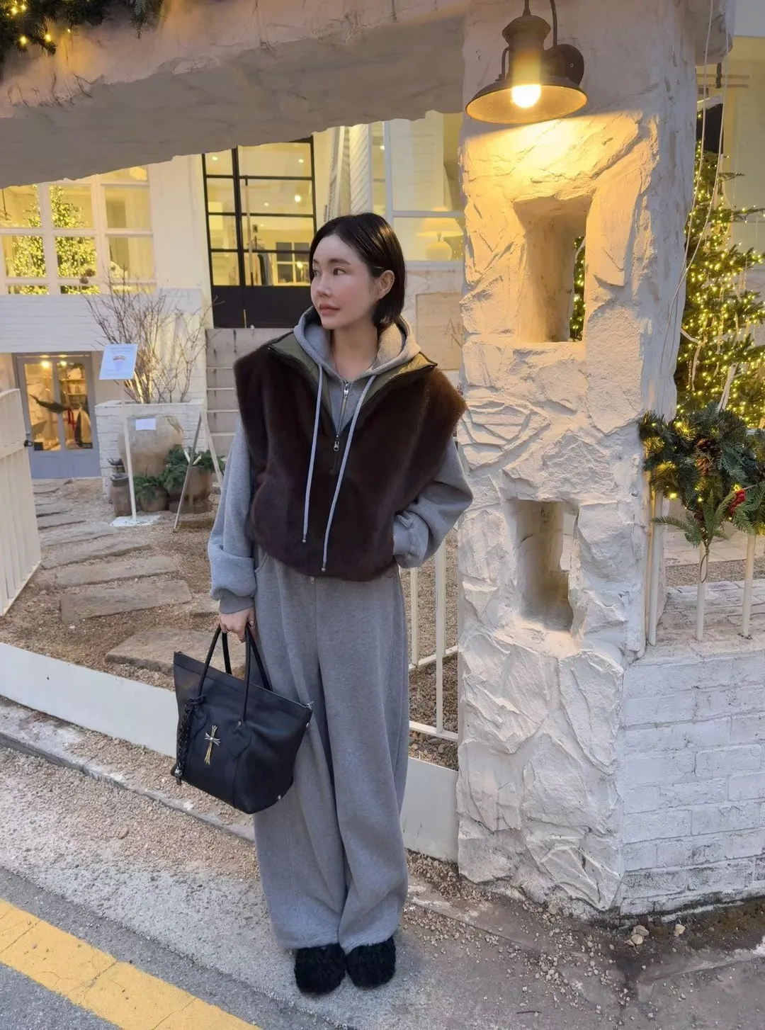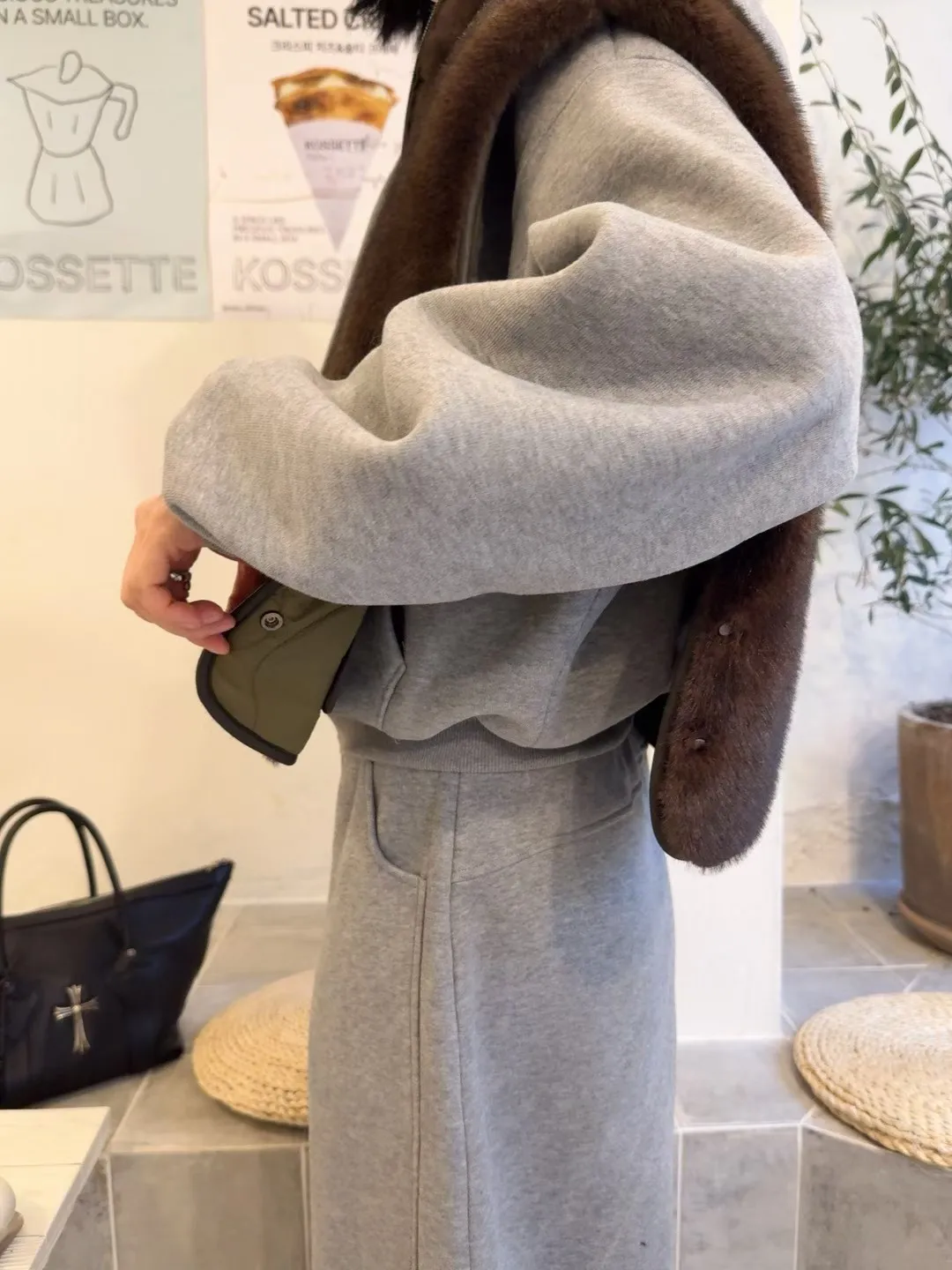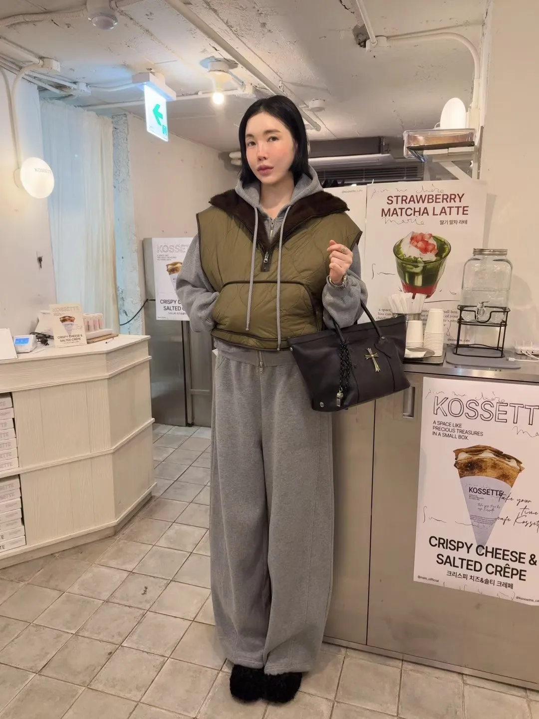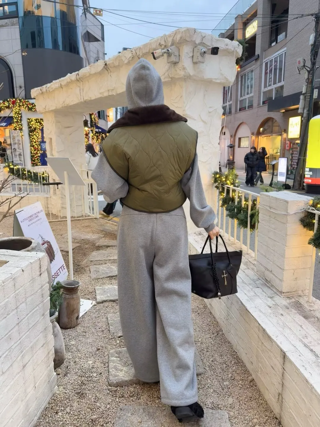 灰色套裝+這件直接變成「韓系慵懶高級感」,