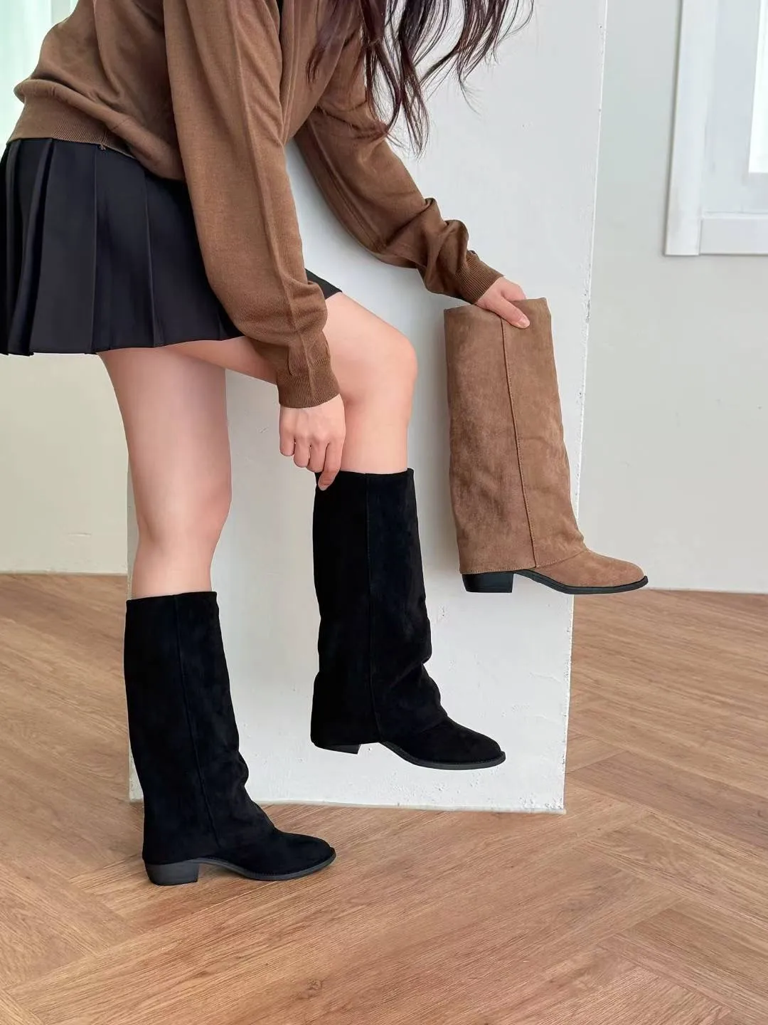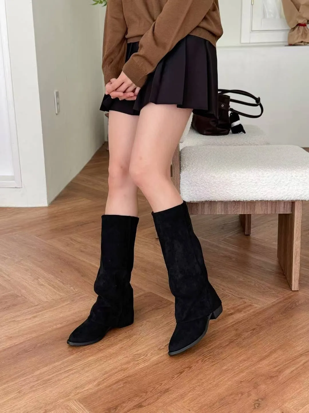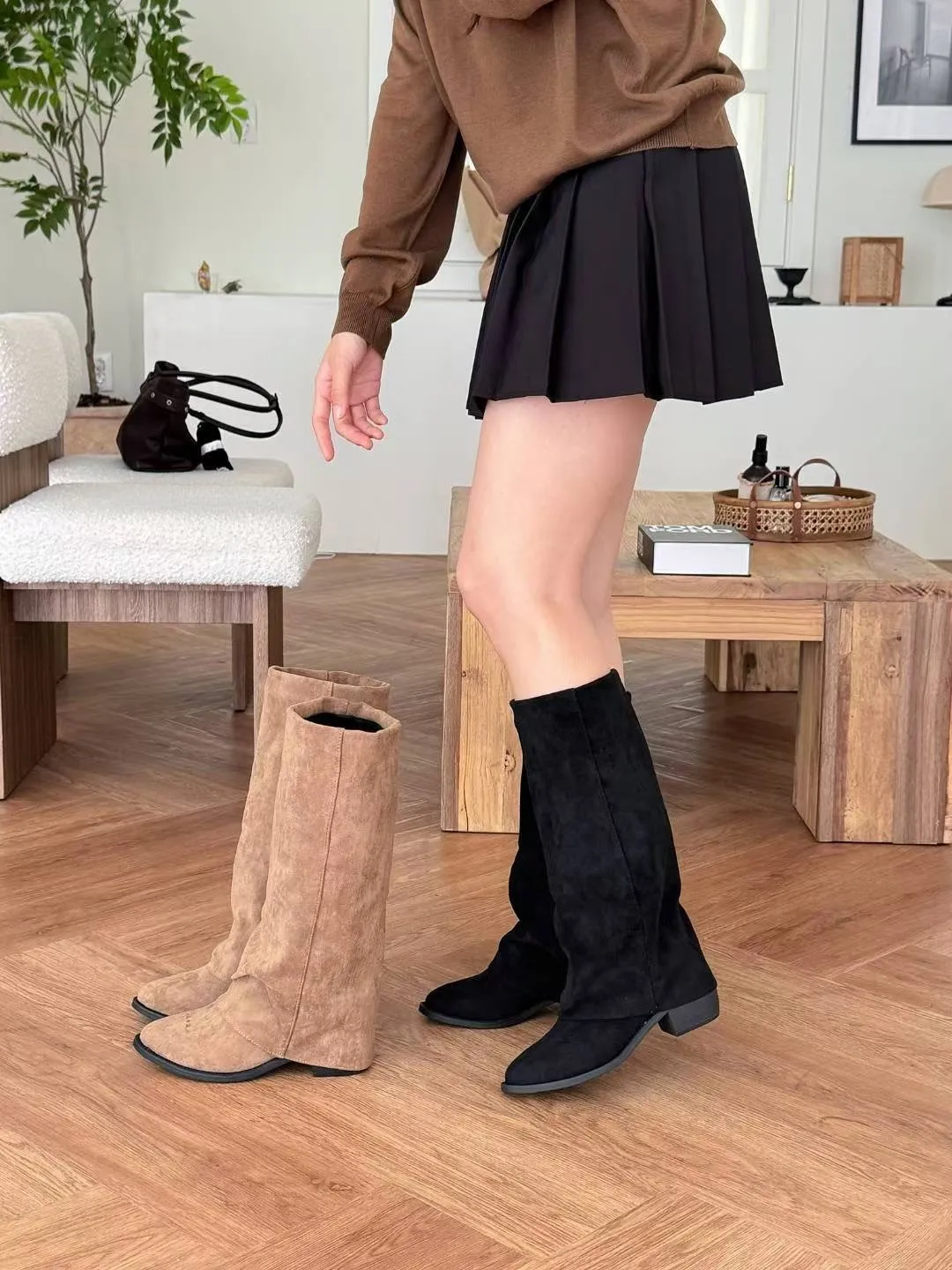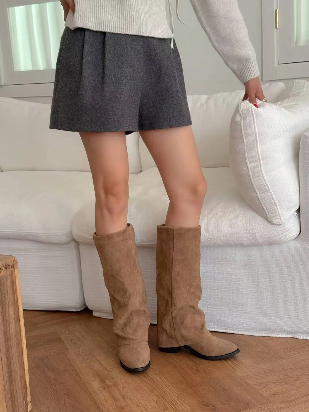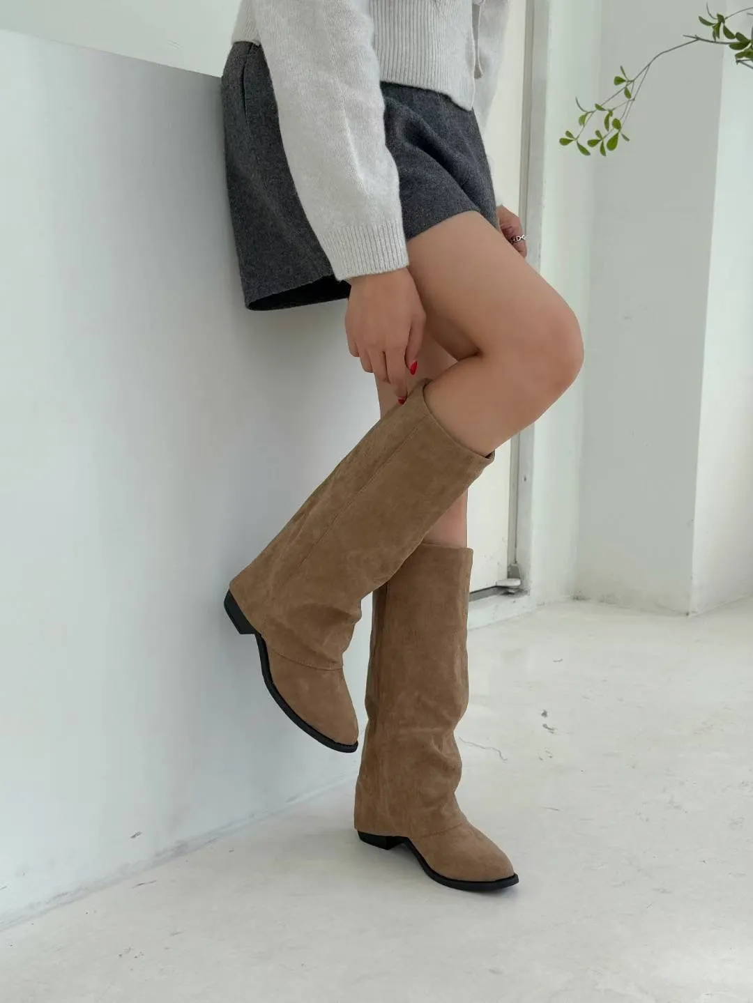 質感麂皮面料,版型修飾小腿線條,