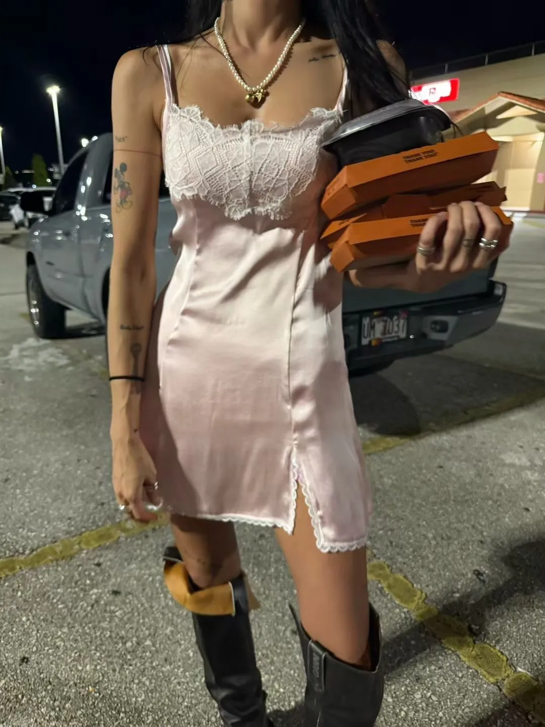 • 細緻蕾絲拼接胸口,優雅中帶點性感