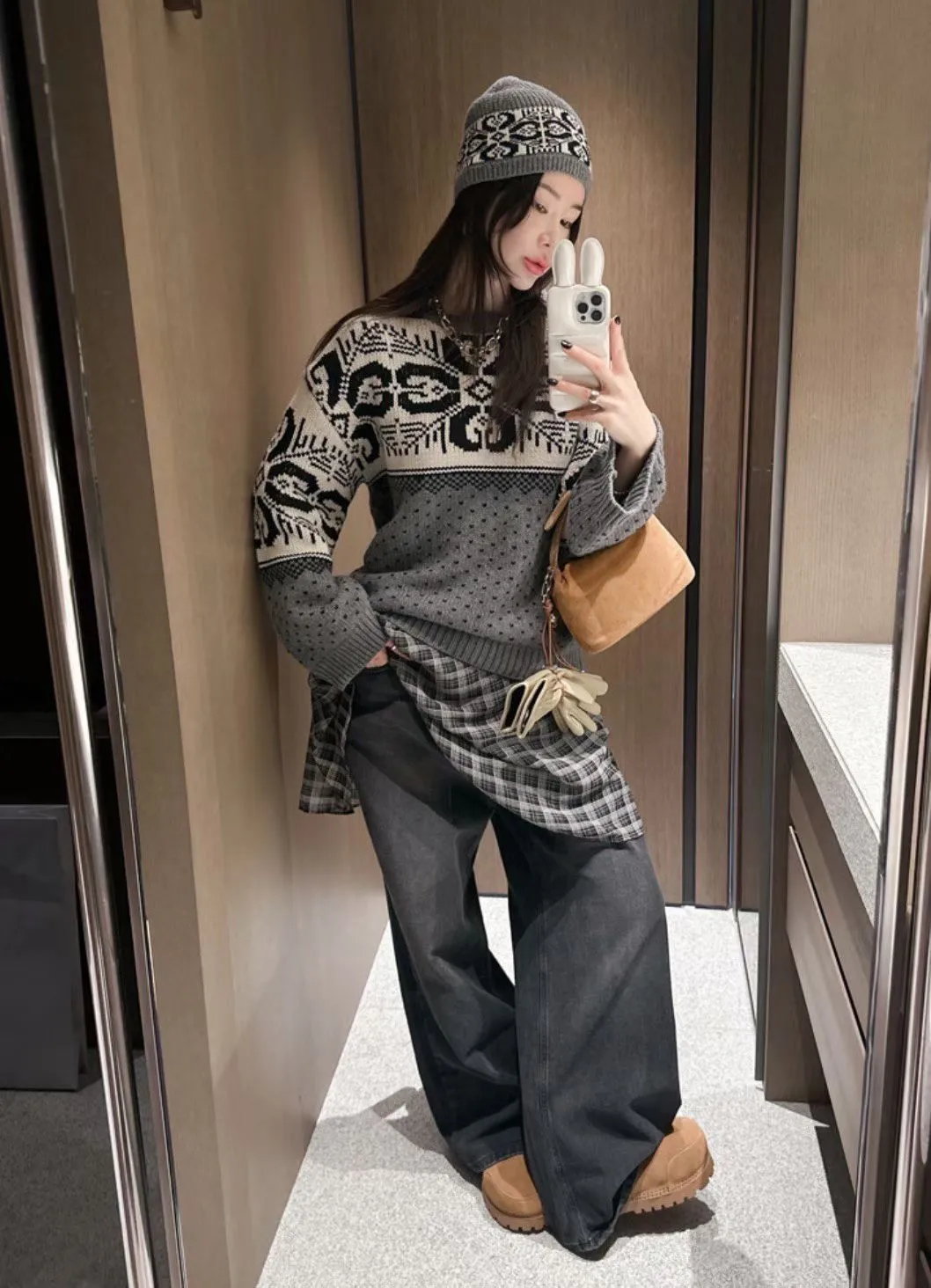 厚度剛好、版型挺,花紋超美很有韓系冬季氛圍。