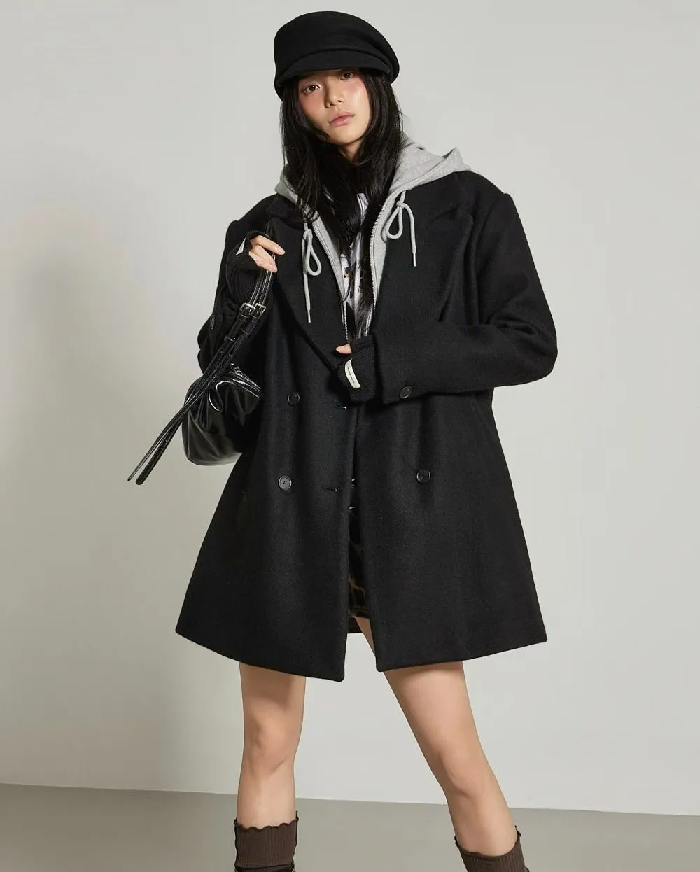 羊毛80%的大衣、厚磅有份量,穿起來超挺、超顯瘦,