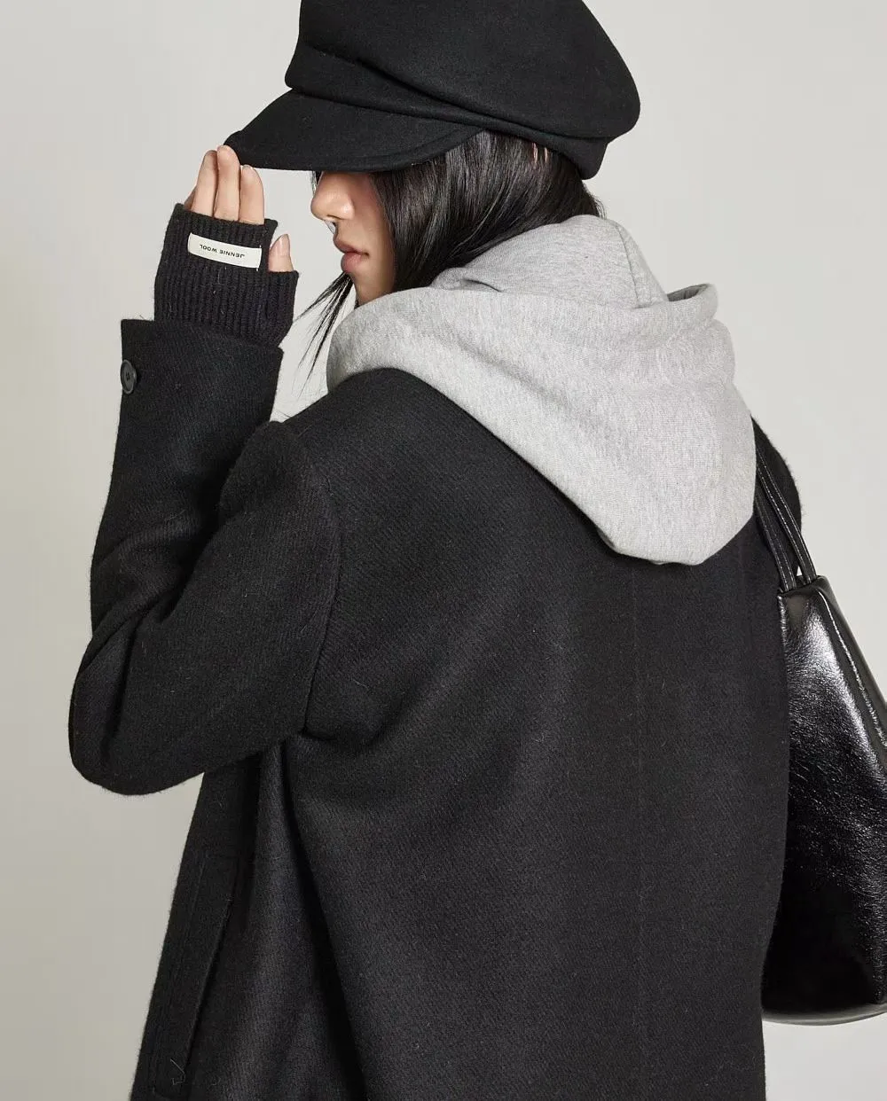 裡面還是「可拆式連帽」=看起來像帽T疊穿,但完全不厚重。