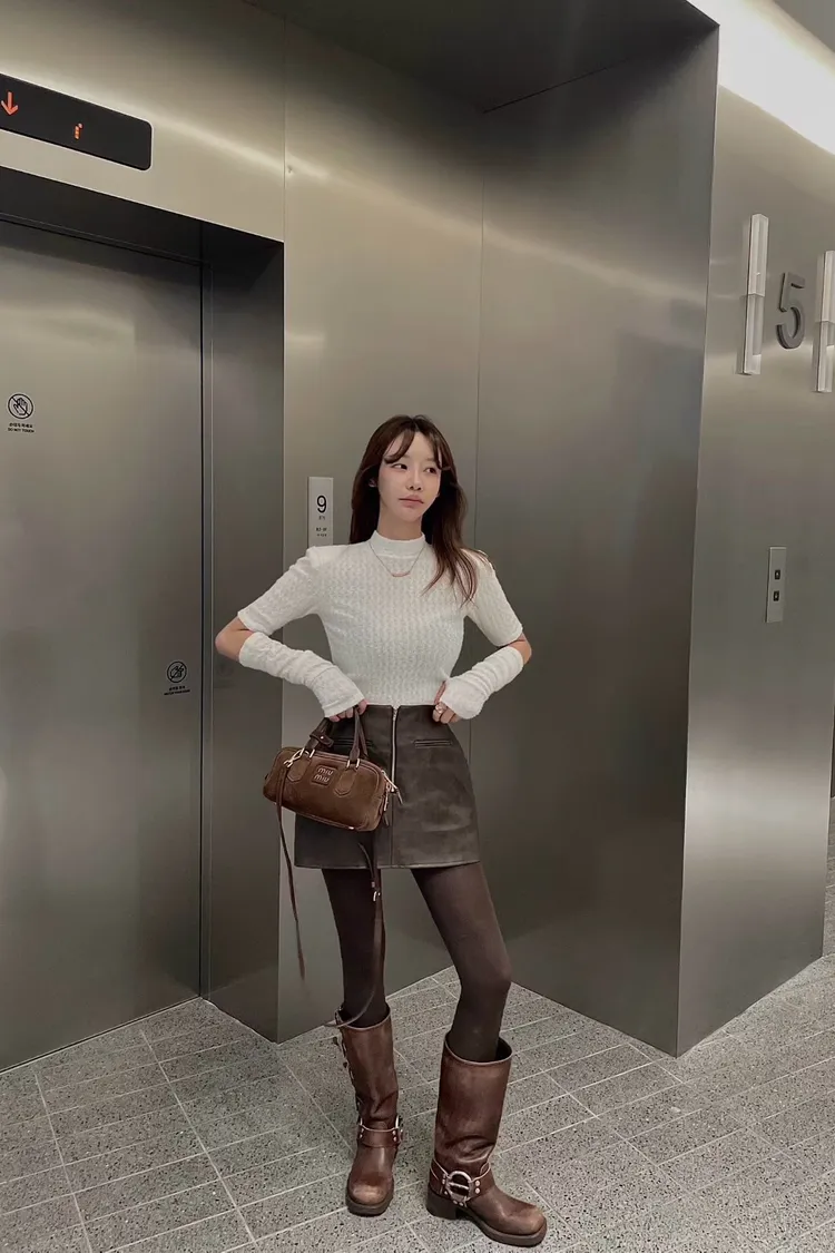 ✔ 搭皮裙、短靴、長靴都性感到不行