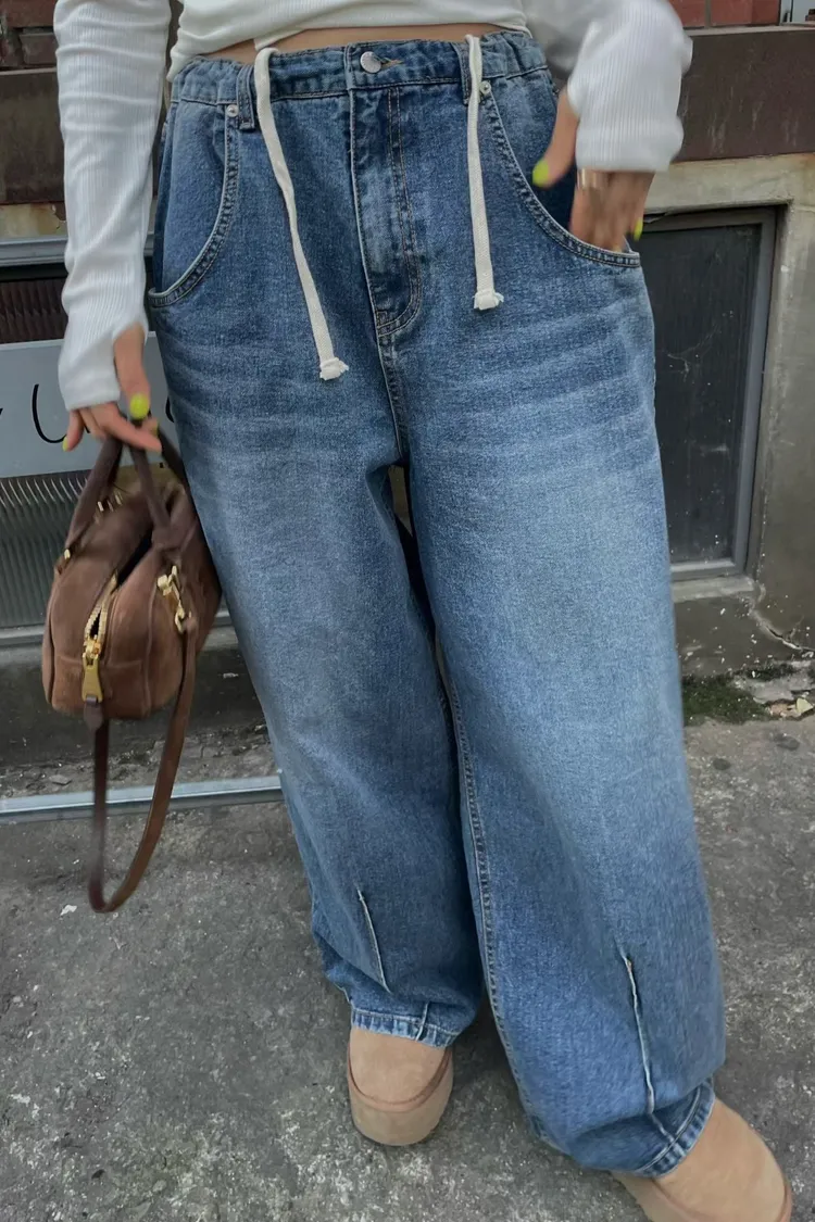 前面抽繩造型可調整、腰圍舒服不緊