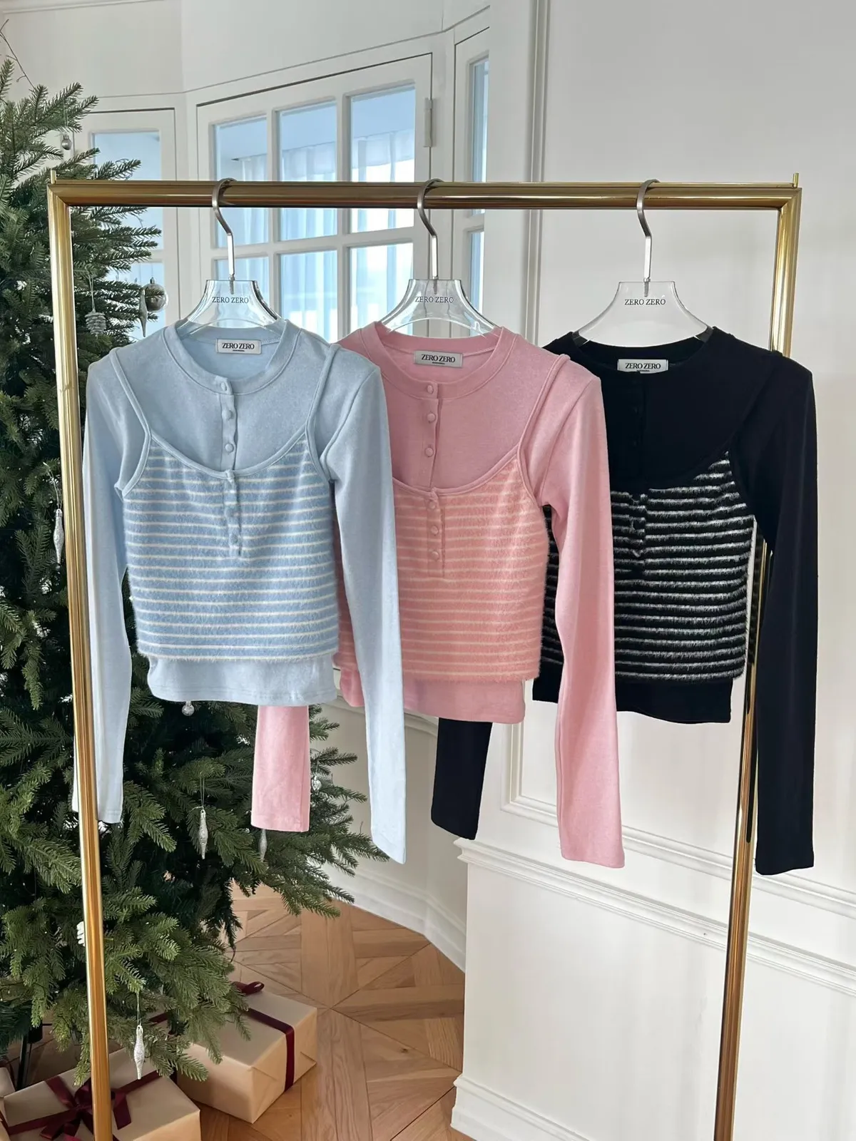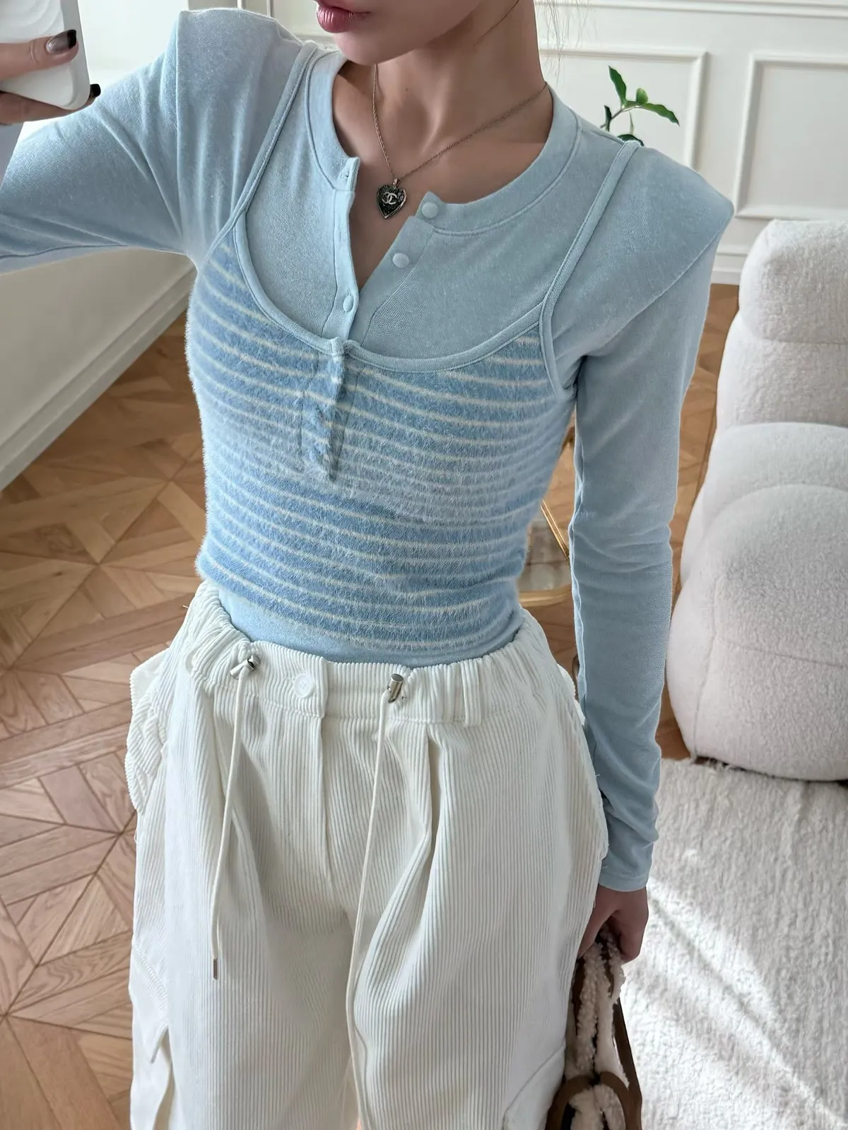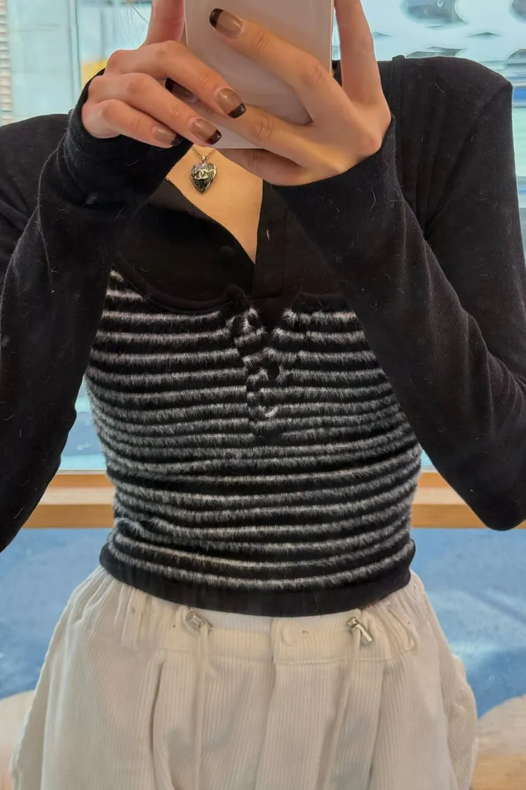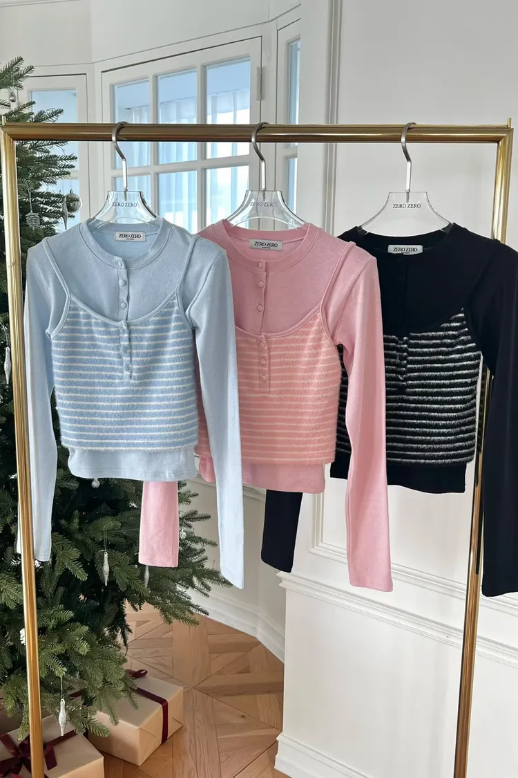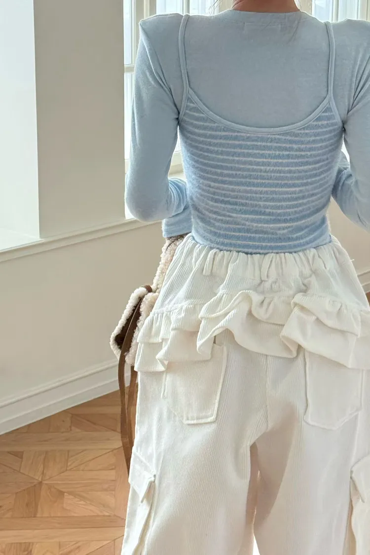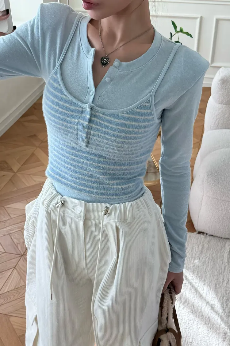・假兩件設計:肩帶背心+內搭長袖 LOOK,直接幫你穿好層次感