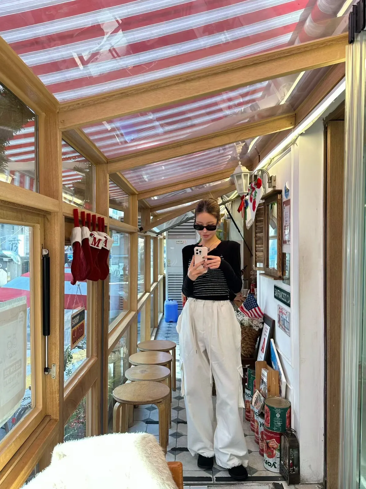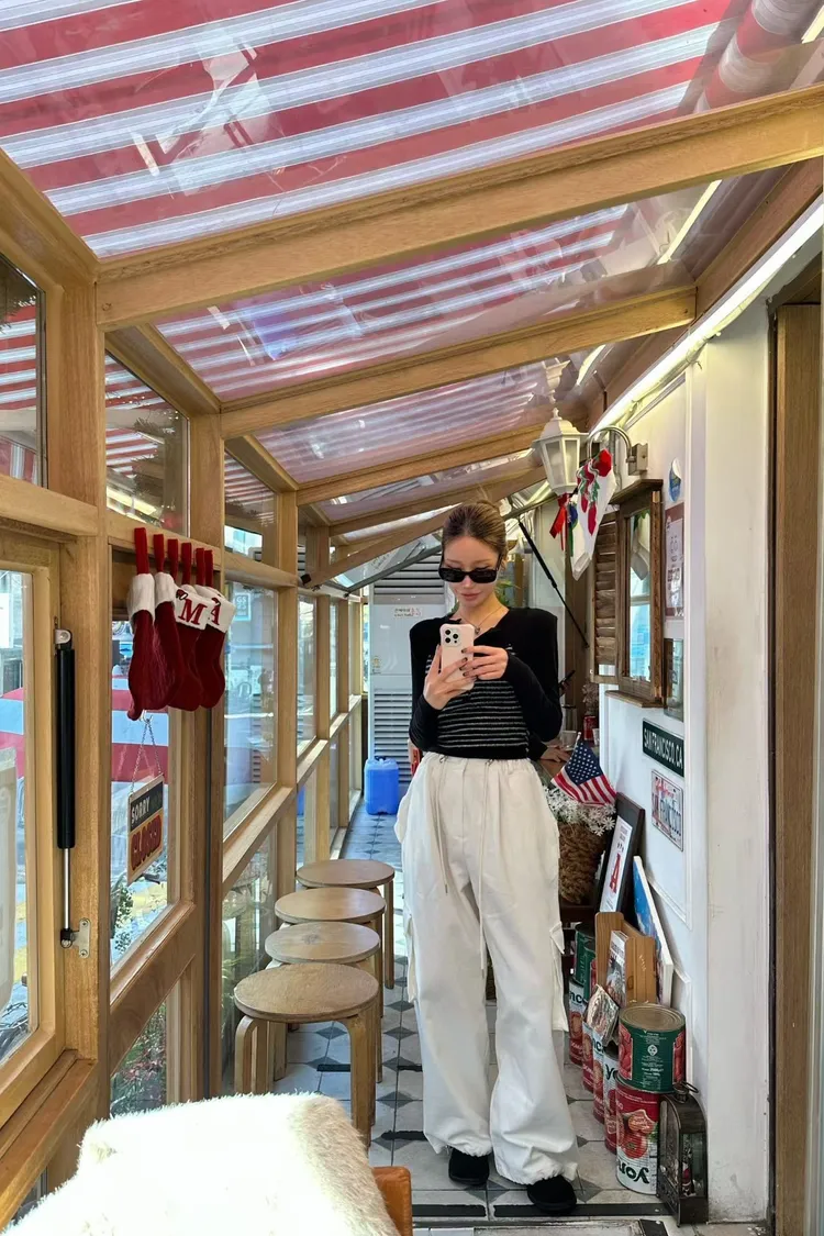 ・寬管+落地版型:腿直接變直,比例秒拉高