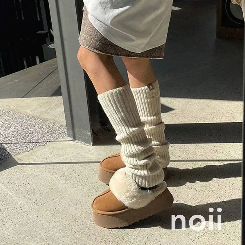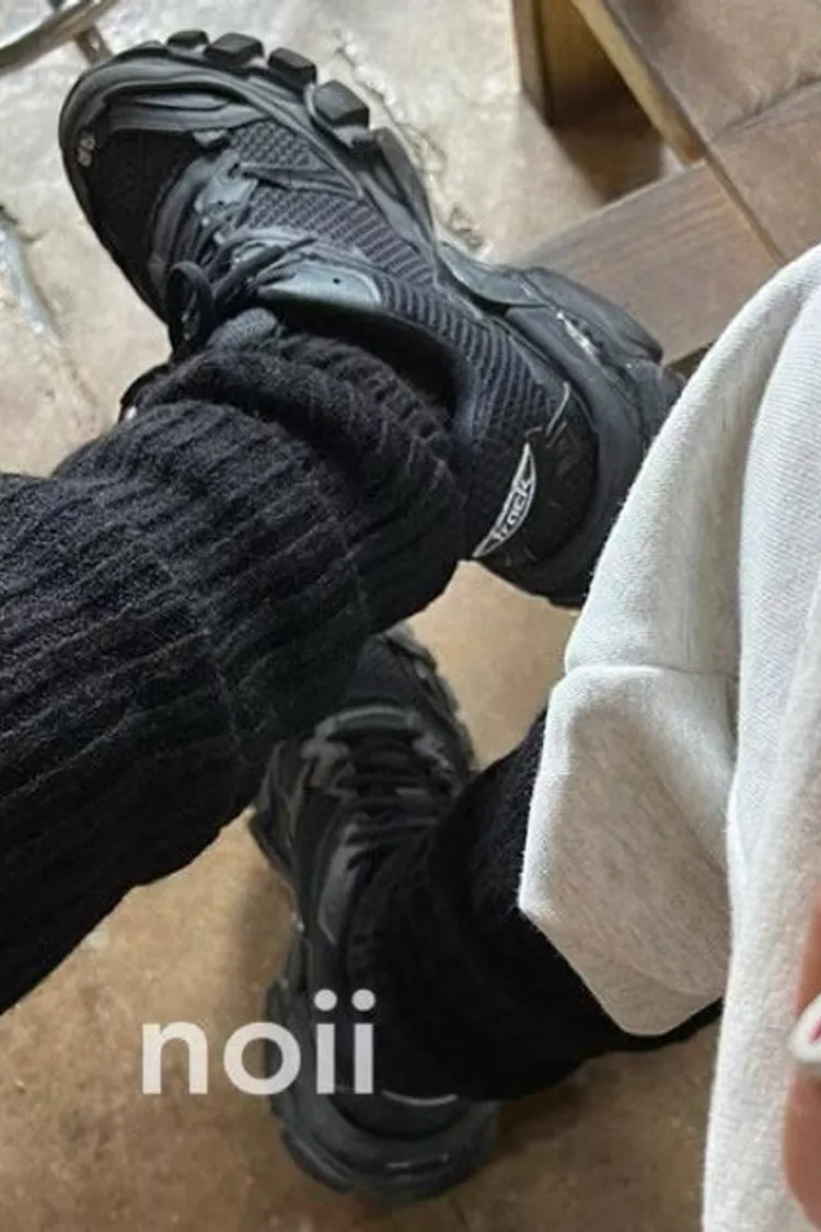 厚實螺紋針織,保暖度滿分,搭UGG、雪靴、小白鞋都很好看。