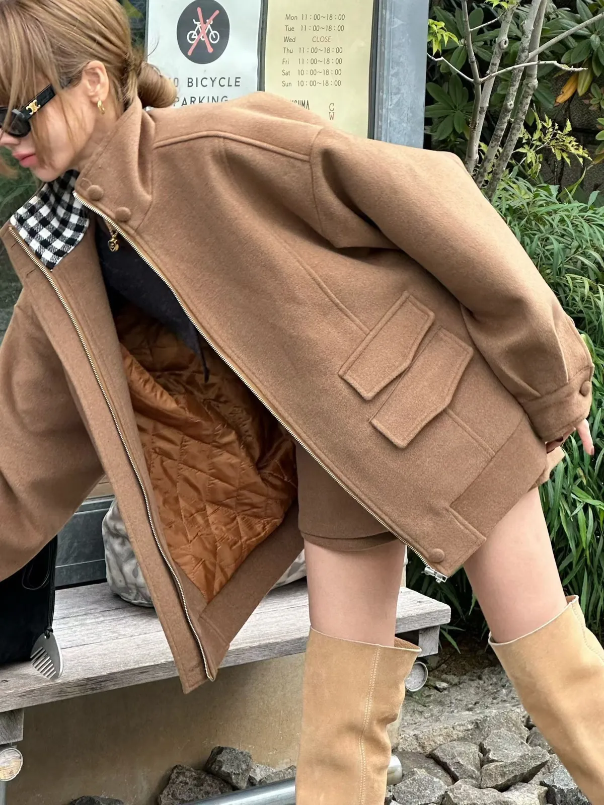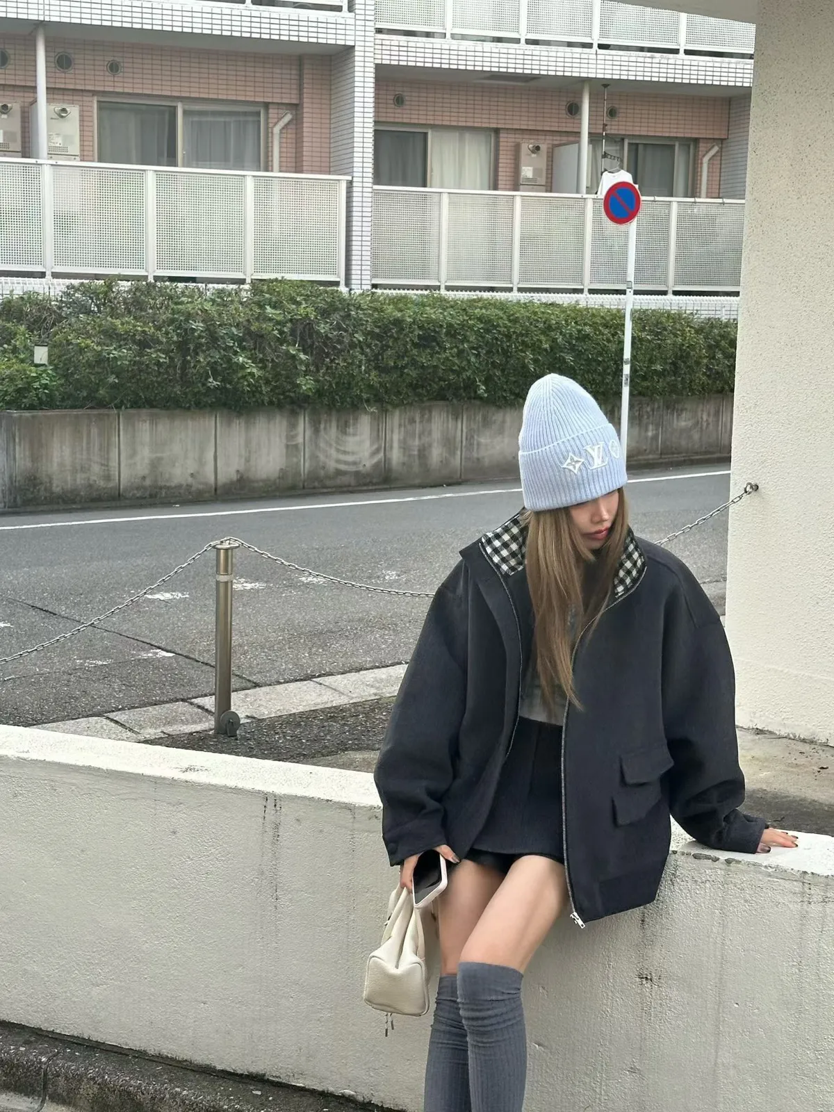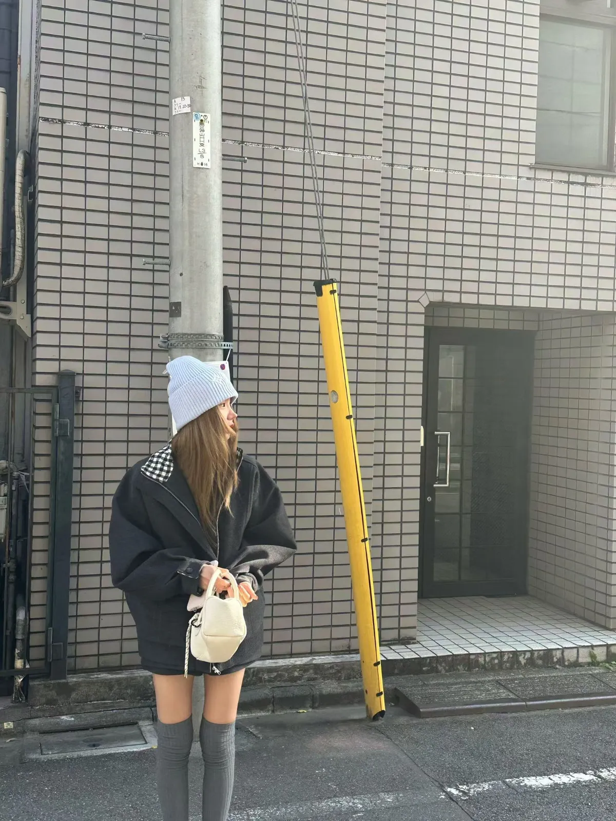 • 格紋拼接內領 → 一翻領超可愛,低調卻超有設計感
