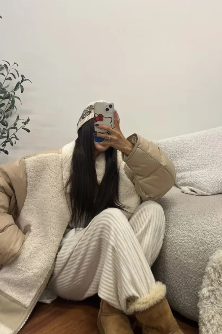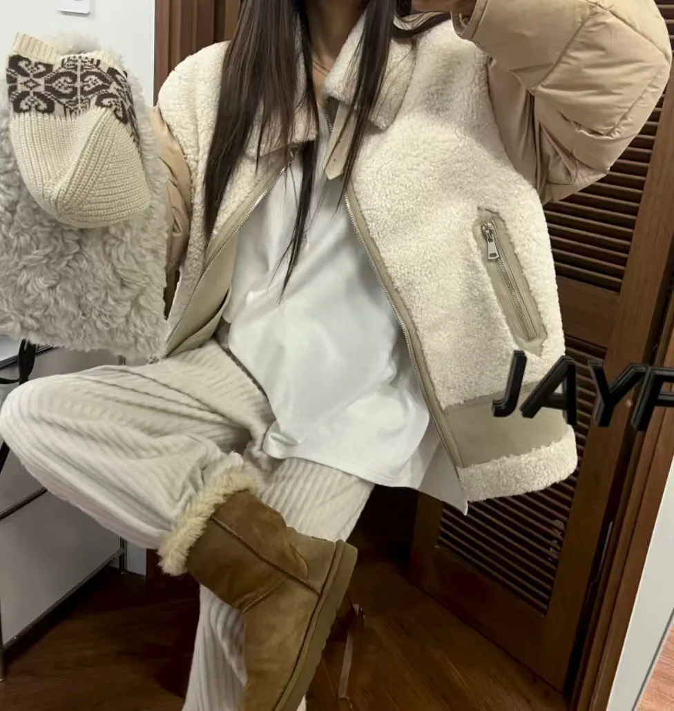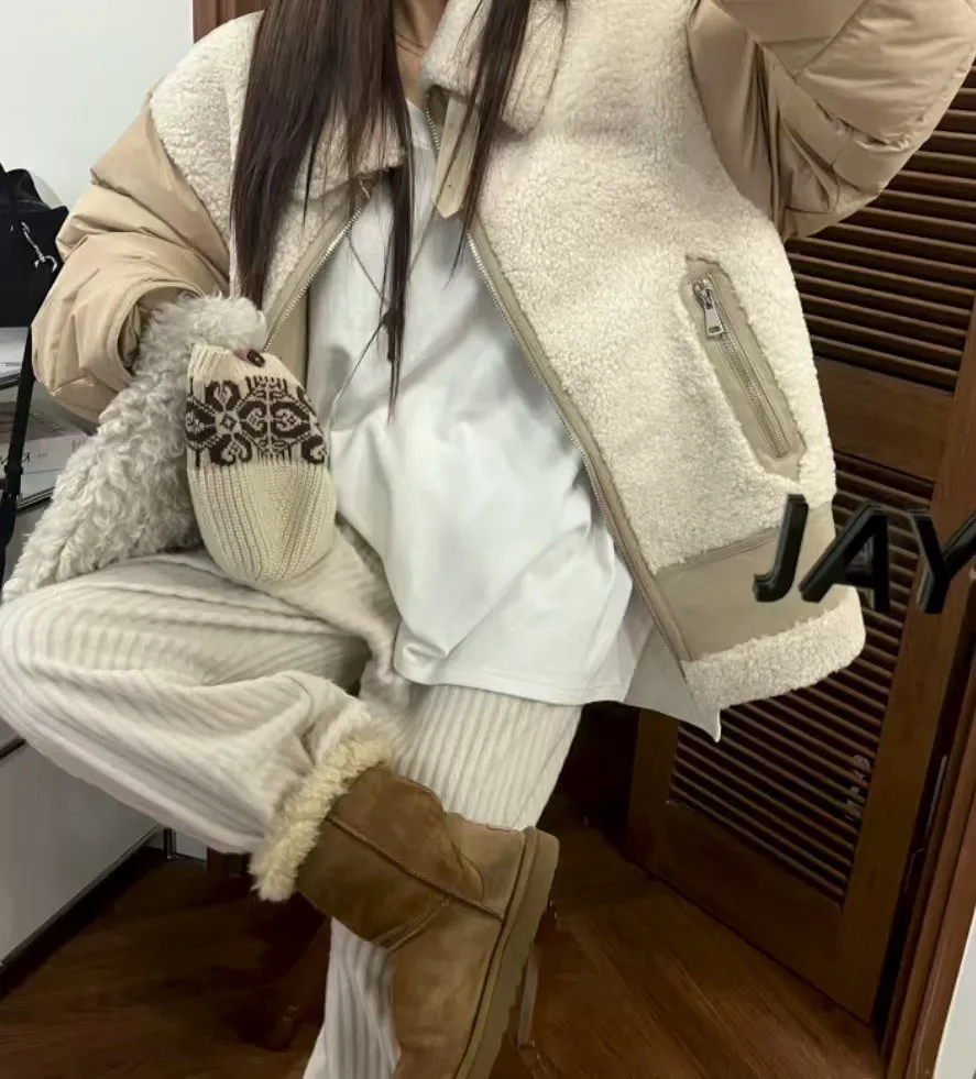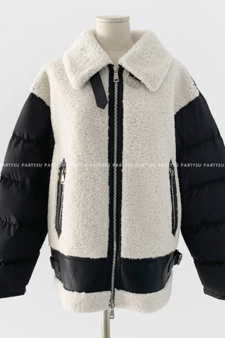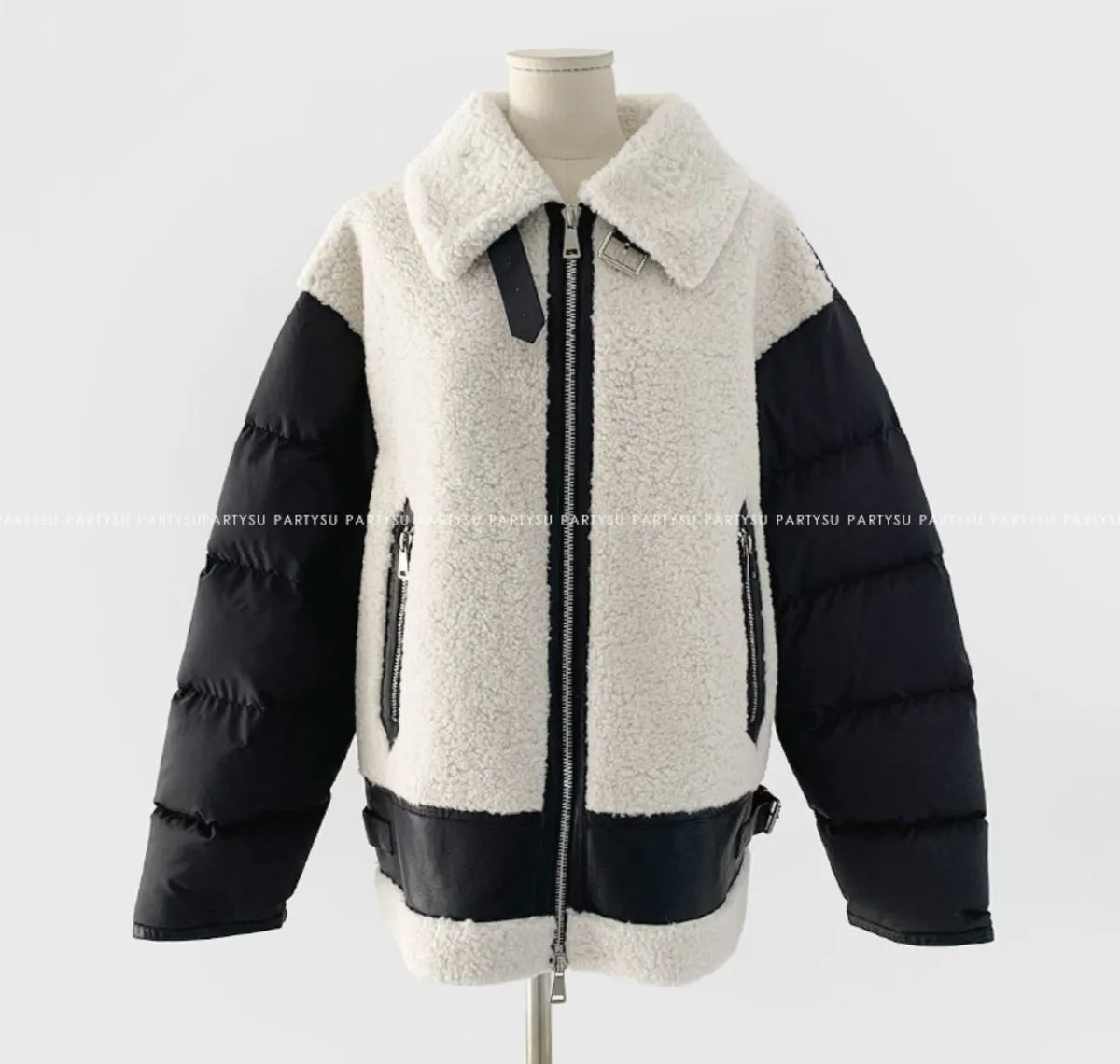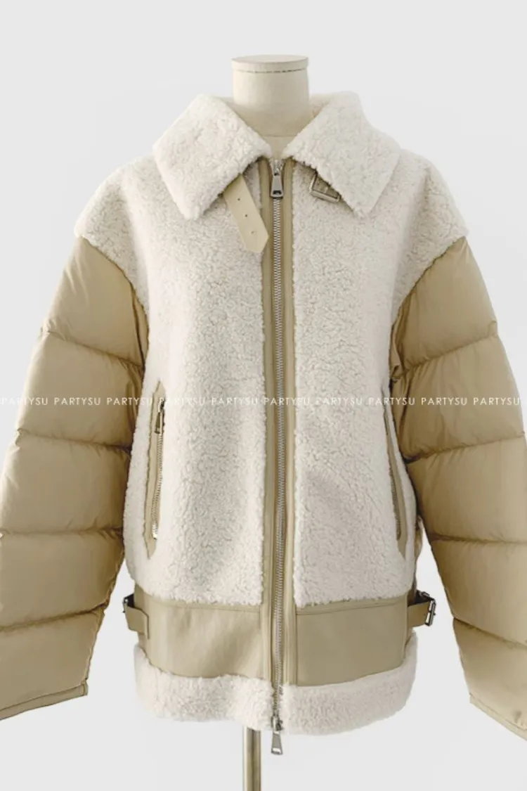 它是「羊羔絨+羽絨」的拼接外套,份量感超美、超挺,穿起來不會臃腫,反而超級顯瘦!!