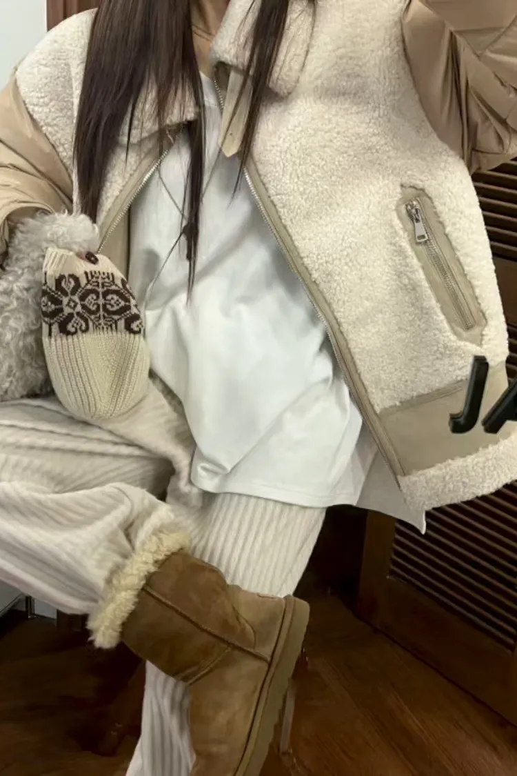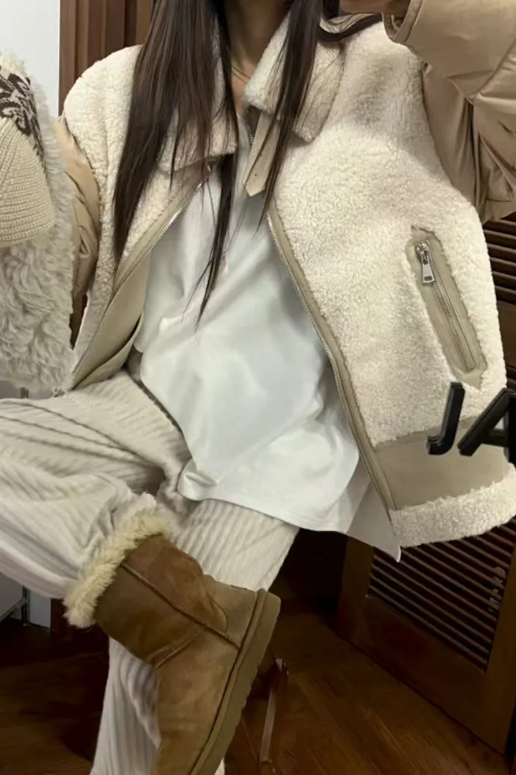 身體前後是厚實羊羔絨,超暖、超舒服❤️