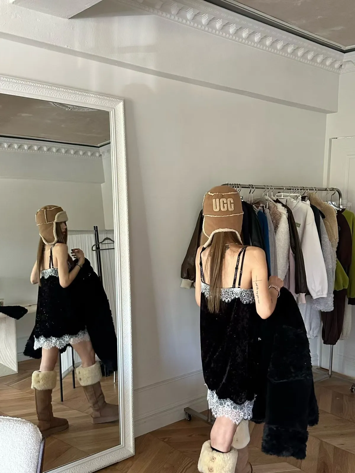 ・單穿或疊穿毛毛外套、雪靴、寬褲都很好看
