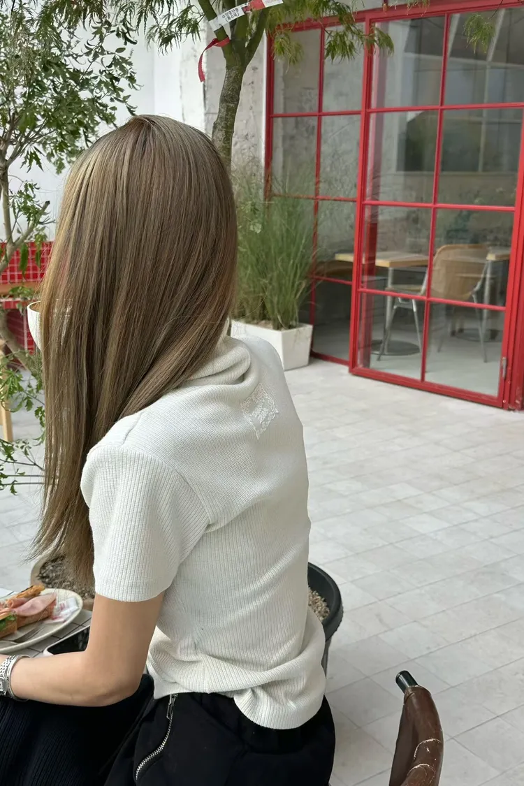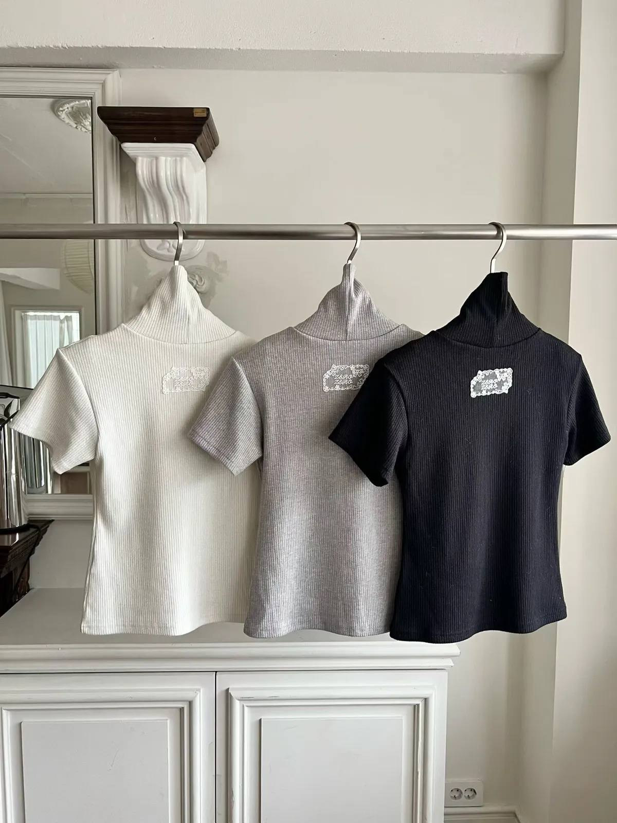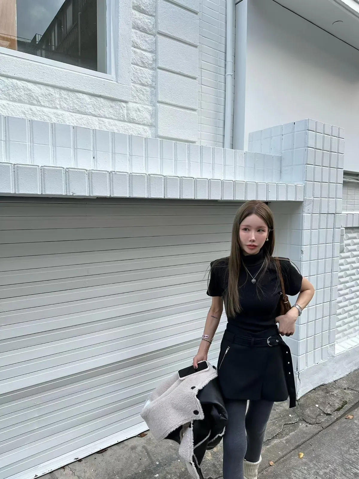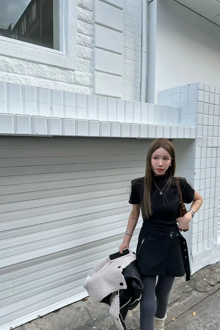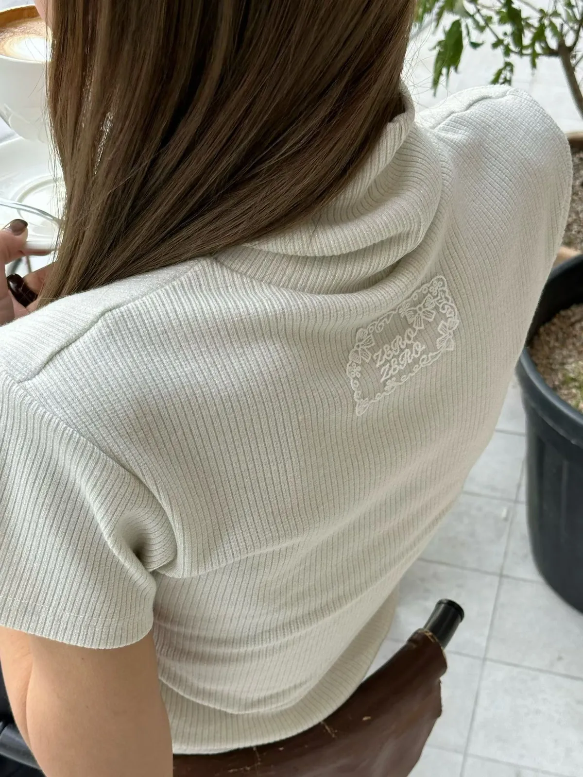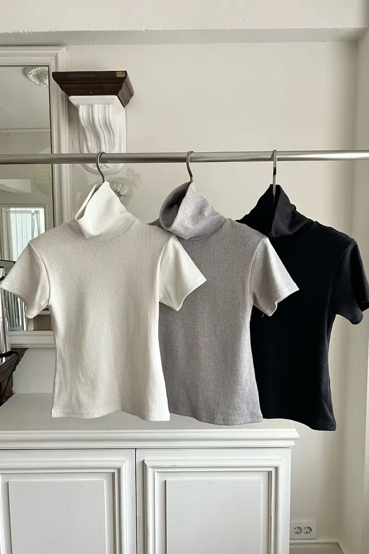 短袖+高領的版型超修飾,外套裡穿也不會厚重。