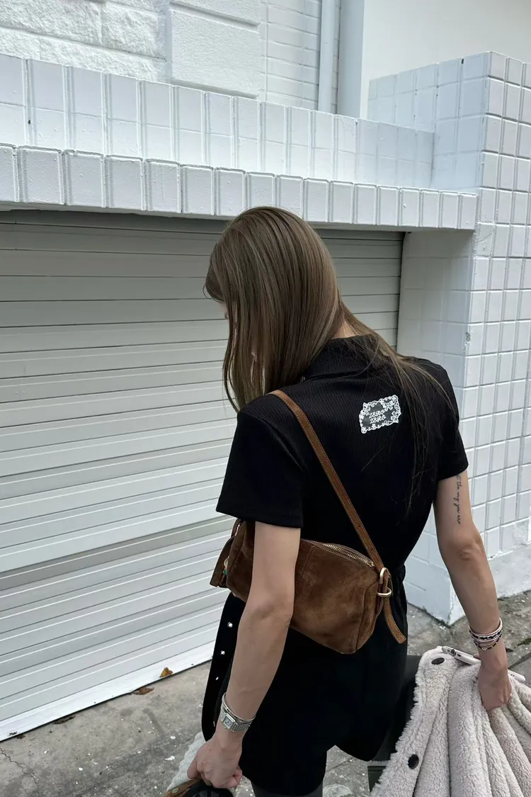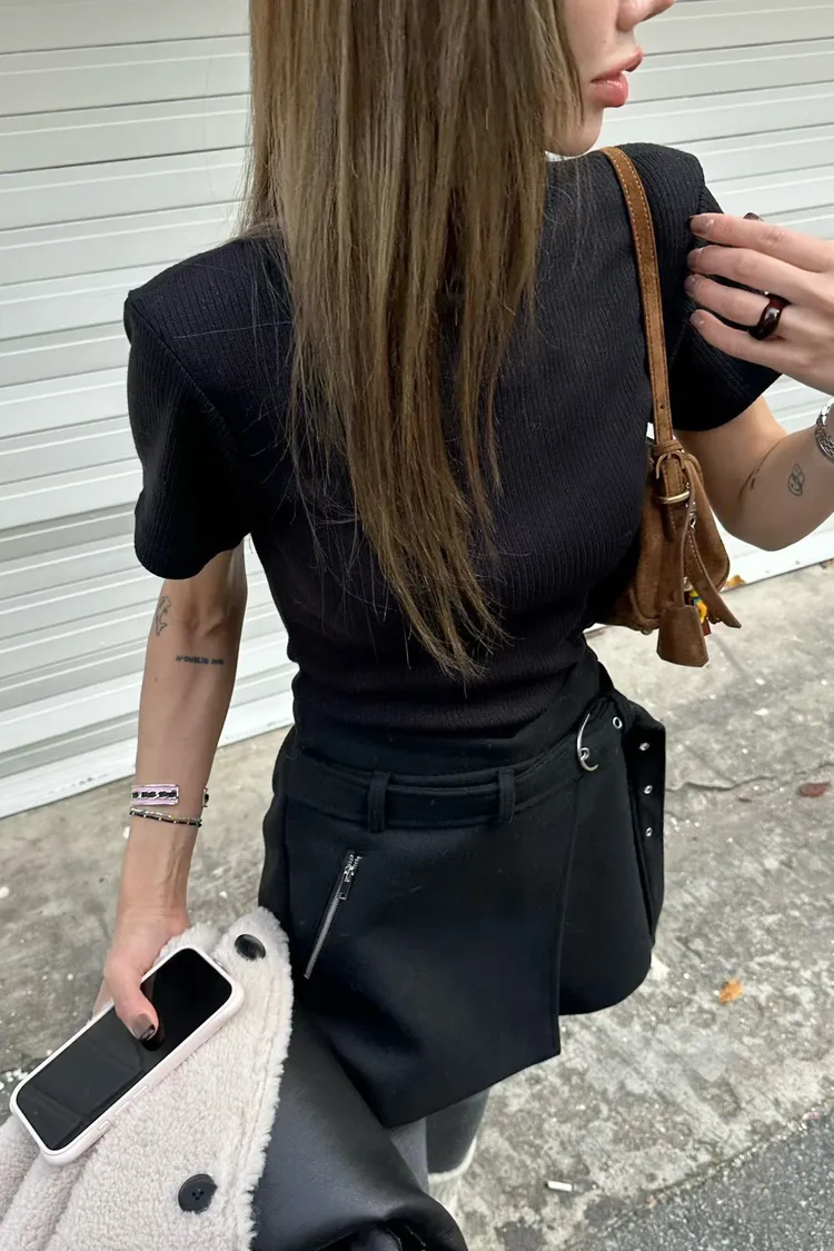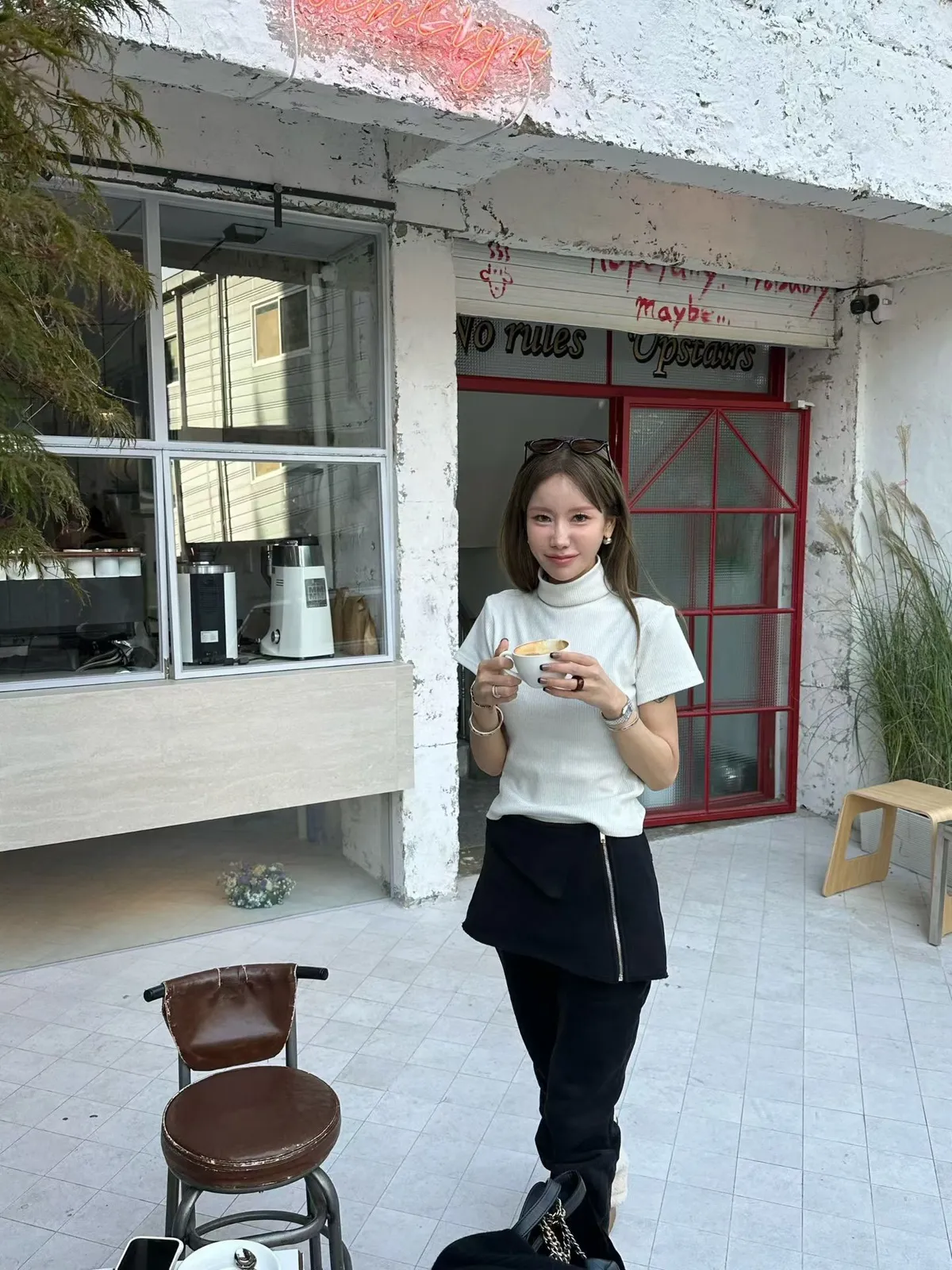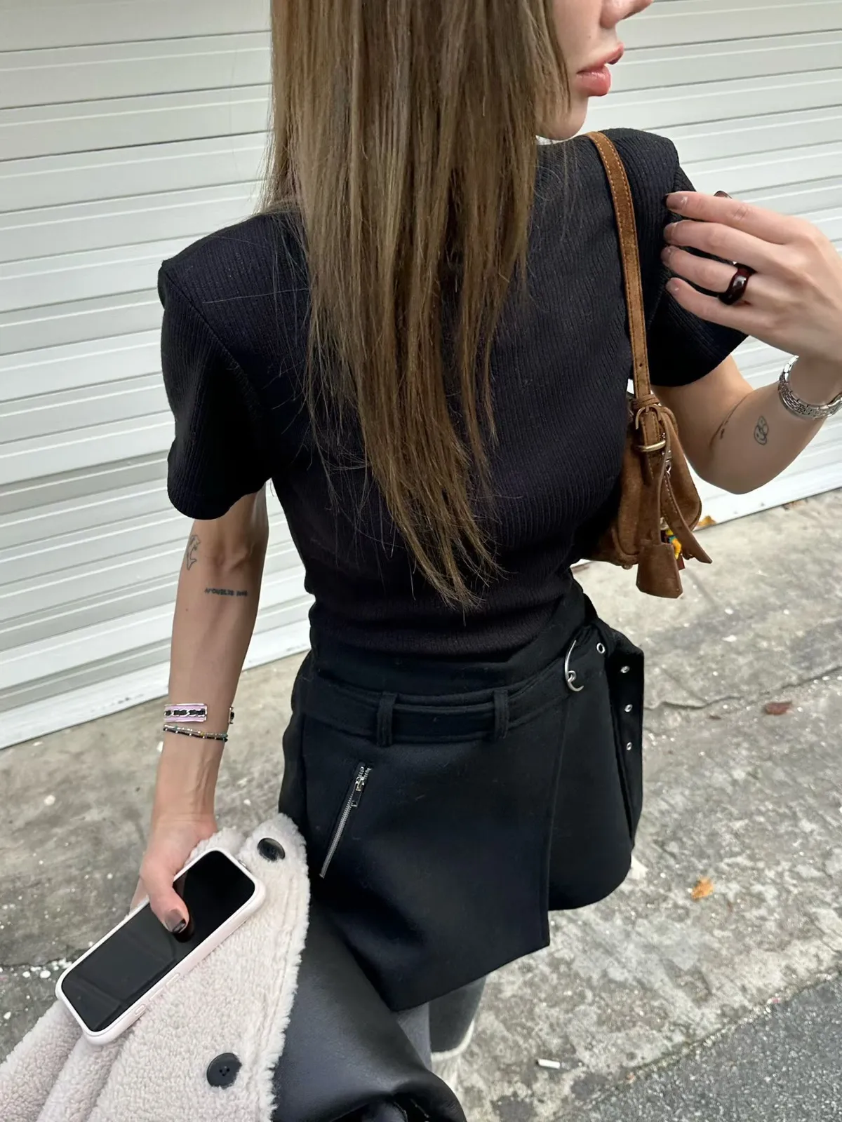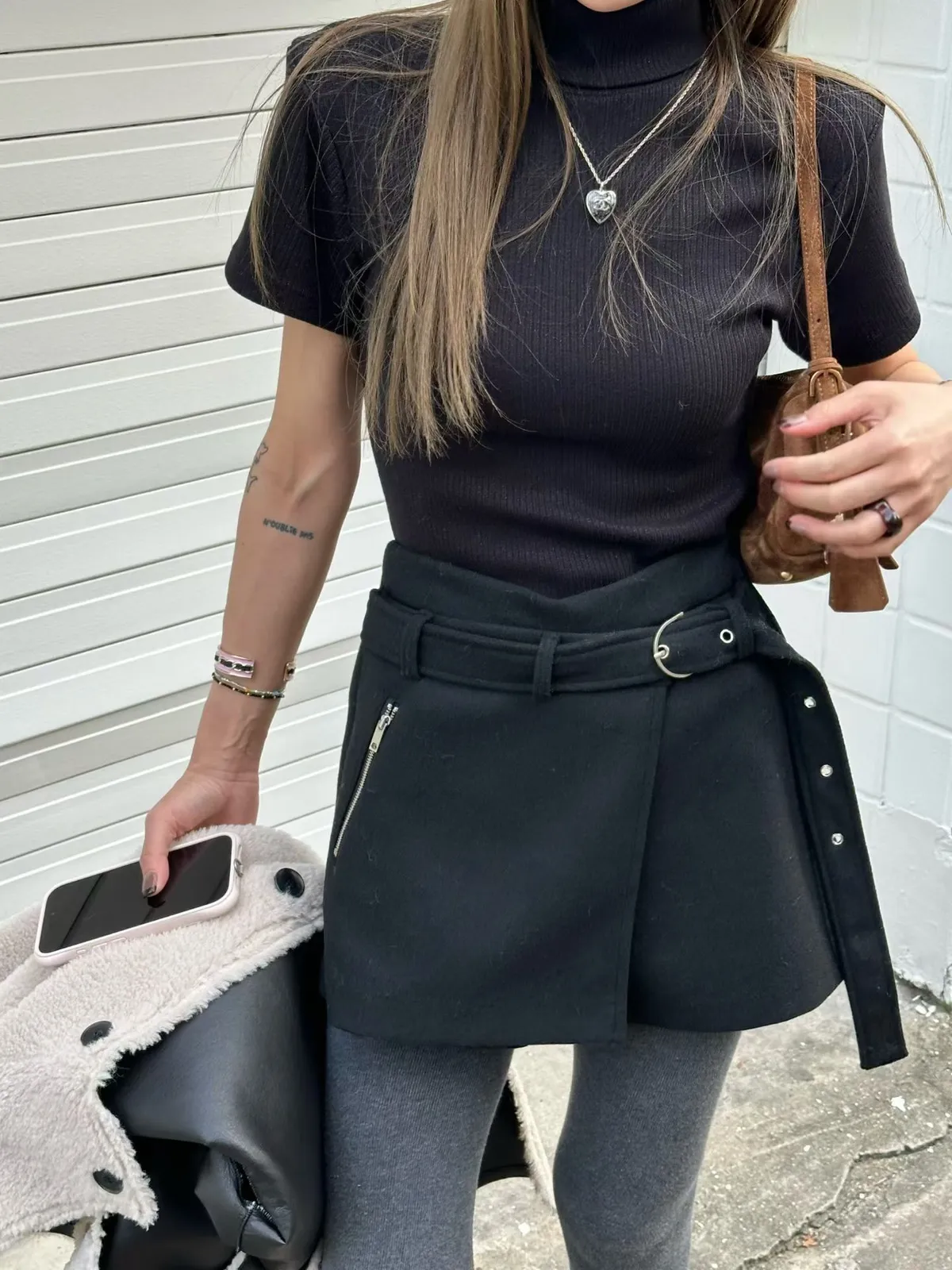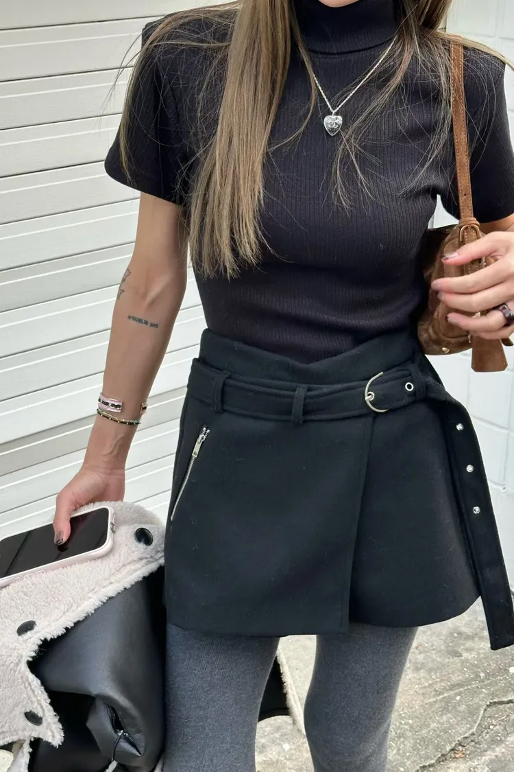 短袖+高領的版型超修飾,外套裡穿也不會厚重。