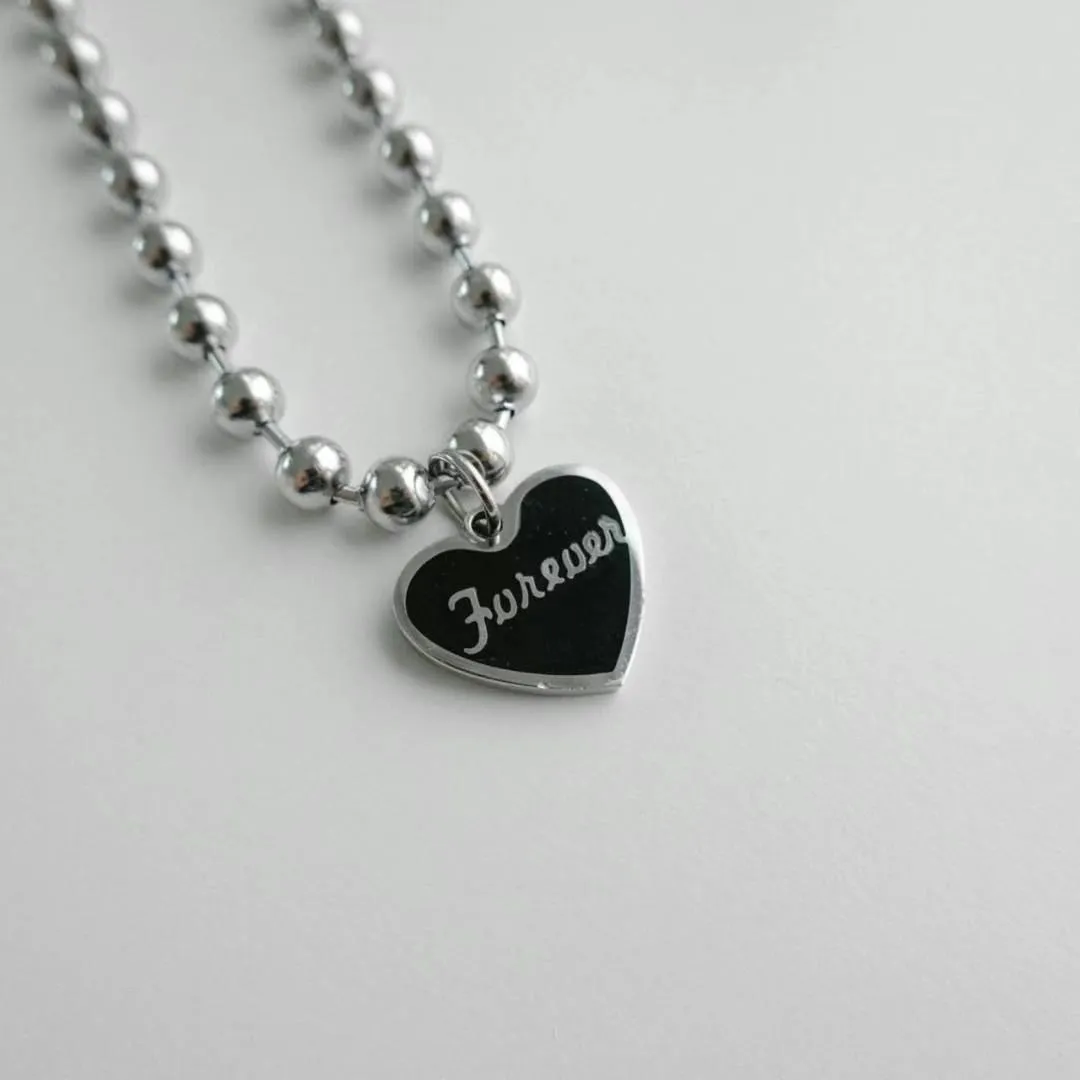 • 黑色愛心吊墜,雕刻「Forever」字樣