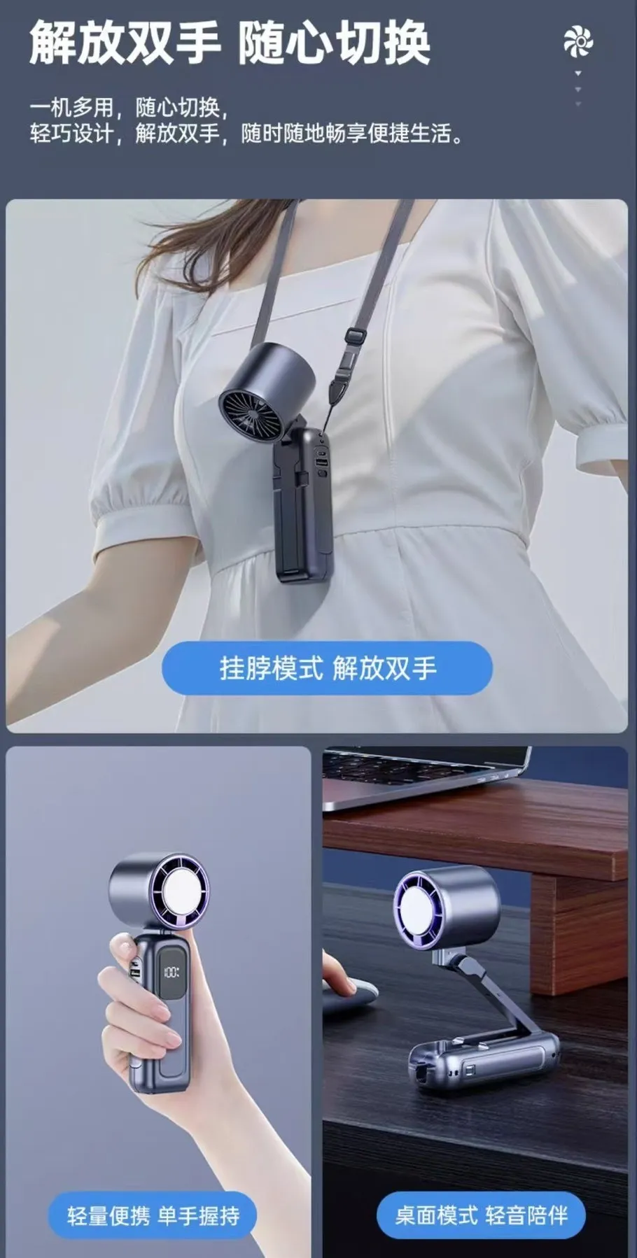 • 降溫效果 10~12°C,比一般小風扇更涼