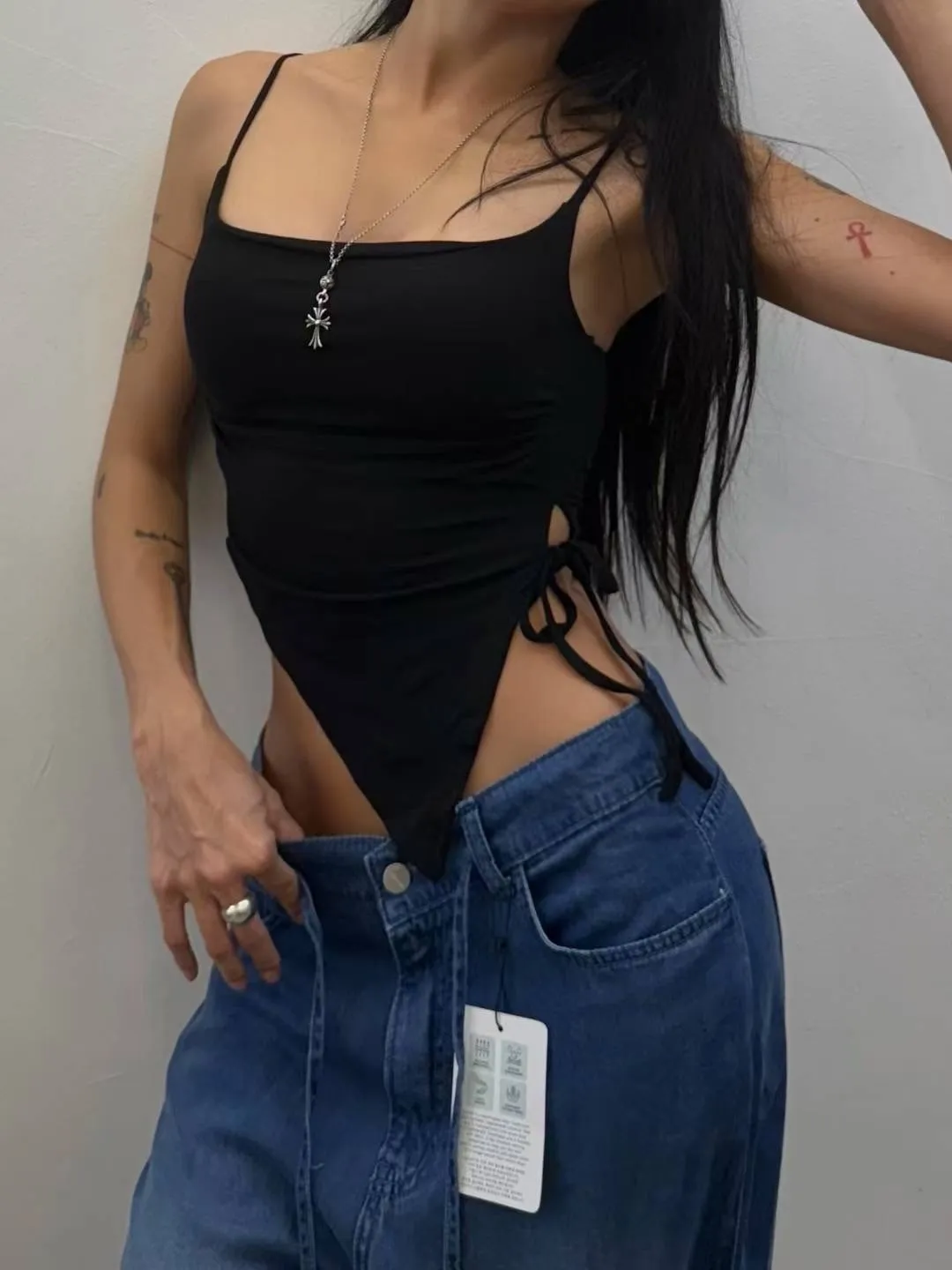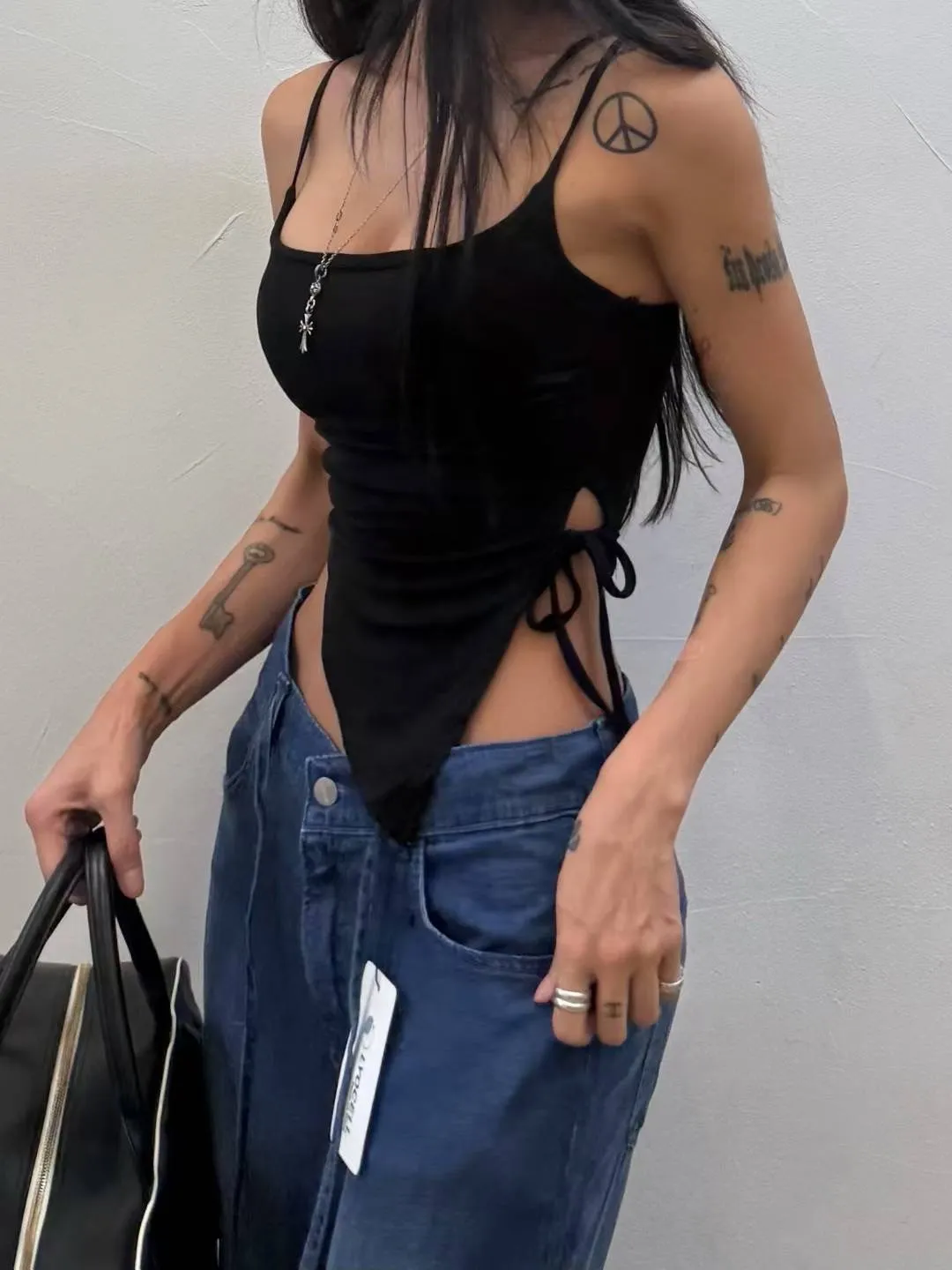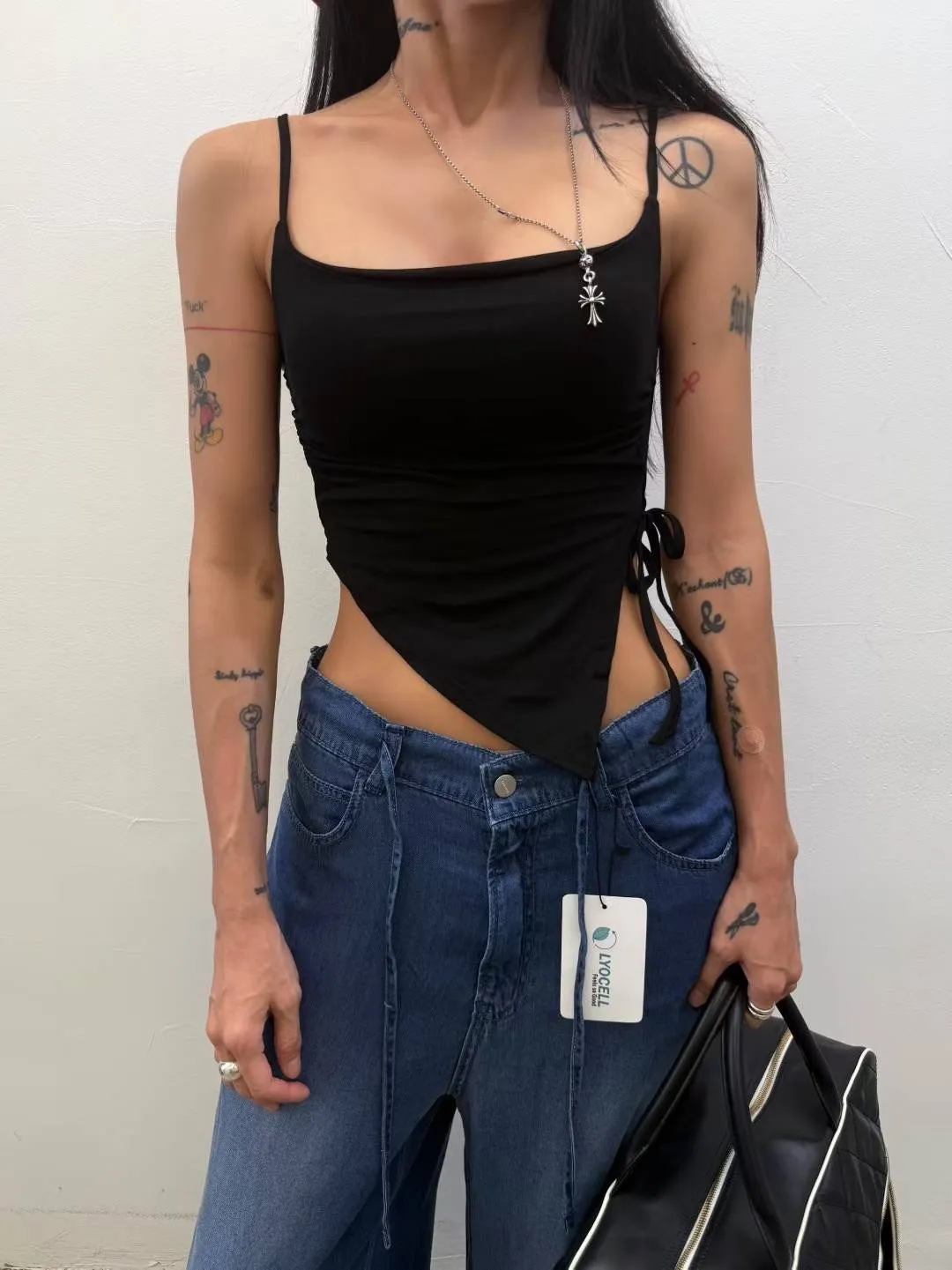 不對稱下擺+側綁帶設計,夏日穿搭亮點首選!