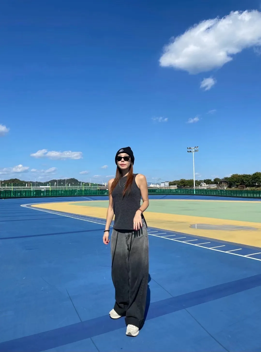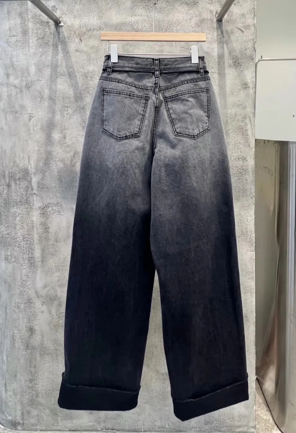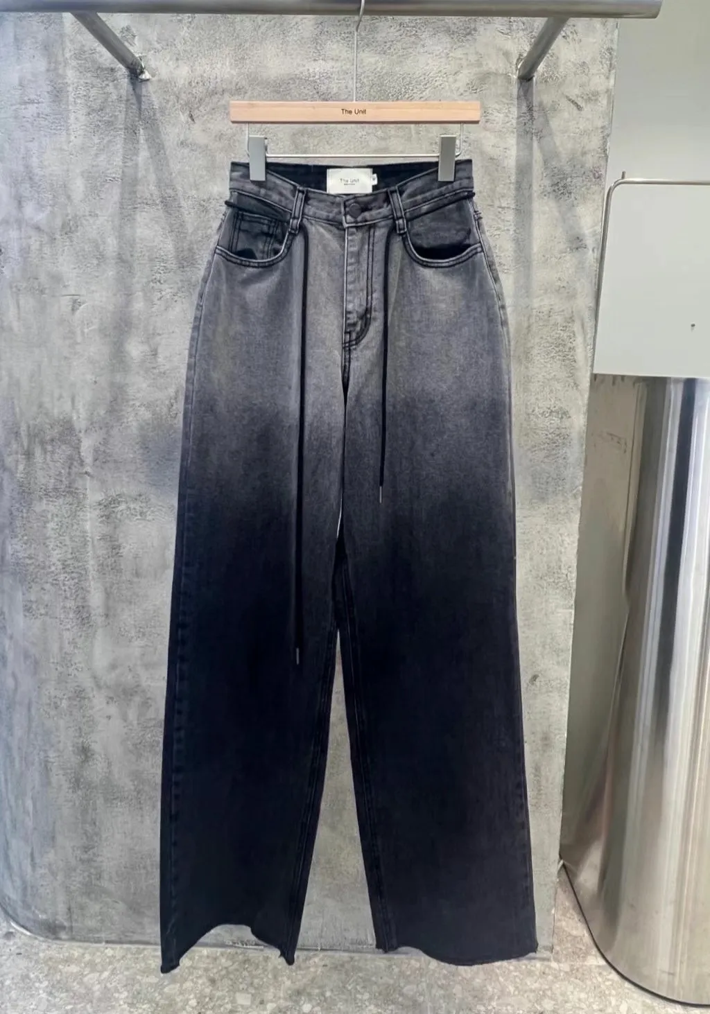 低調中帶點個性,這款高腰黑灰漸層牛仔寬褲,完美拉長腿部比例,兼具修身與舒適。