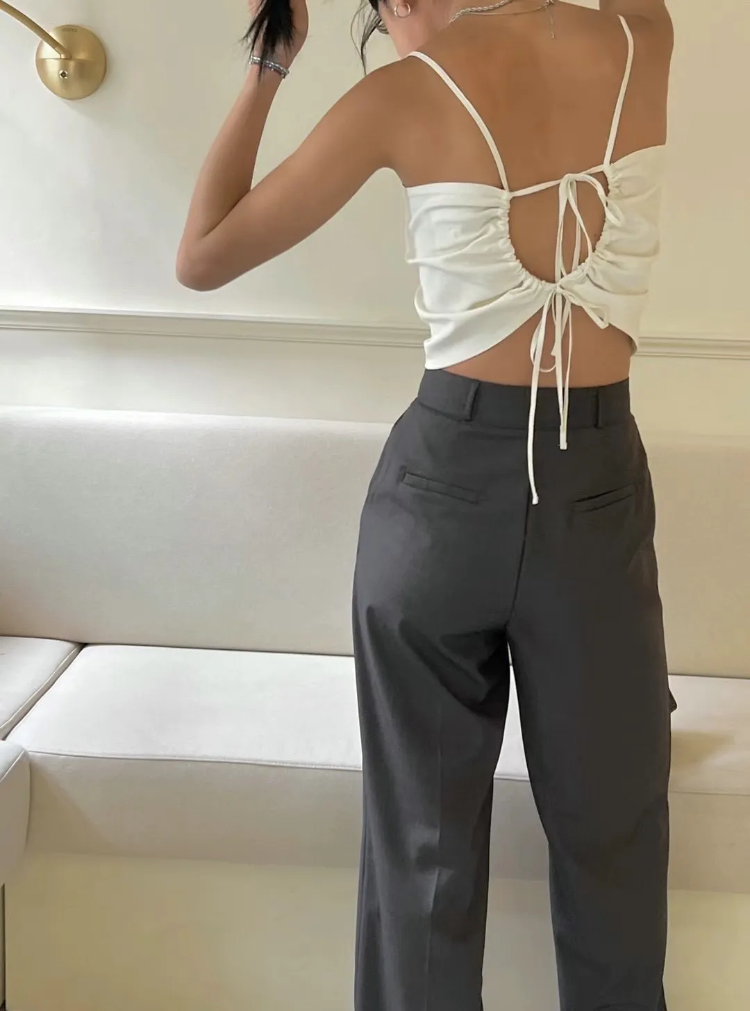細肩+抽皺+綁帶設計=完美曲線!