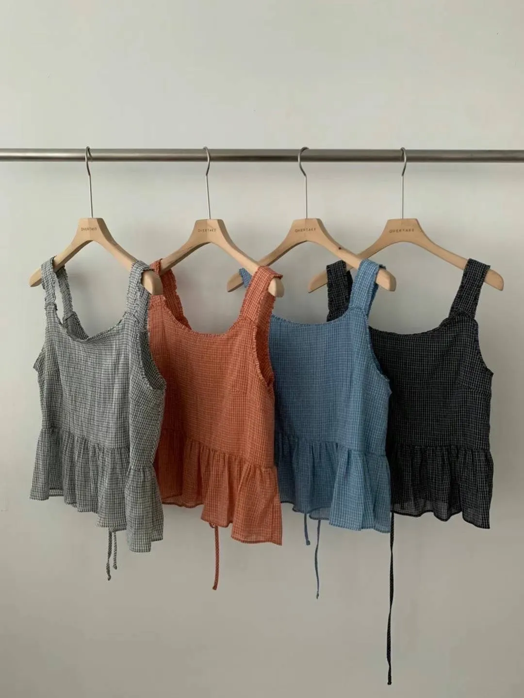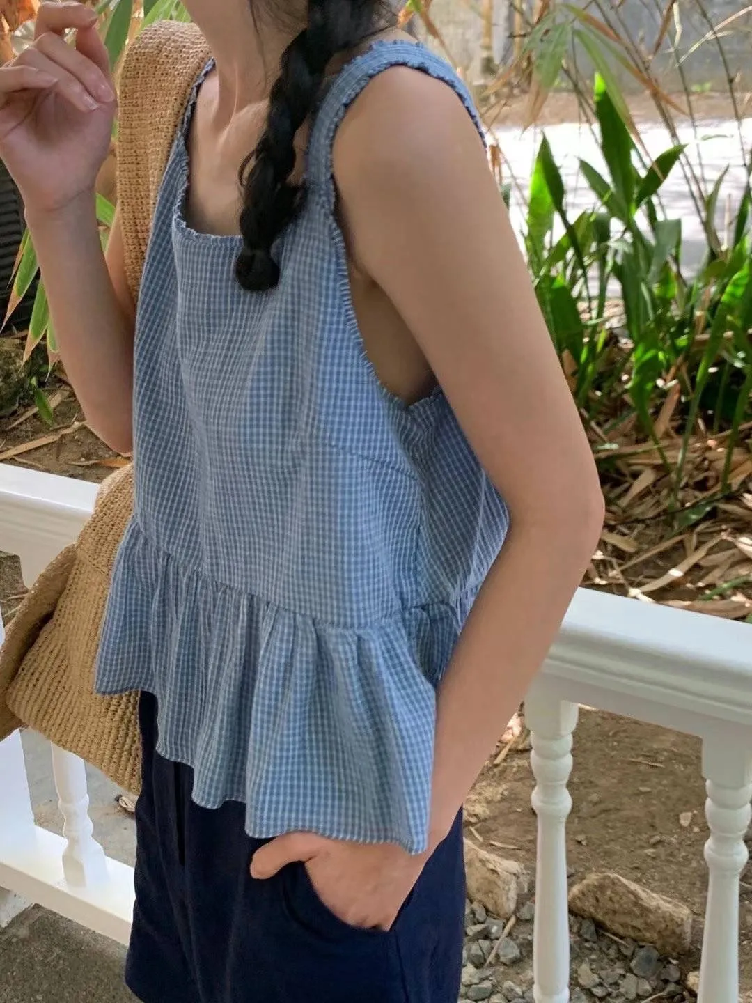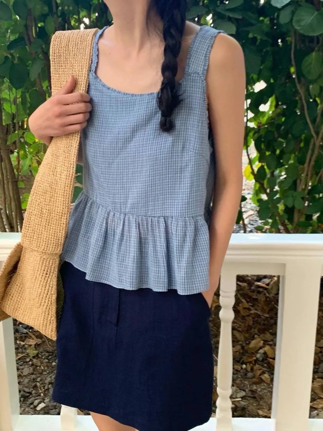方領剪裁展現鎖骨線條,下擺荷葉邊增添甜美感,讓整體造型更有層次感。