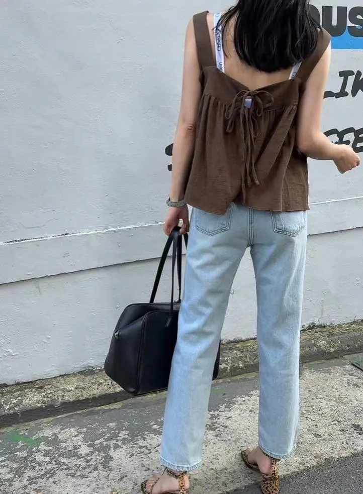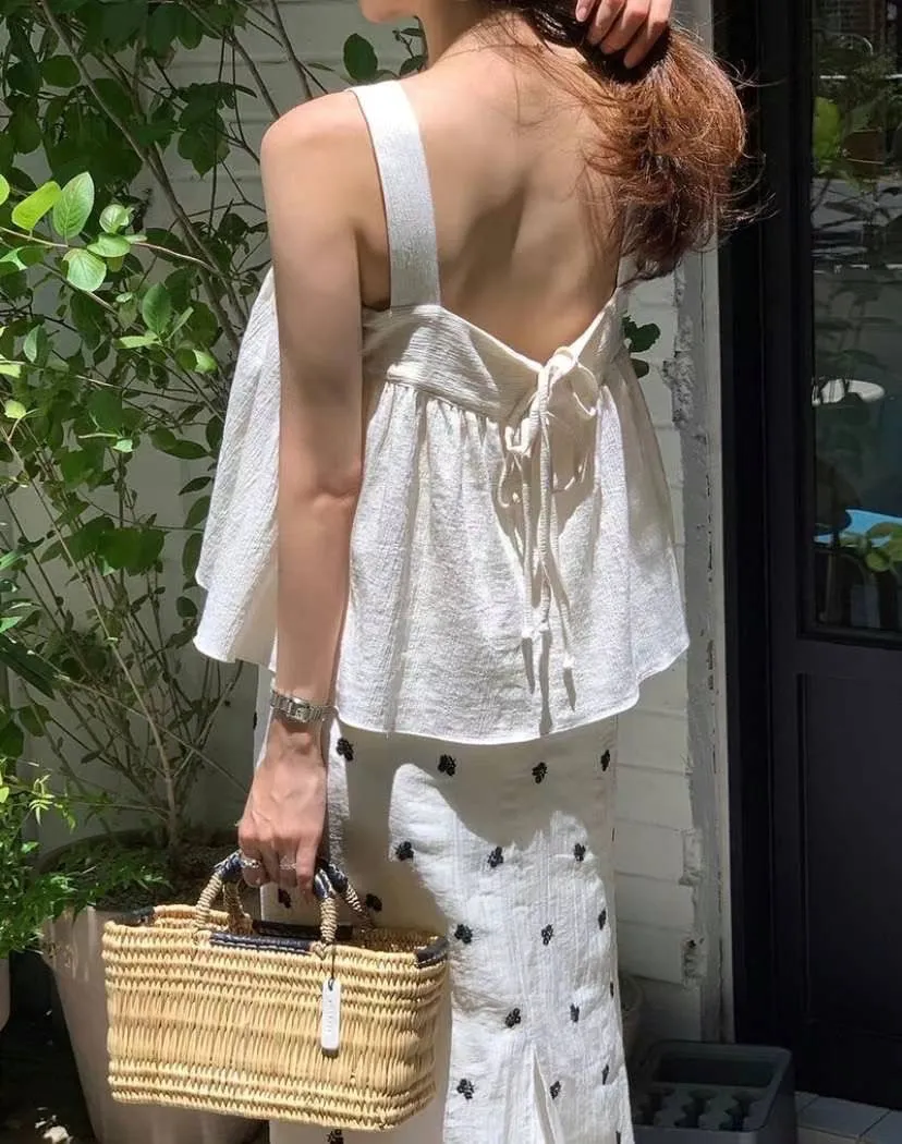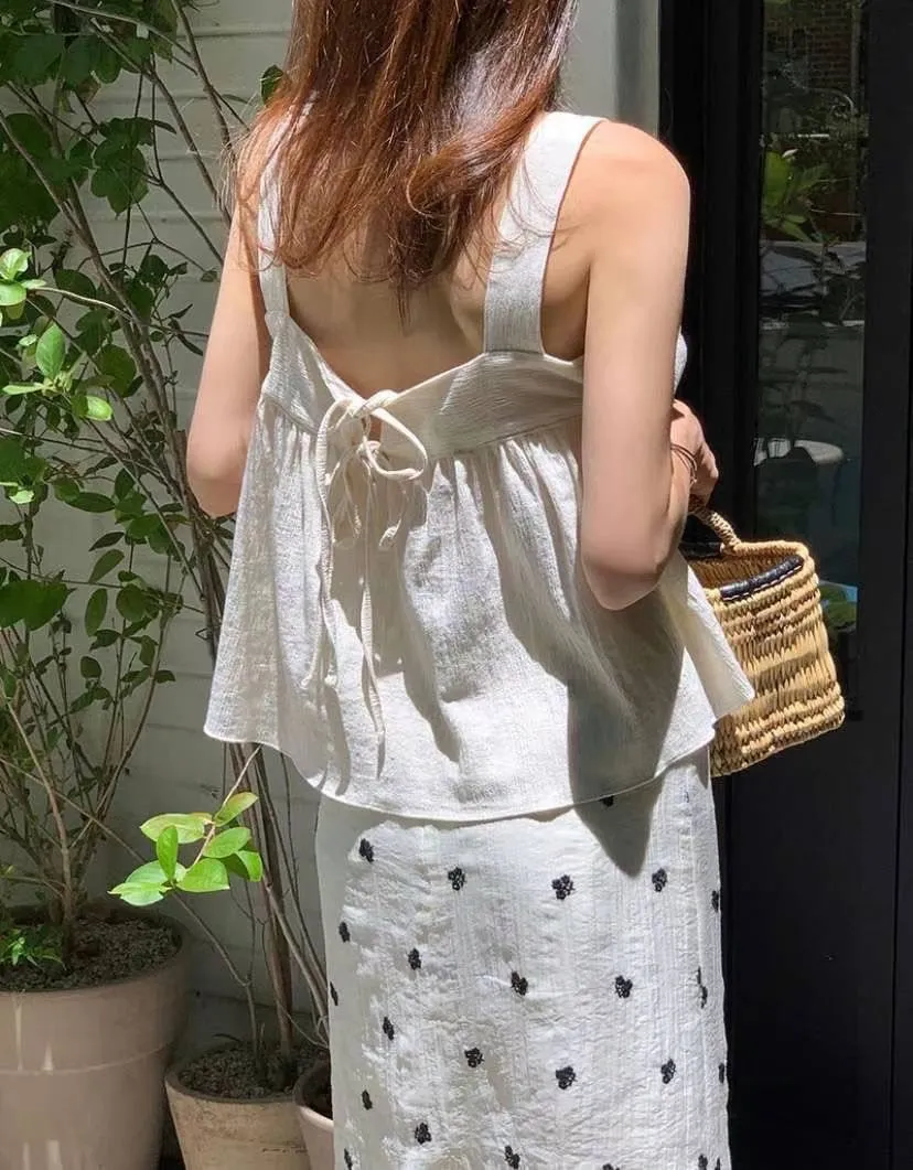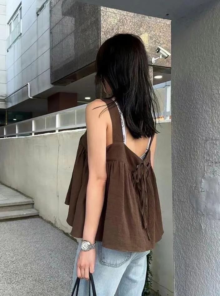 背後獨特綁帶設計,展現優雅線條與小心機,無論單穿或搭配外套都超有型。