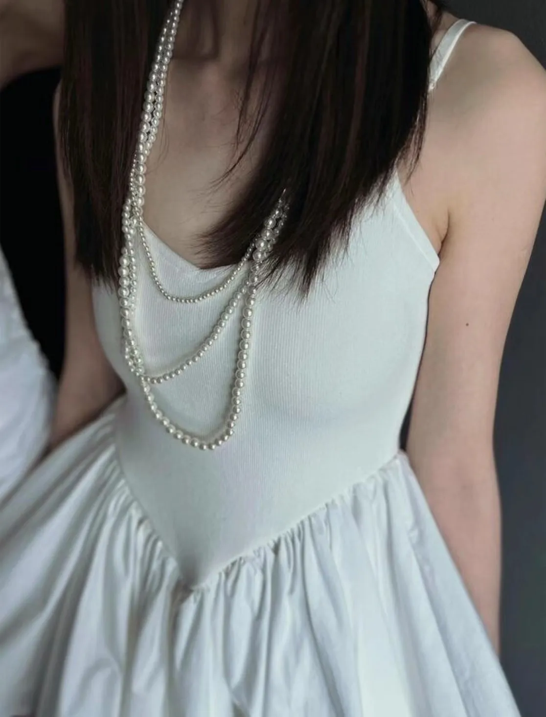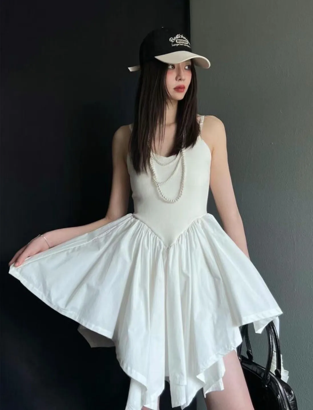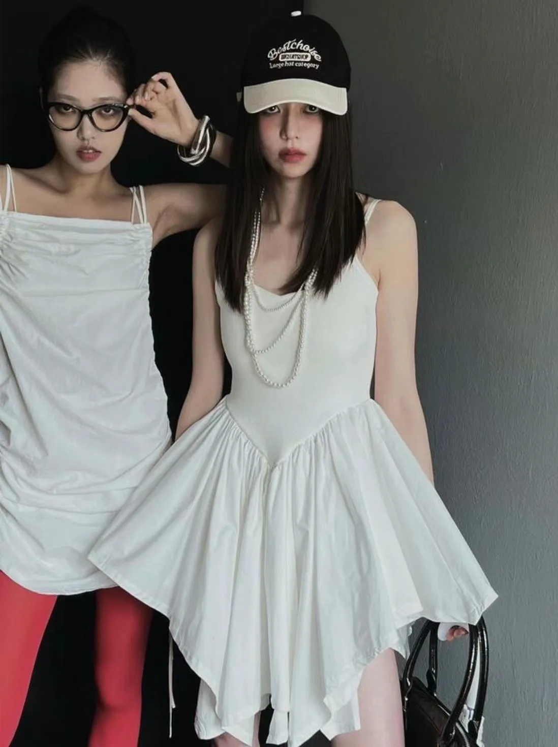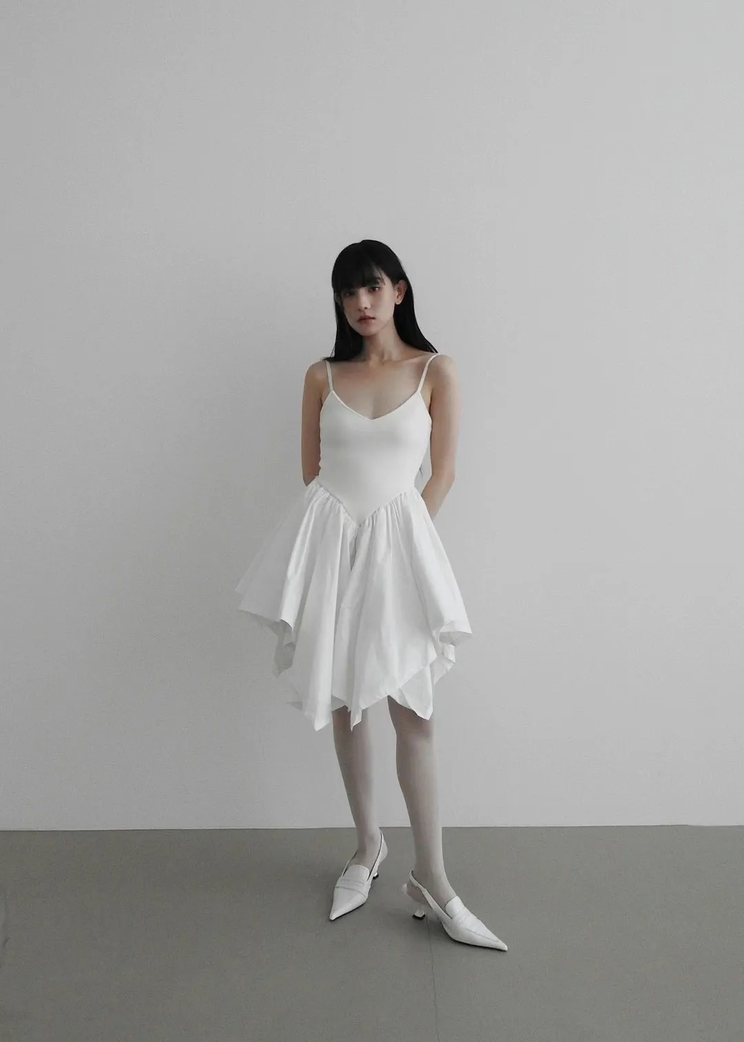 上身採用簡約細肩帶剪裁,修飾肩頸線條,搭配合身腰線設計,完美突顯身形比例。