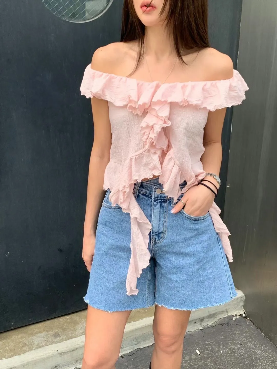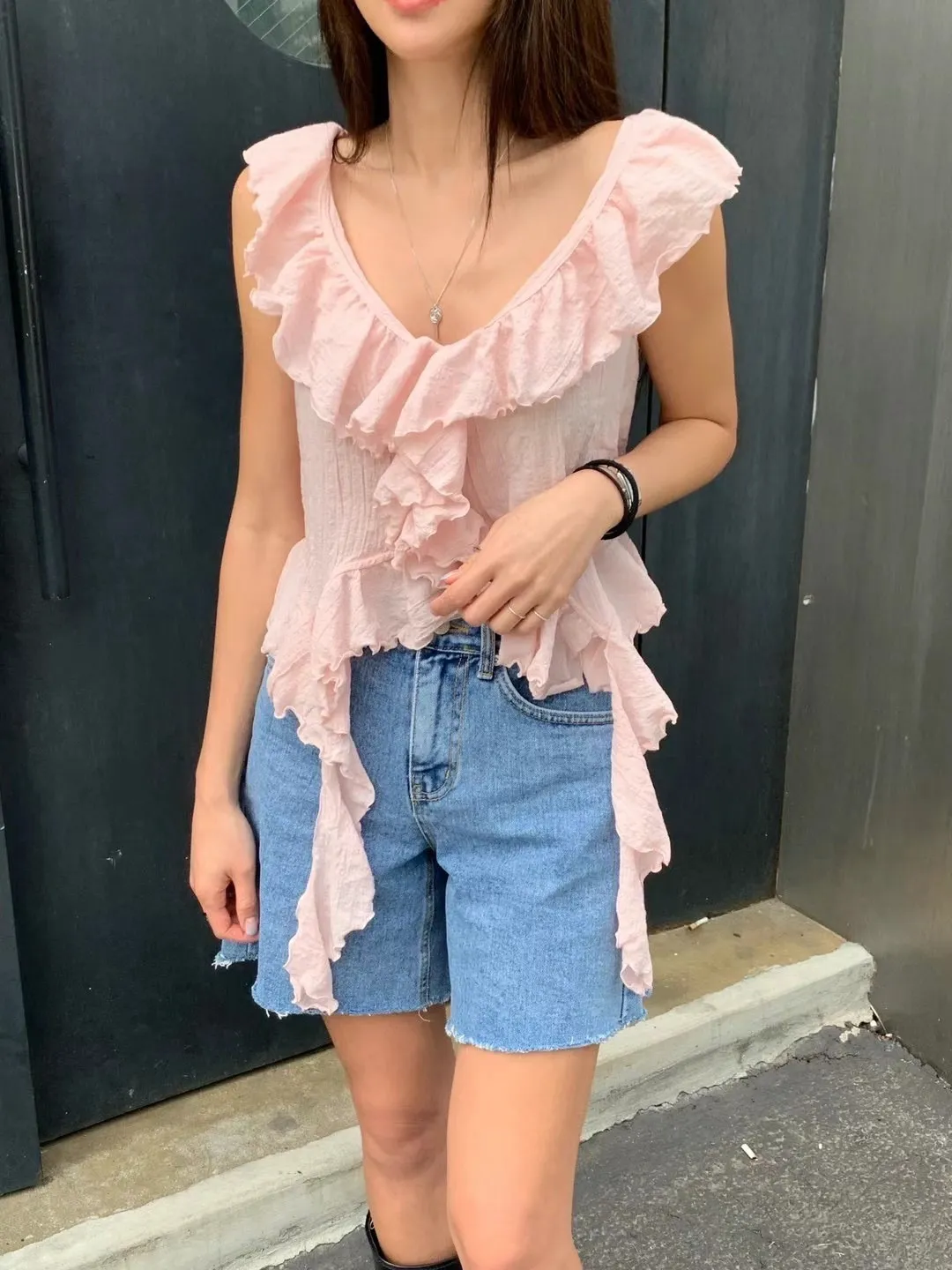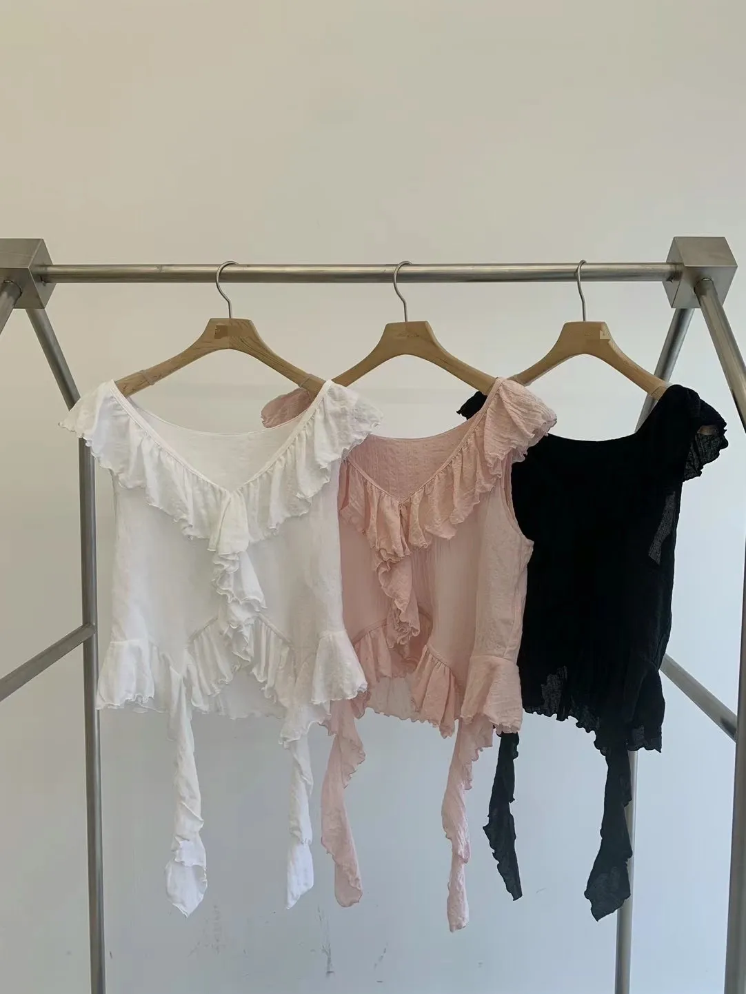 胸前和下擺都有層層荷葉邊,讓整體造型更有層次感與浪漫氛圍