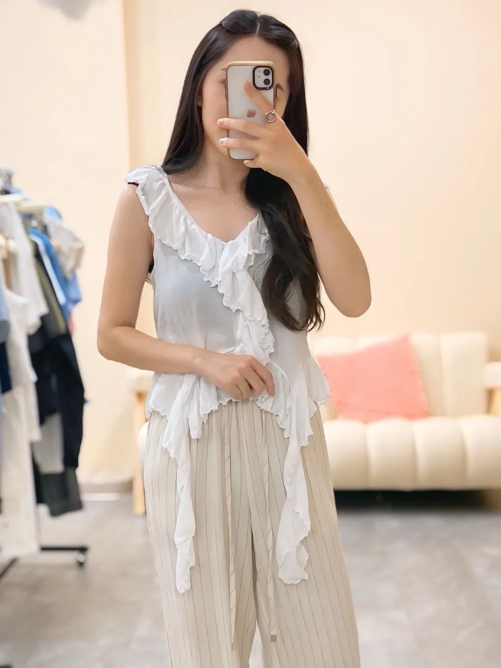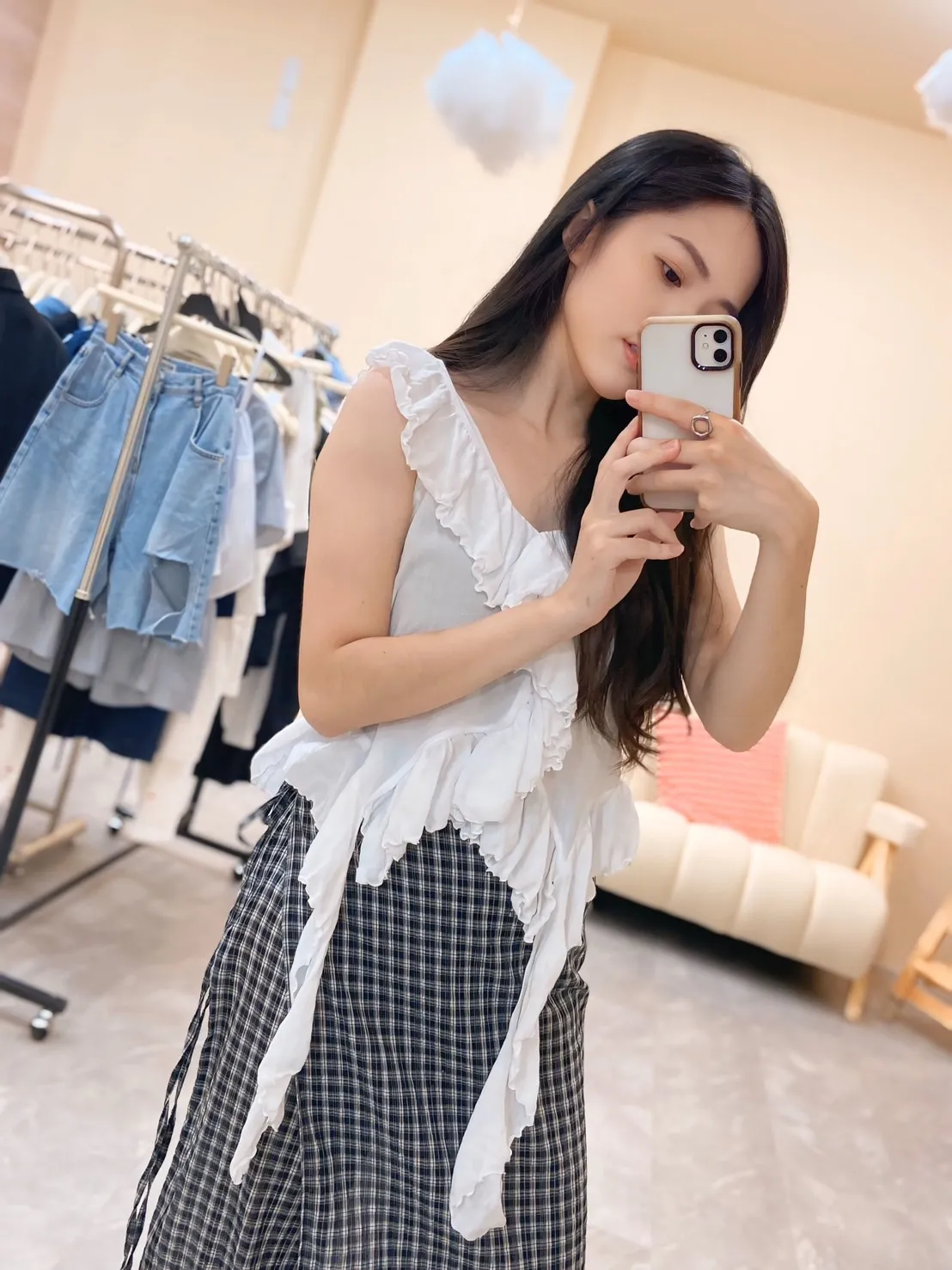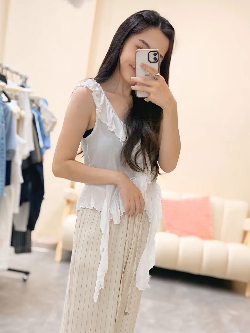 胸前和下擺都有層層荷葉邊,讓整體造型更有層次感與浪漫氛圍