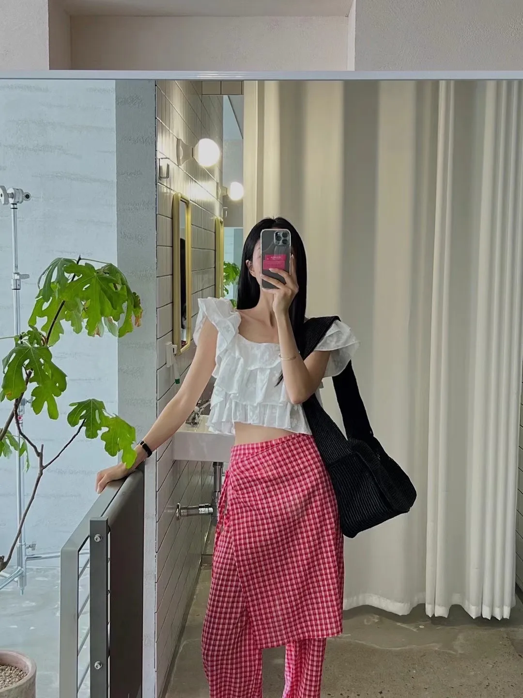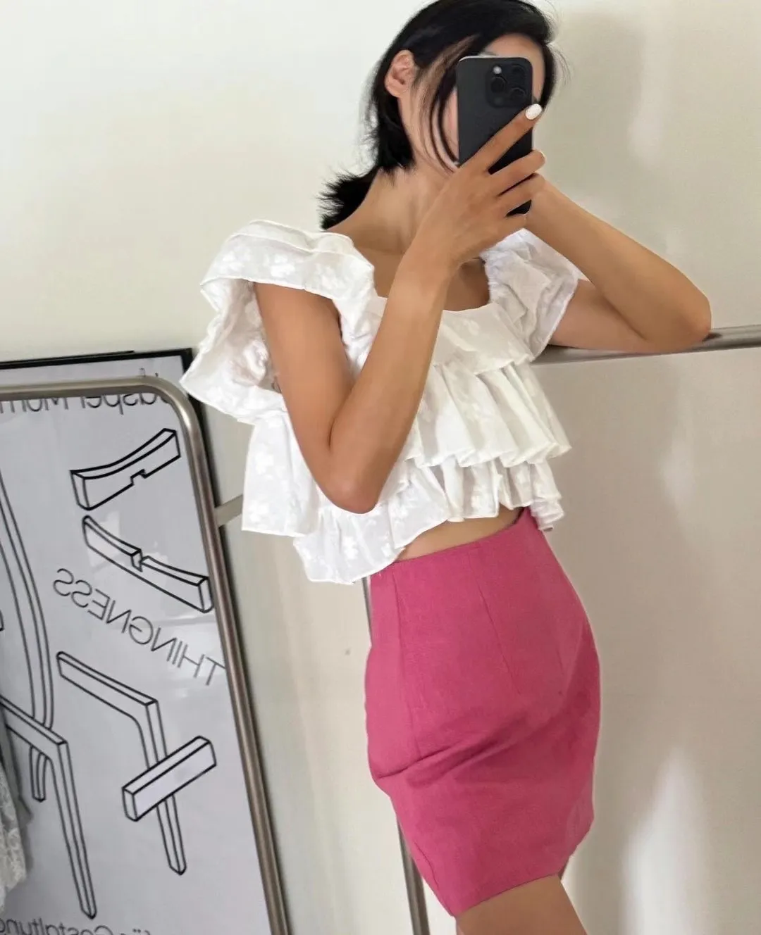 寬鬆短版剪裁,不僅修飾身形,也能輕鬆搭配高腰裙或牛仔褲,展現夏日清新感。