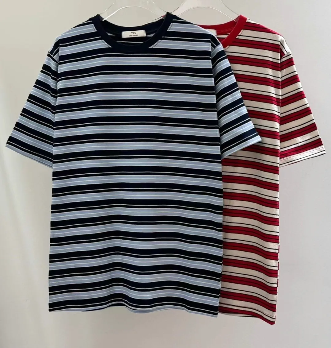 撞色復古條紋純棉T恤上衣❤️💙