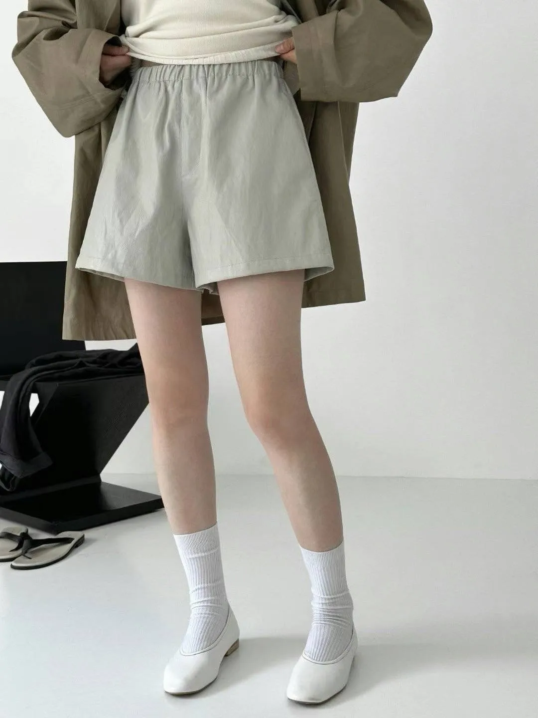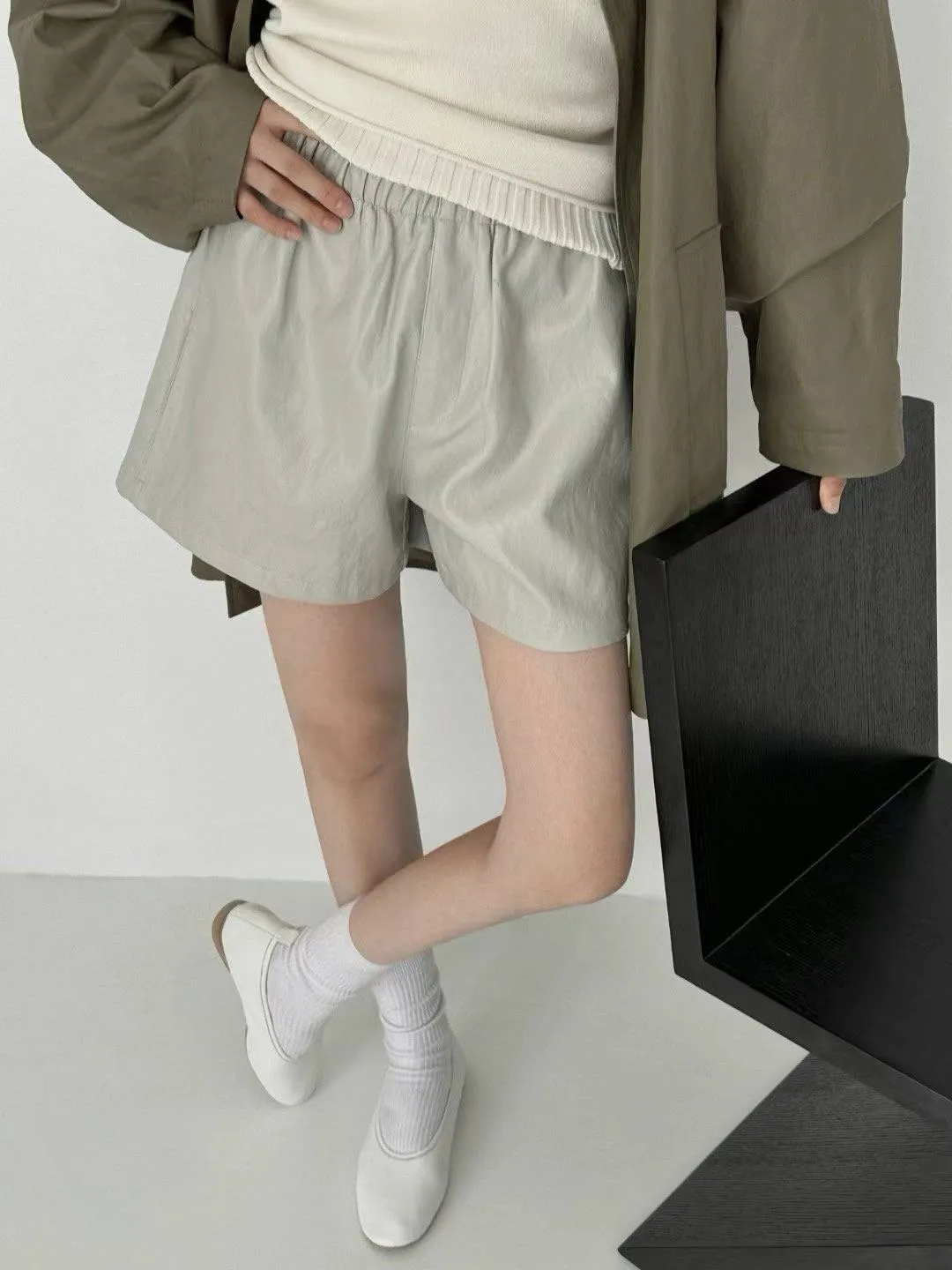 霧面 皮質感好鬆緊腰 腰看起來更細