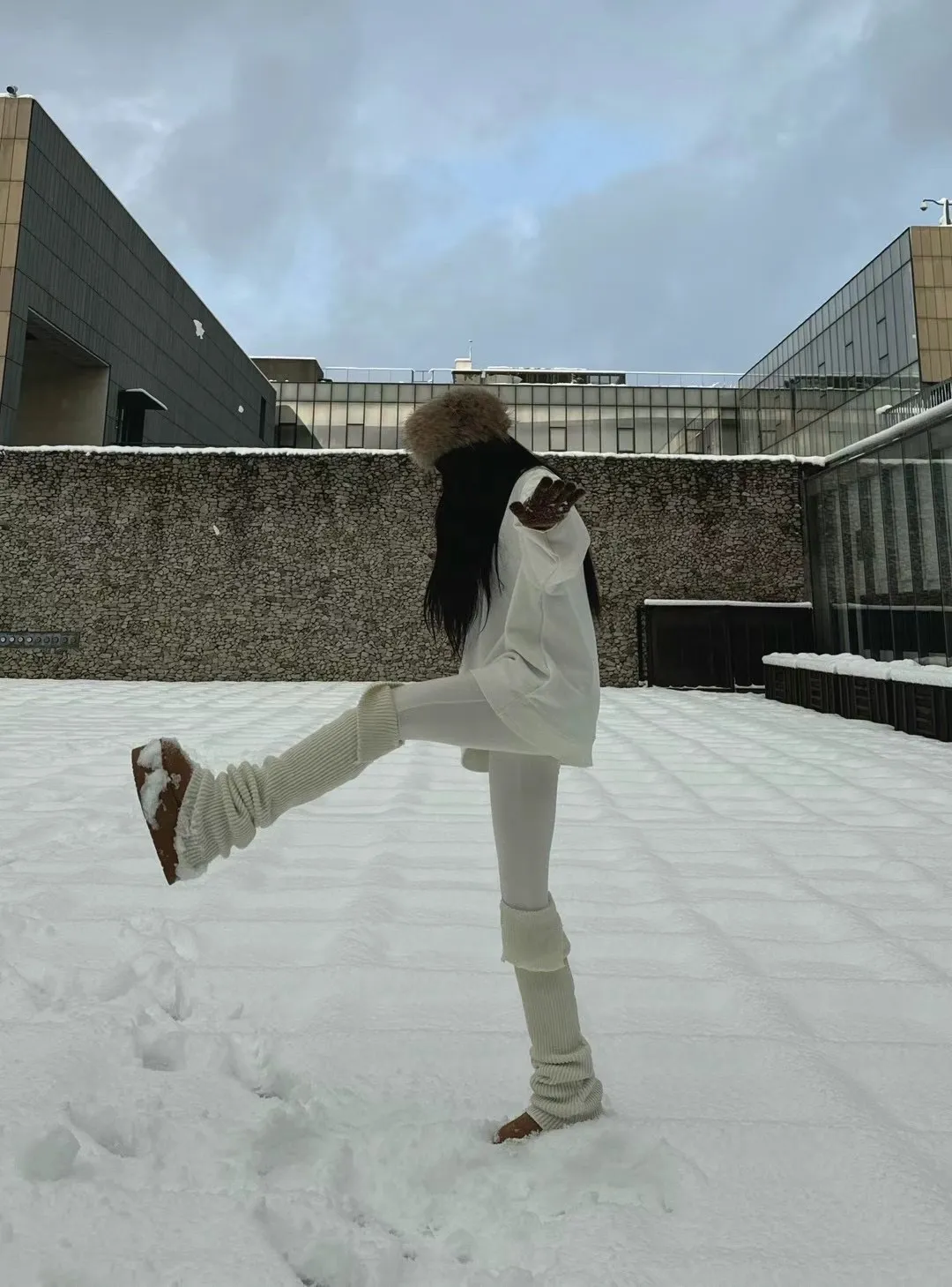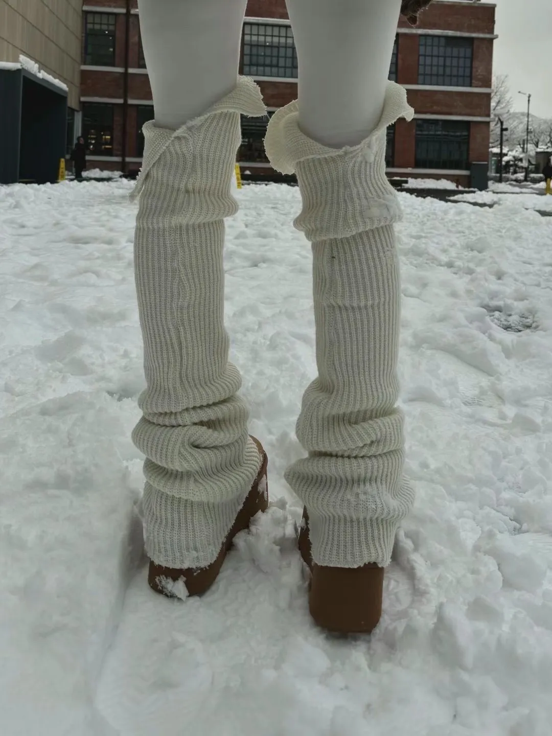 外面做針織襪套拼接設計