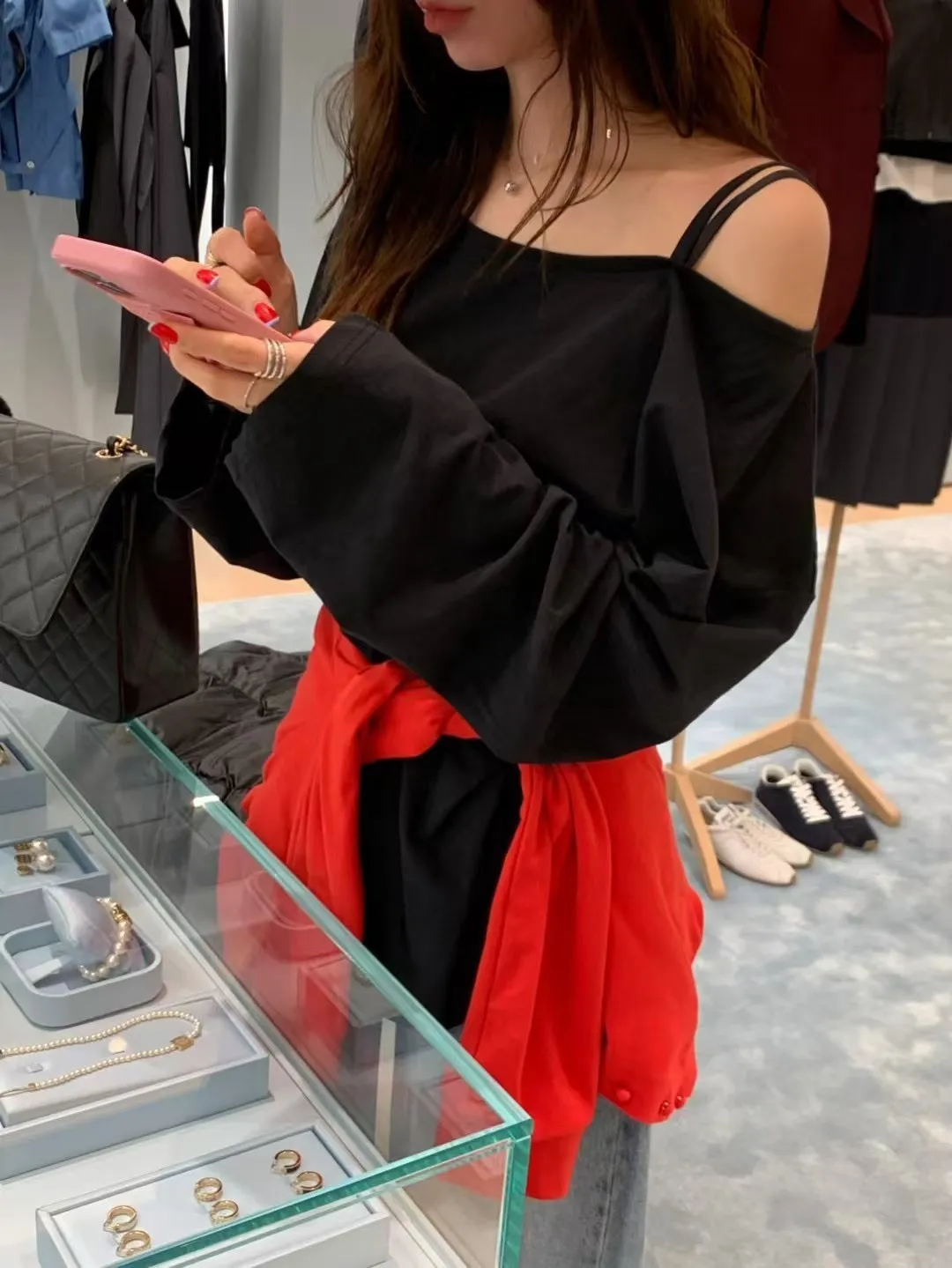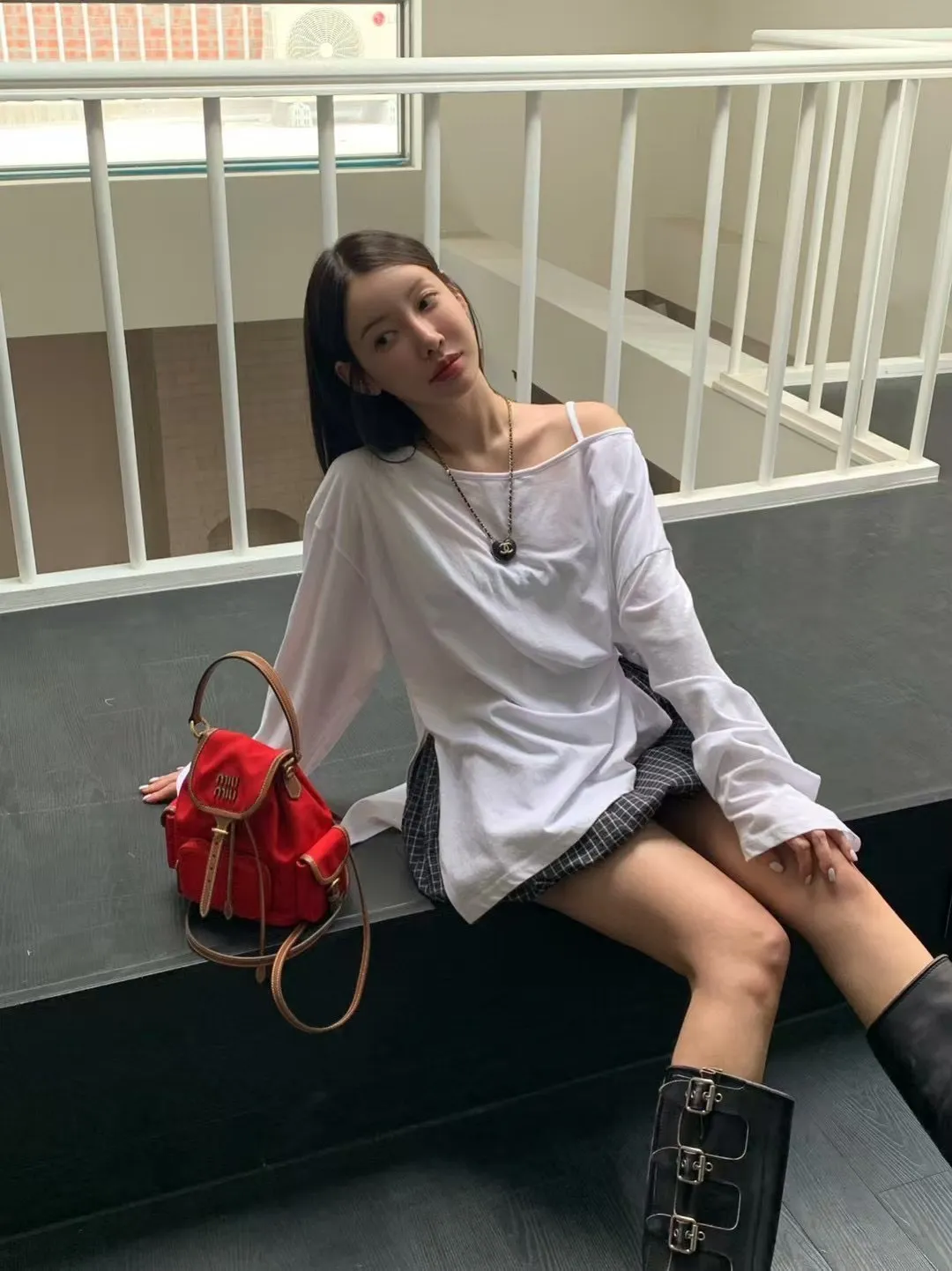 微露肩剪裁+落肩袖設計,穿出慵懶感不費力