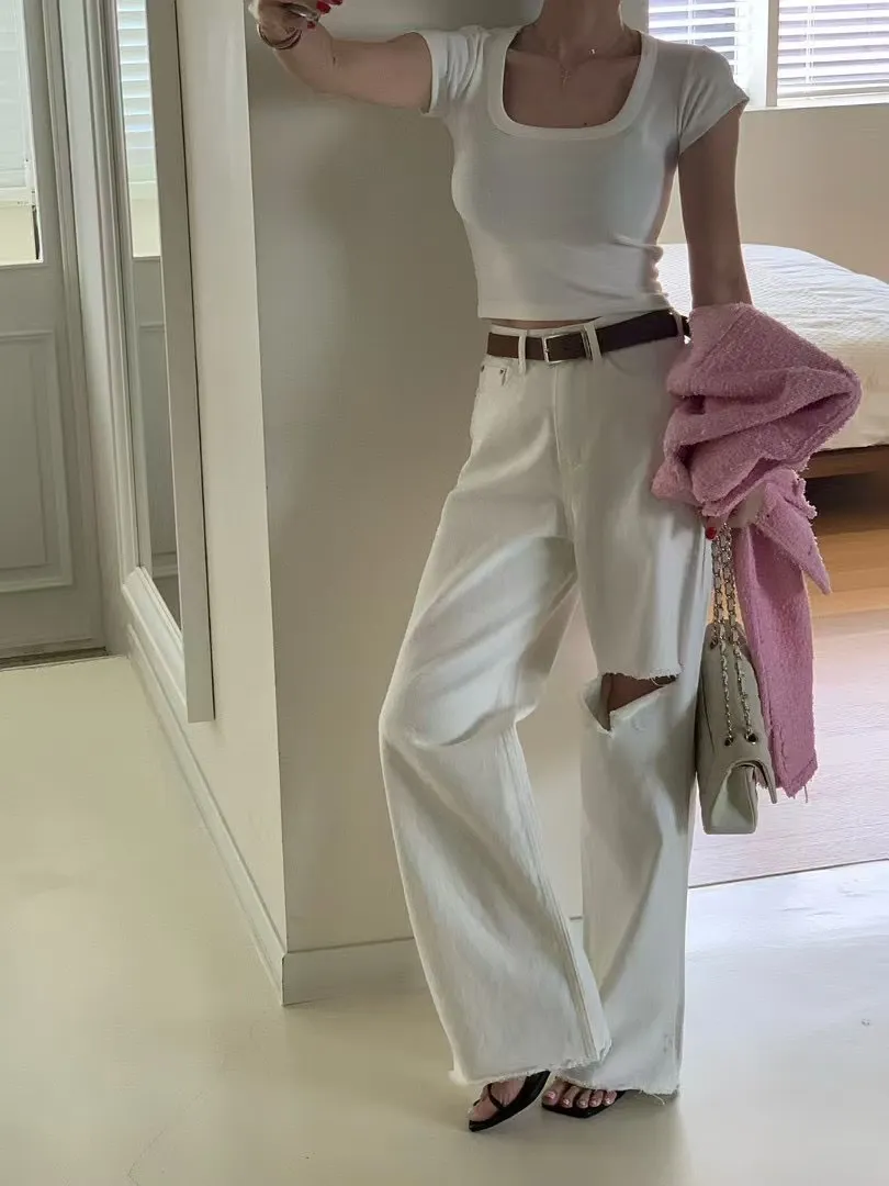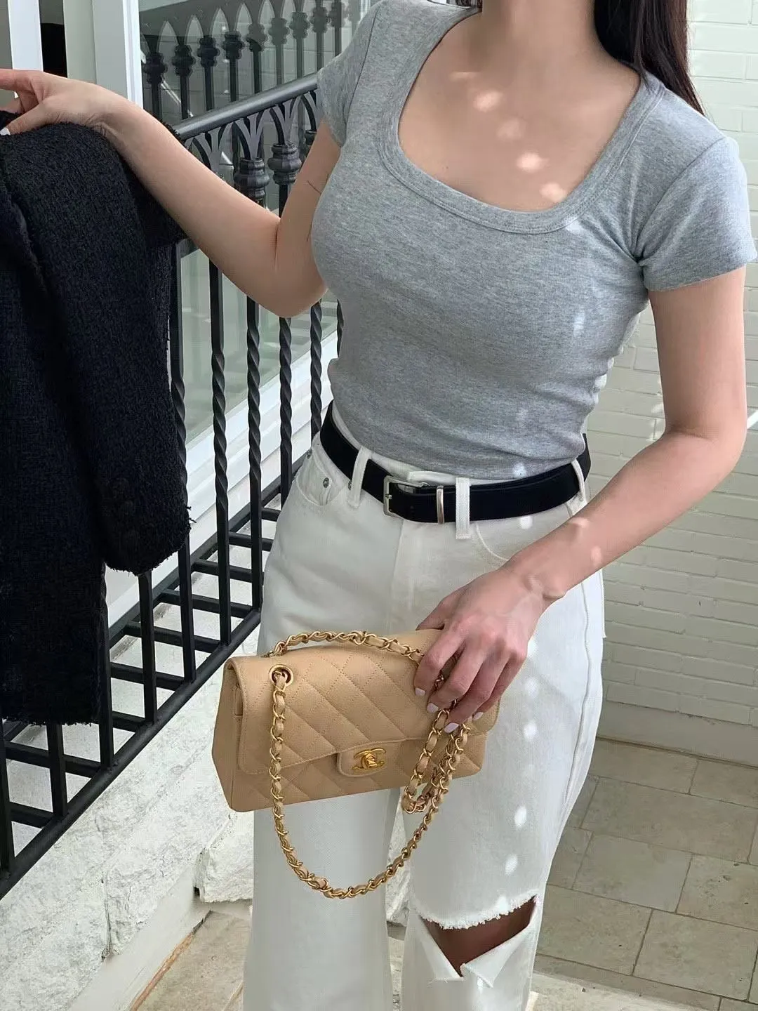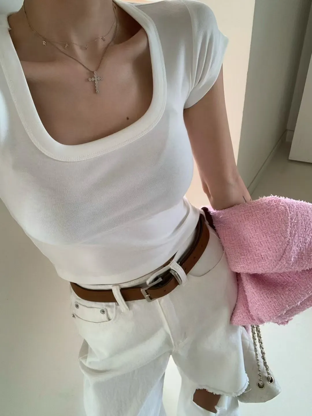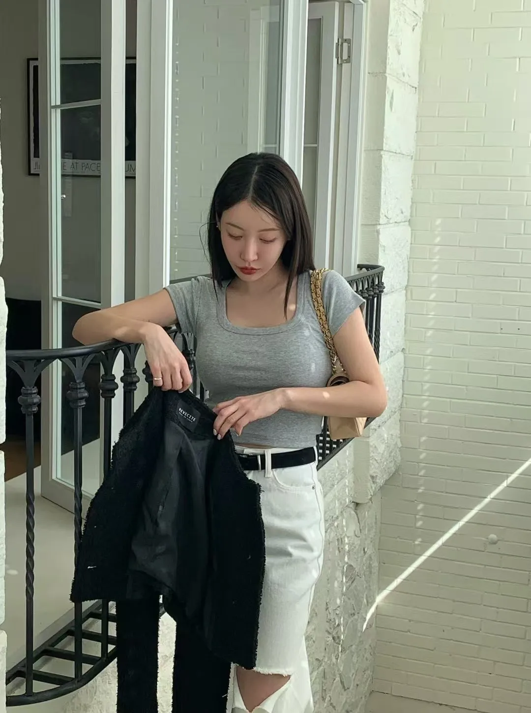 方領設計+微短版剪裁,穿上瞬間有腰身,