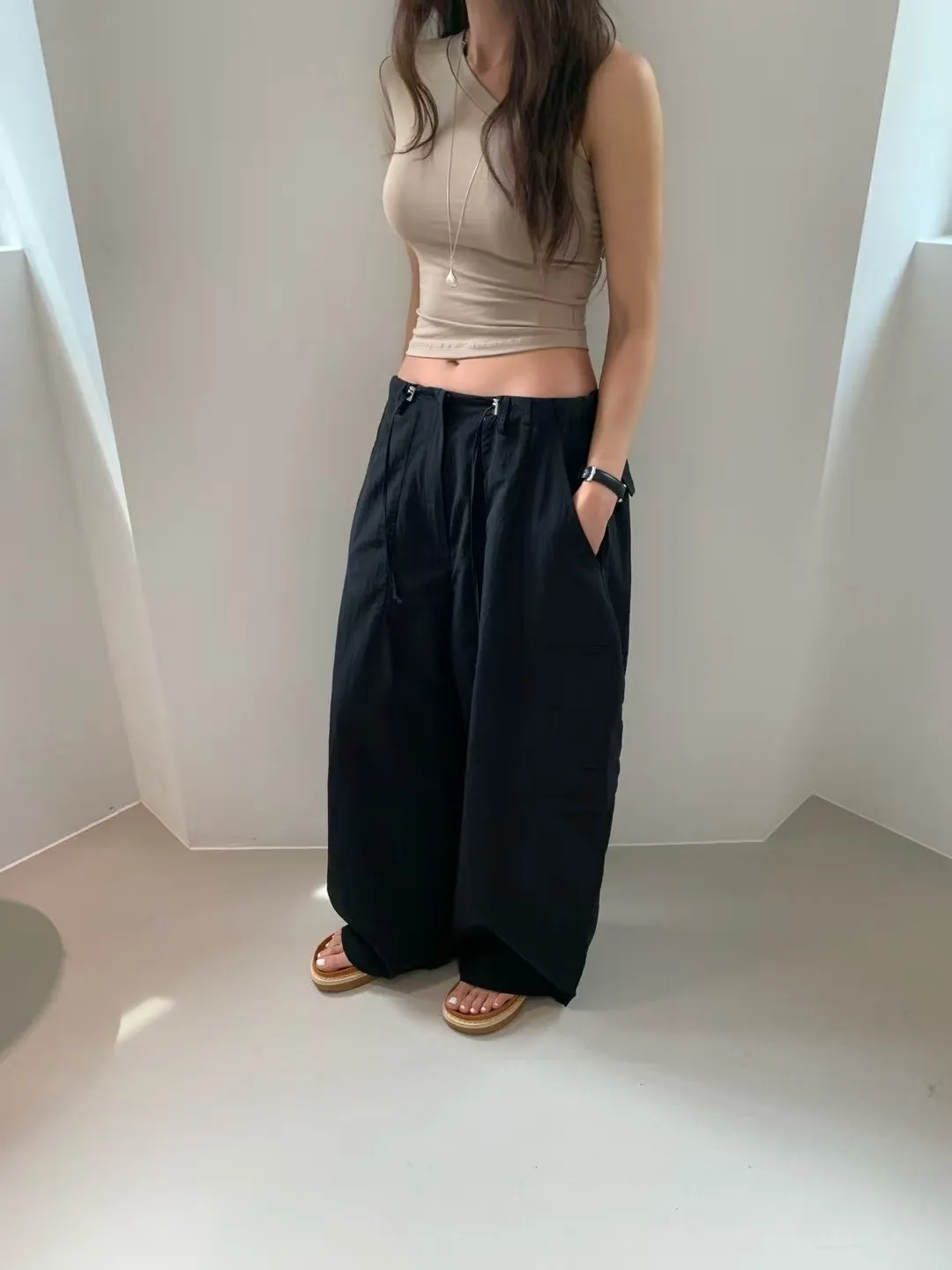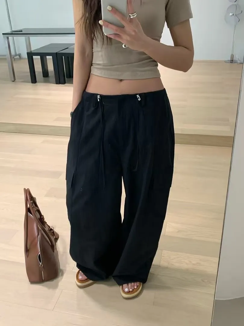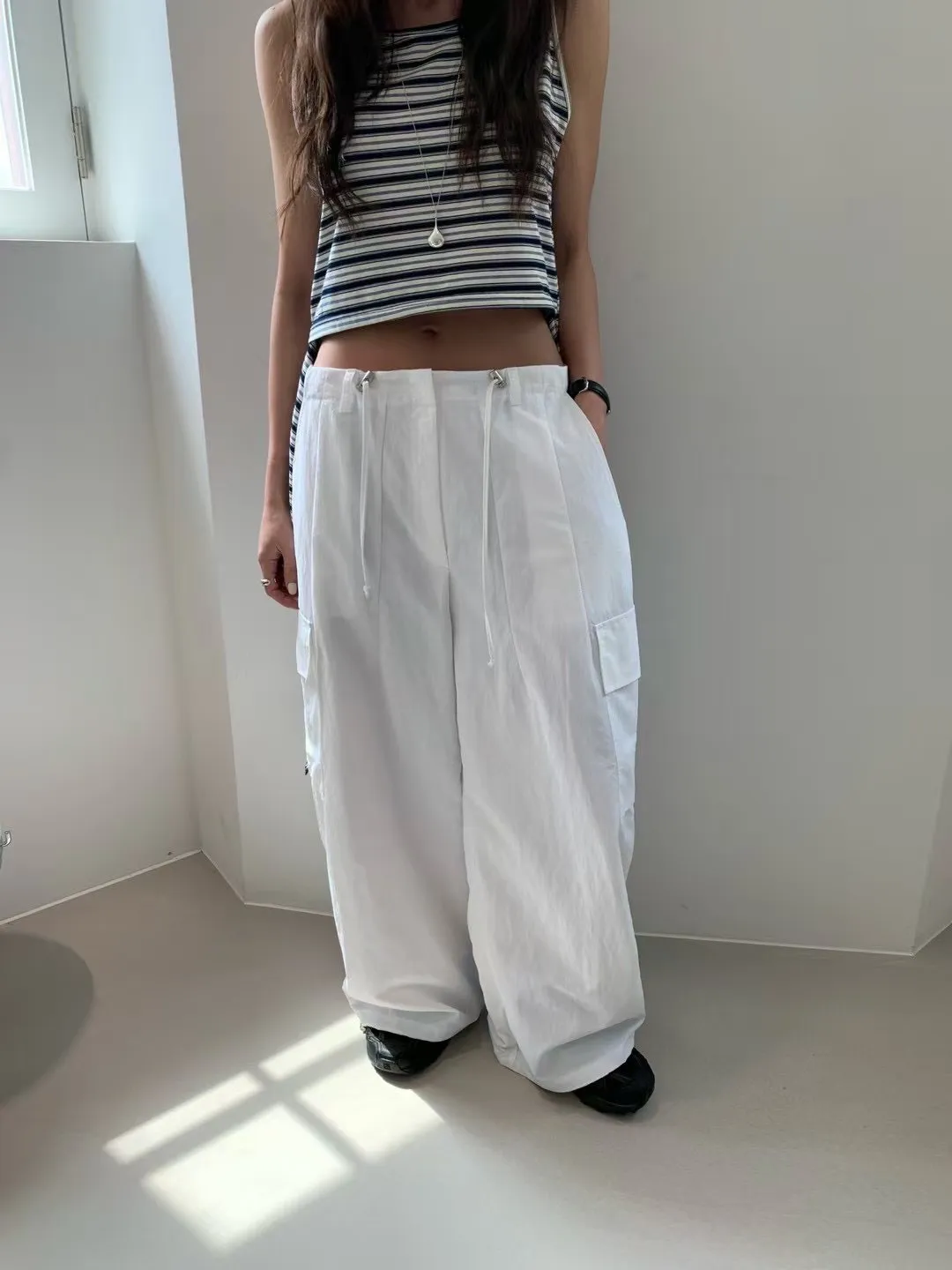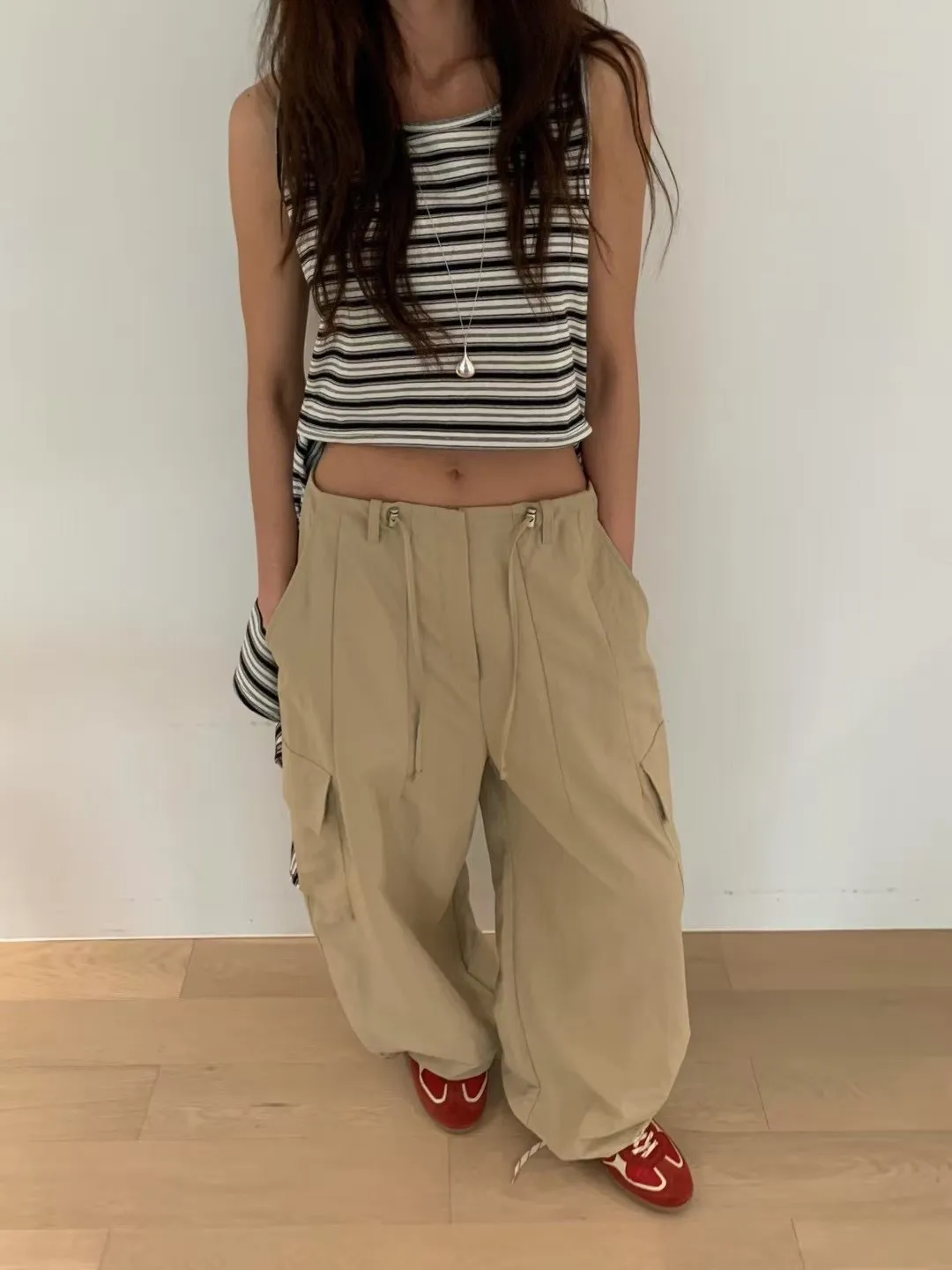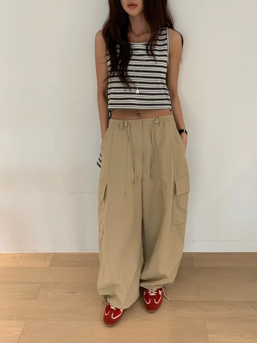 寬版剪裁修飾腿型、大口袋增添率性細節,還能綁抽繩調整腰圍,不管搭短版背心、T恤還是襯衫,都超有型!