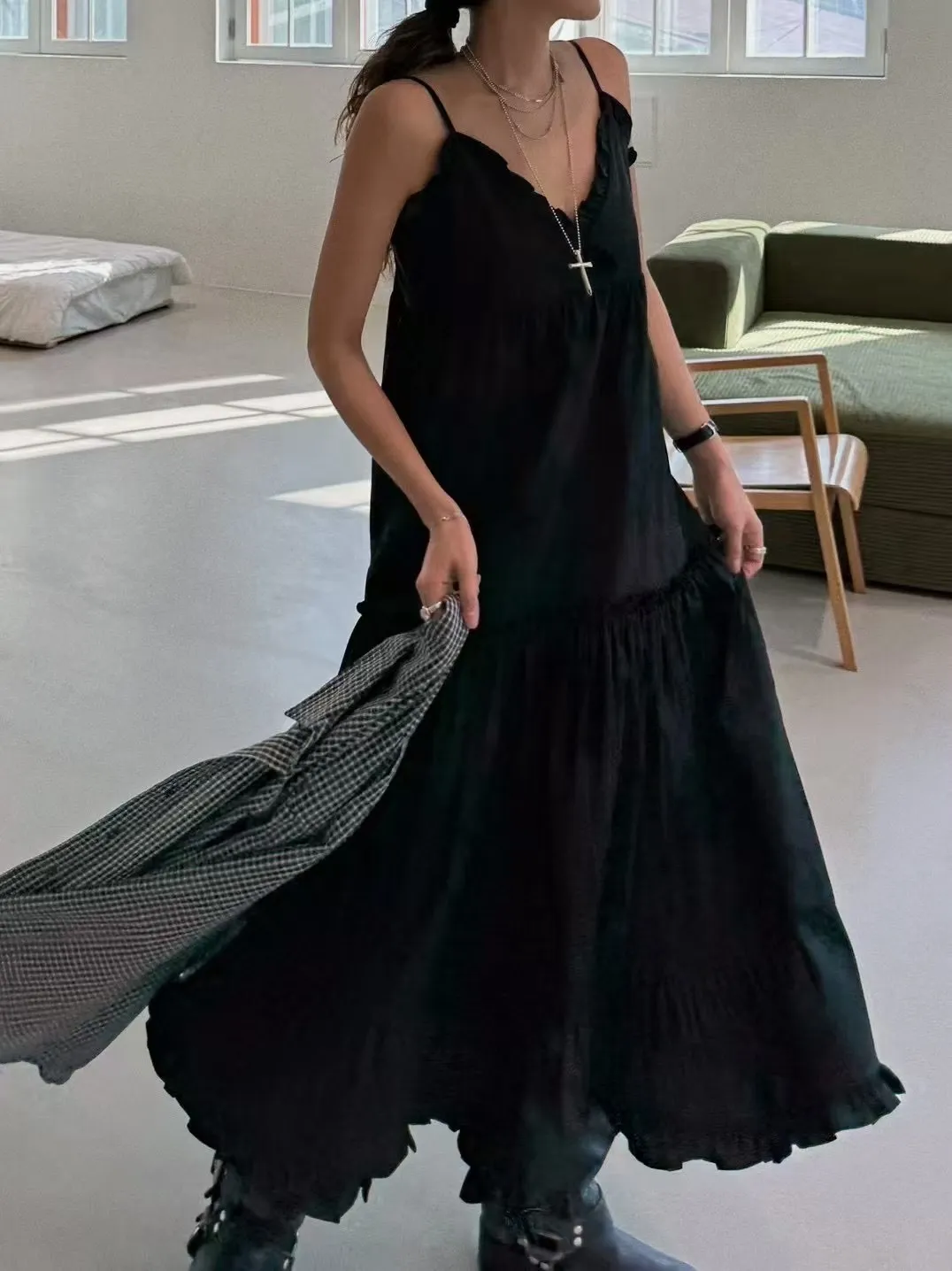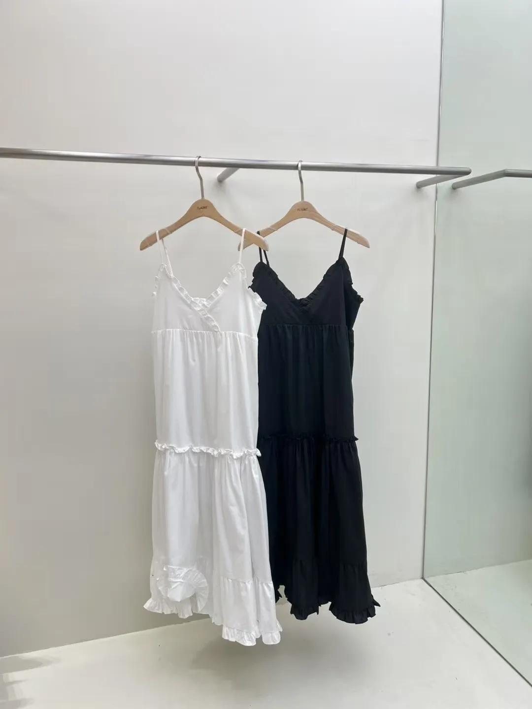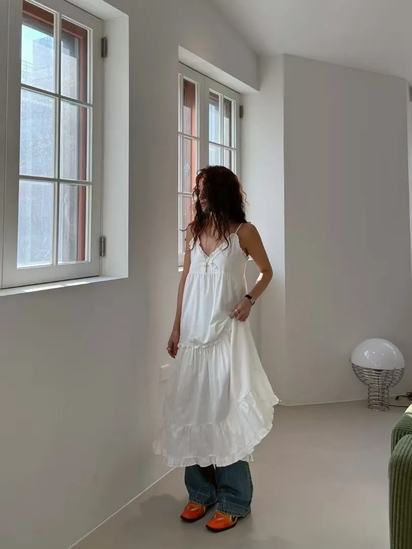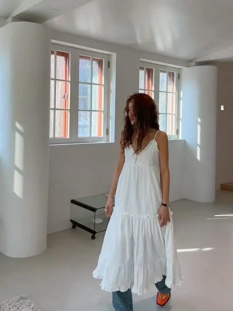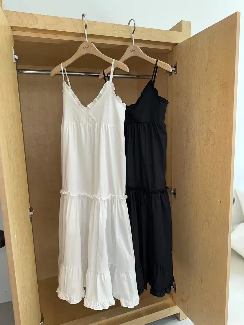 這款法式蕾絲細肩帶洋裝,柔軟親膚的面料搭配細緻荷葉邊設計,無論是純白還是經典黑都能展現妳的優雅氣質。