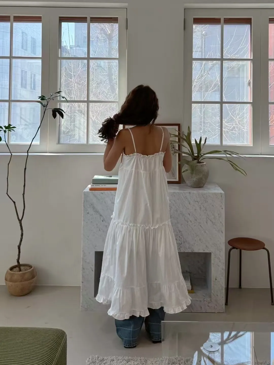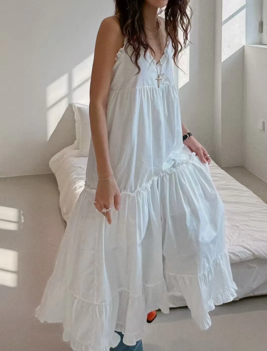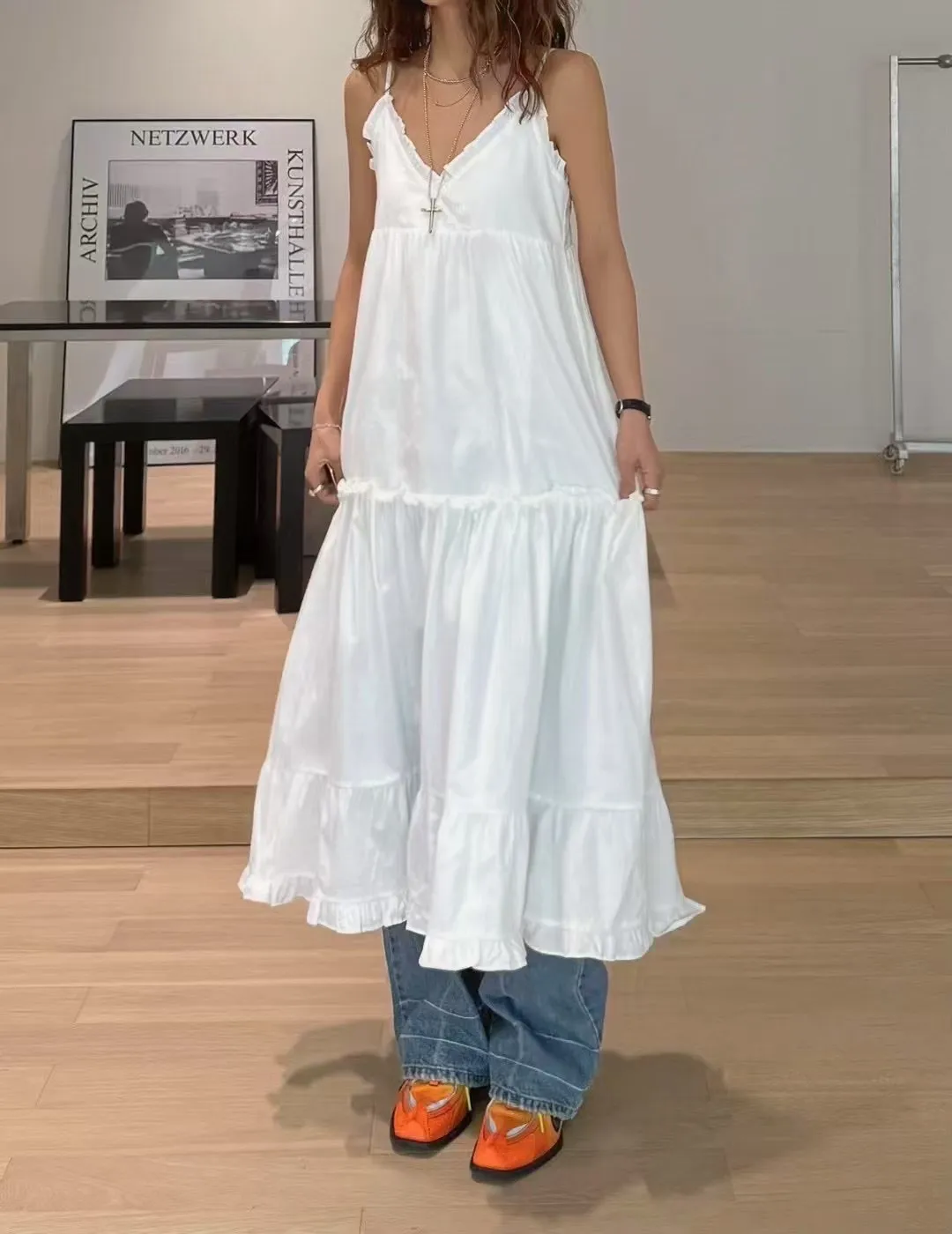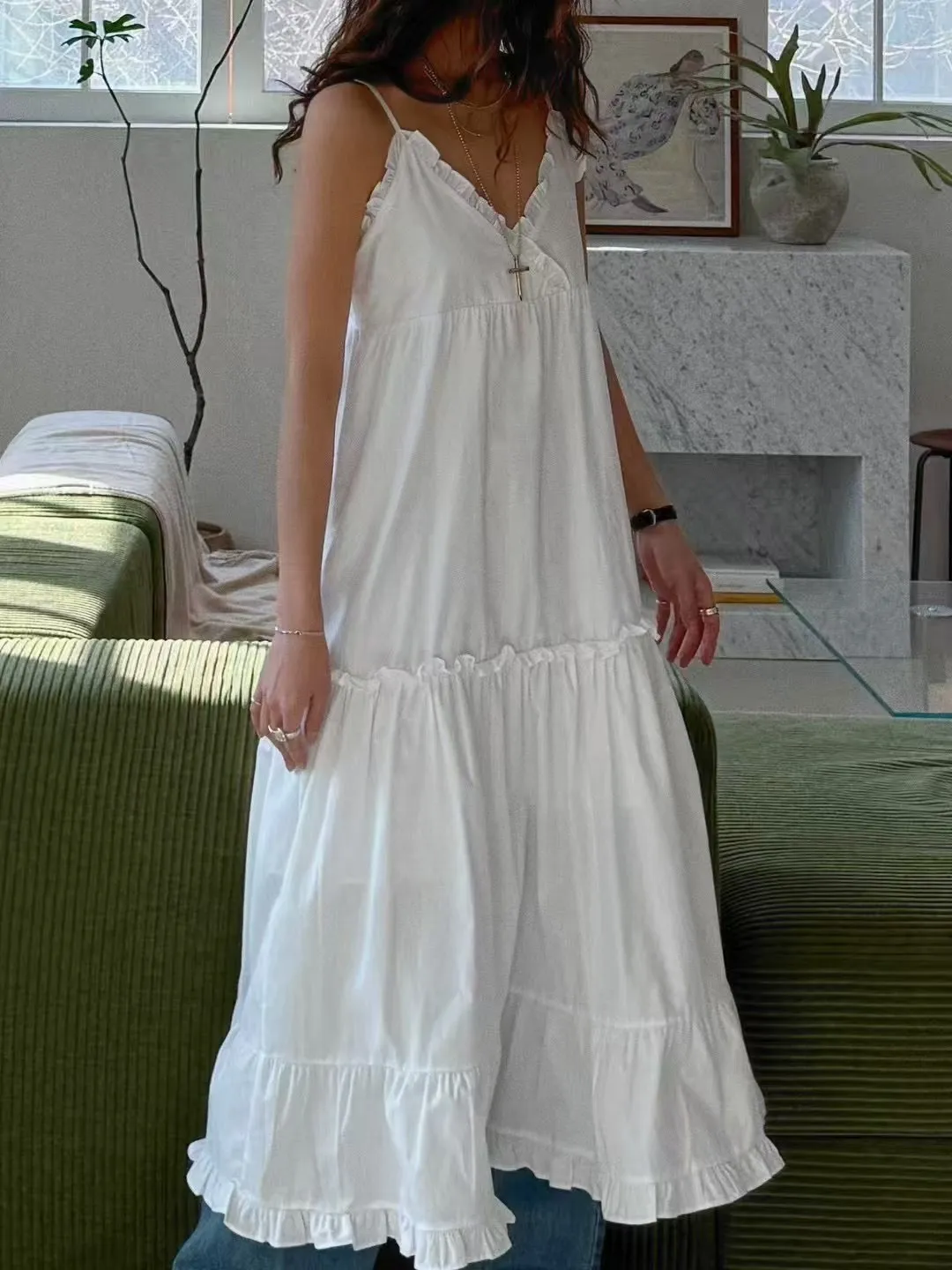 這款法式蕾絲細肩帶洋裝,柔軟親膚的面料搭配細緻荷葉邊設計,無論是純白還是經典黑都能展現妳的優雅氣質。