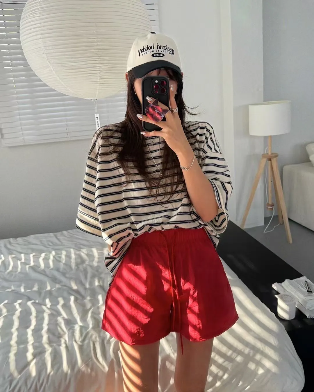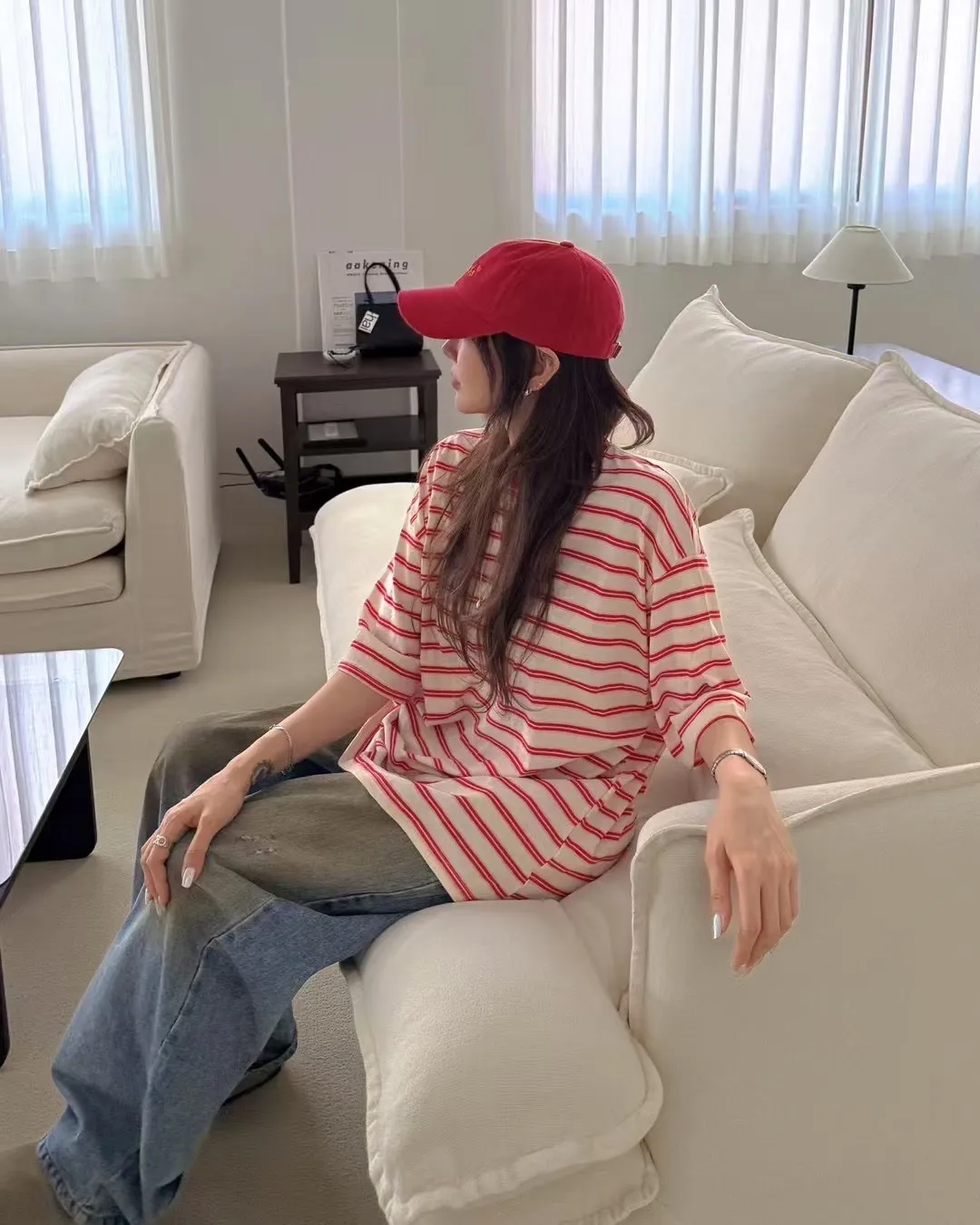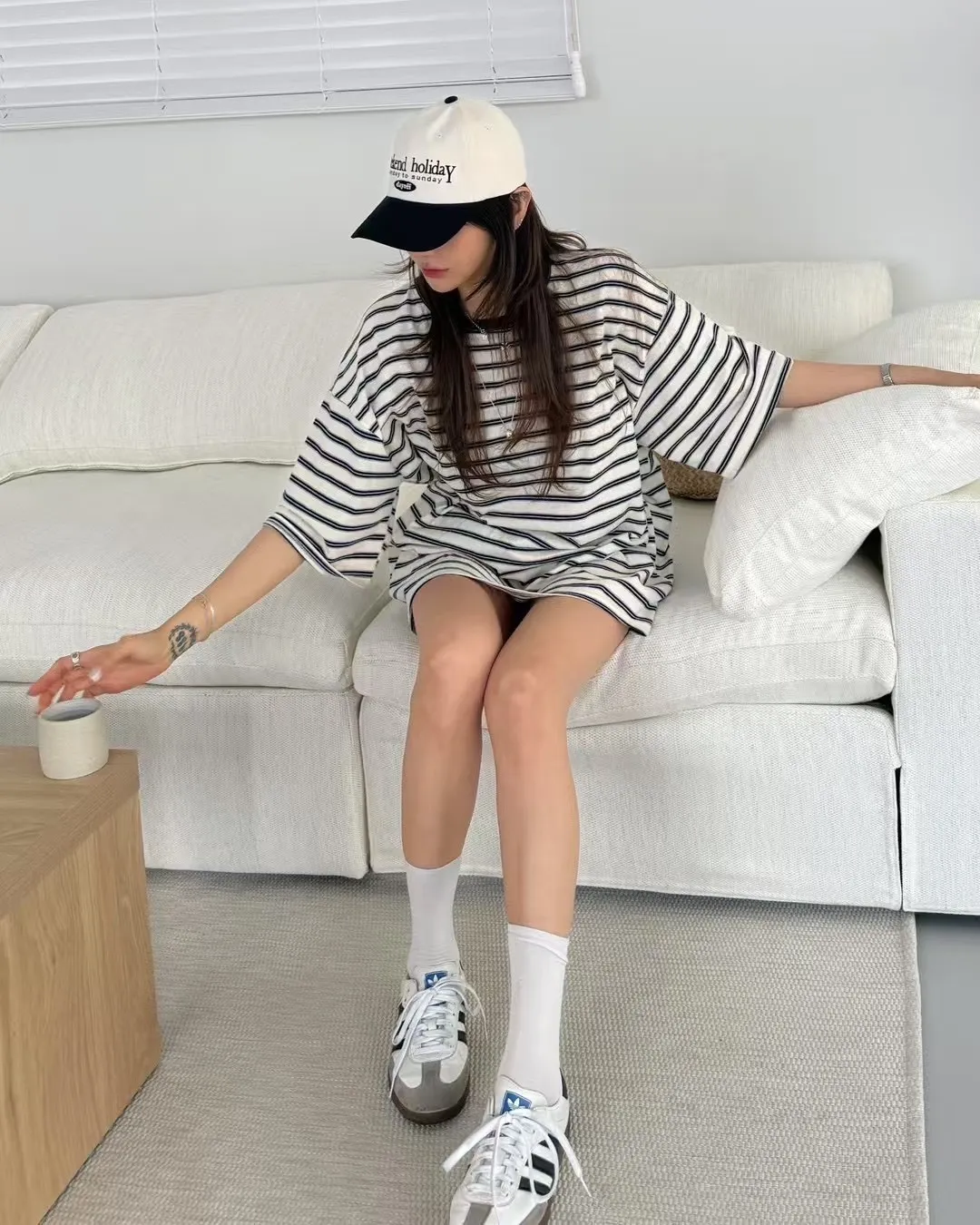 落肩版型不挑身形,寬鬆有型,配短褲或牛仔褲都超好看~