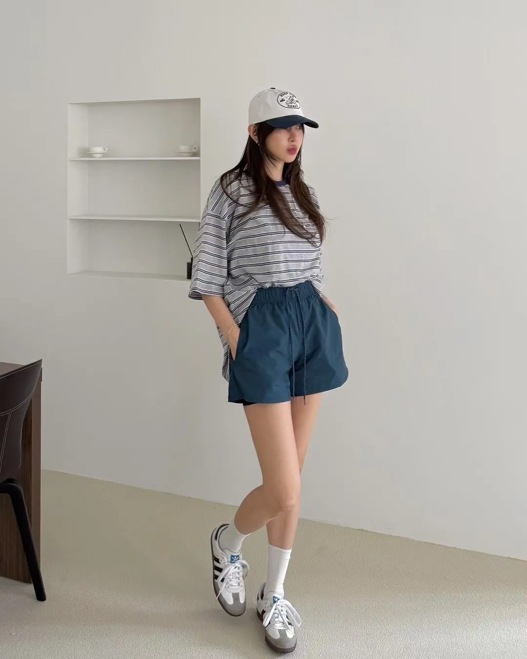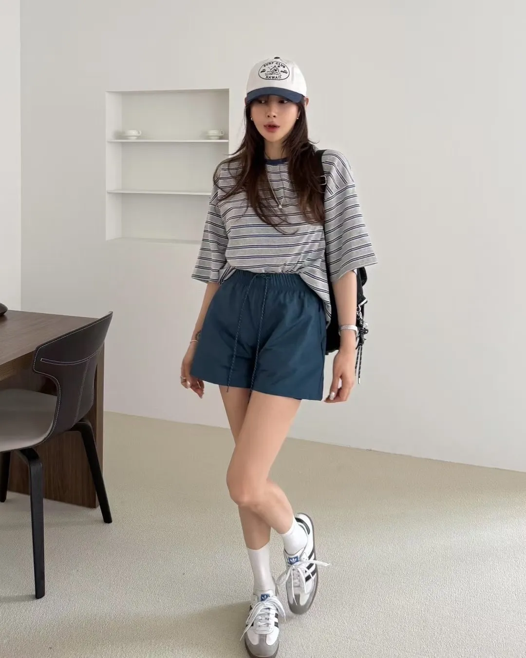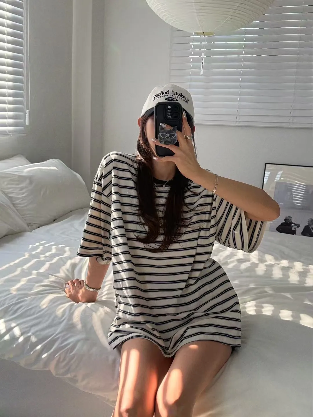 落肩版型不挑身形,寬鬆有型,配短褲或牛仔褲都超好看~
