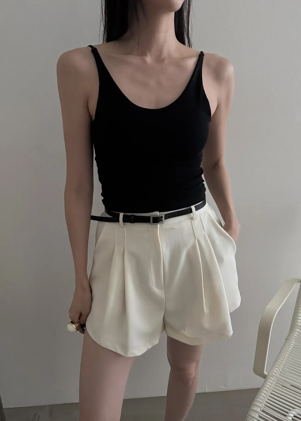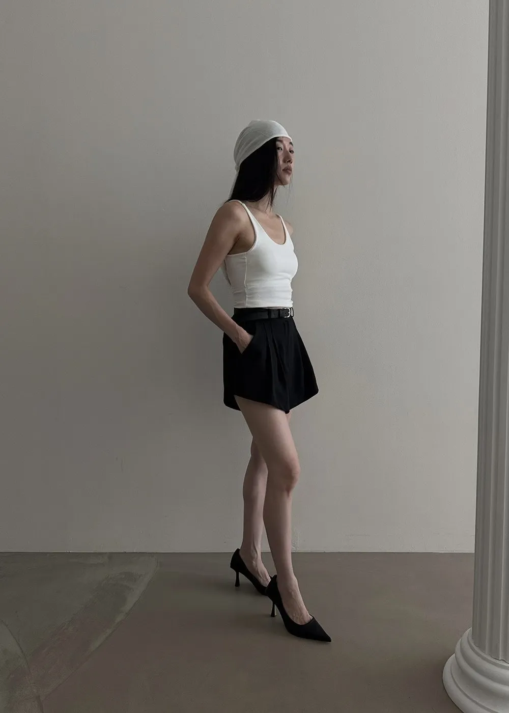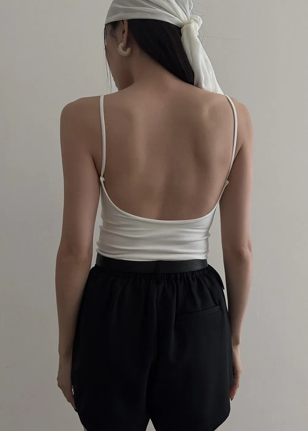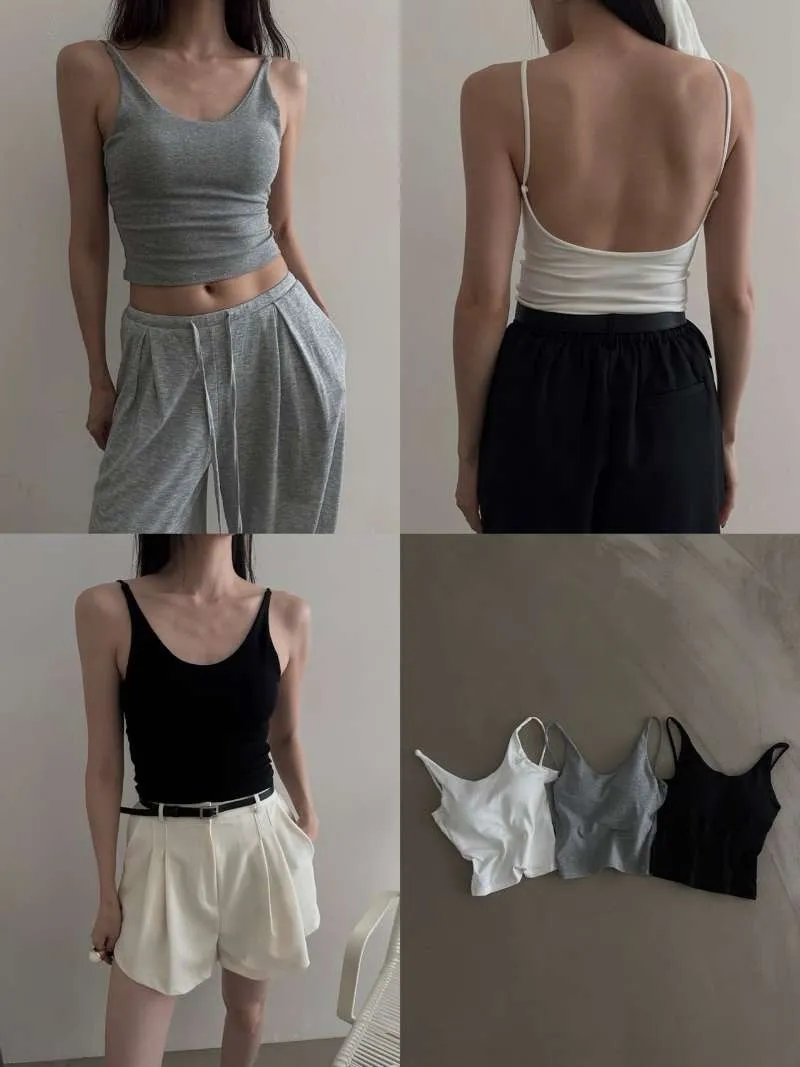 經典黑、灰、白三色,隨心混搭各種造型,細肩設計展現鎖骨線條。重點挖背設計展露小性感。