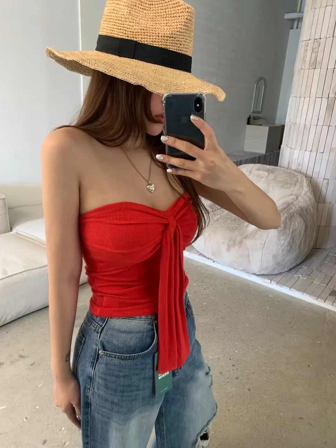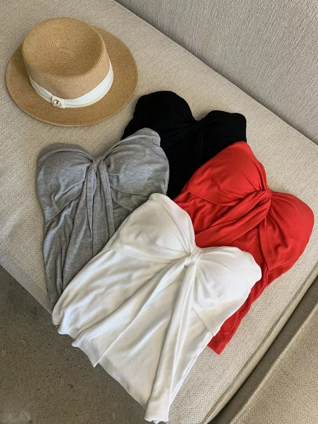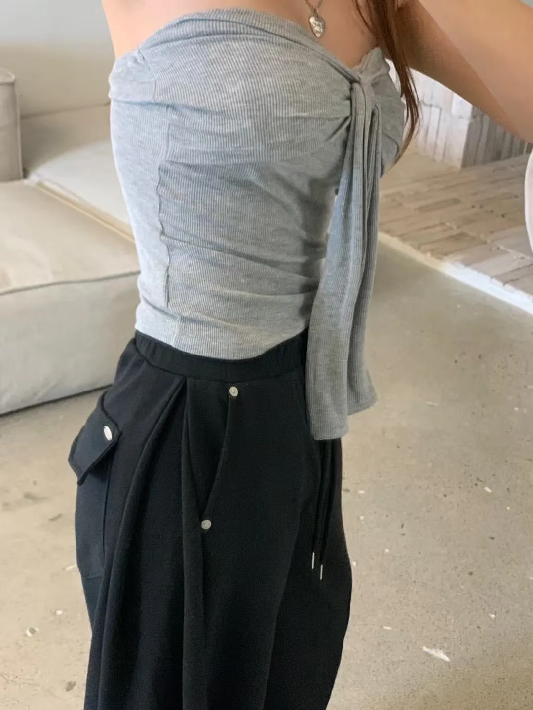 一字領設計修飾鎖骨與肩頸,正中心的打結細節增添層次與女人味。
