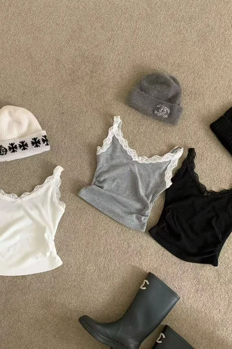 柔軟棉料+細肩蕾絲線條,單穿清爽可愛,外搭襯衫又多一層溫柔氛圍。