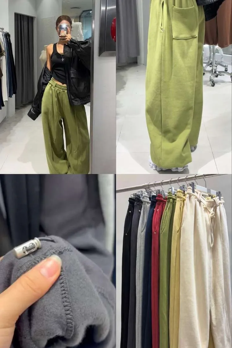 想要舒服又有型,一條慵懶棉感寬褲就搞定。高腰鬆緊+綁帶細節,每色都超耐看,穿去上班、約會、買咖啡都很OK。