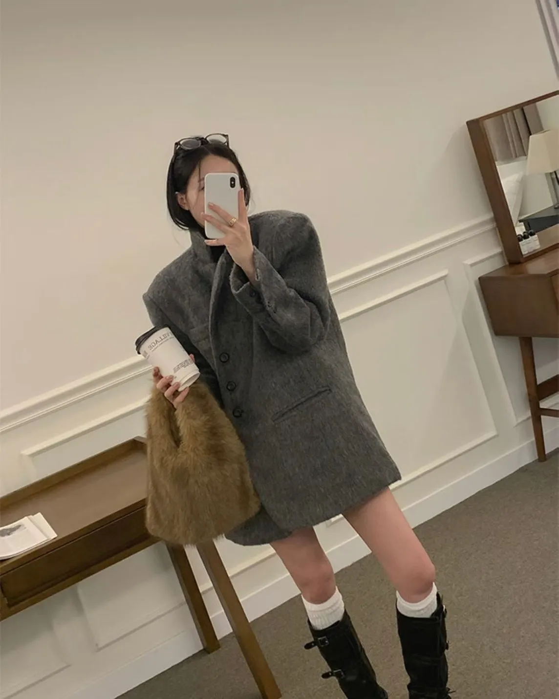 ✔ 微寬鬆剪裁,內搭厚針織也不顯臃腫