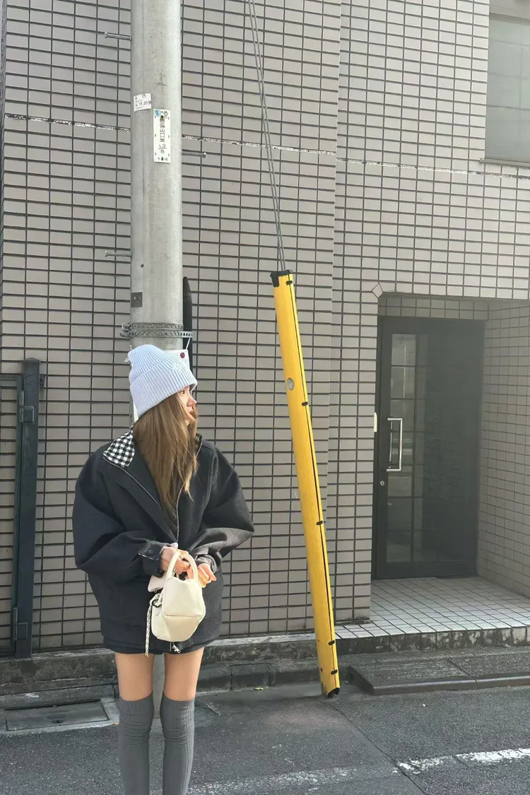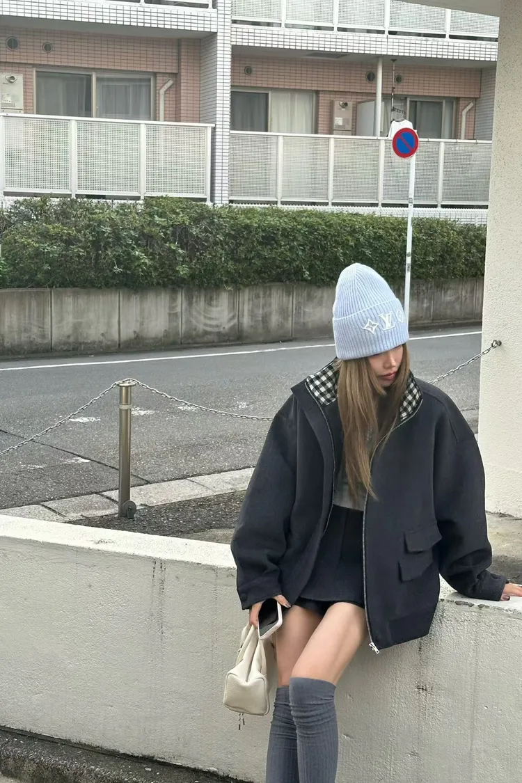 • 格紋拼接內領 → 一翻領超可愛,低調卻超有設計感